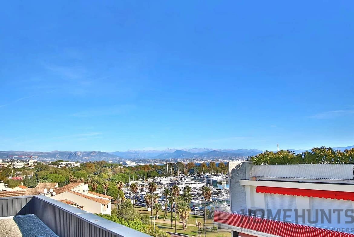 Wide sliding doors open onto 42 m2 of terraces boasting panoramic views of the port and the mountains.