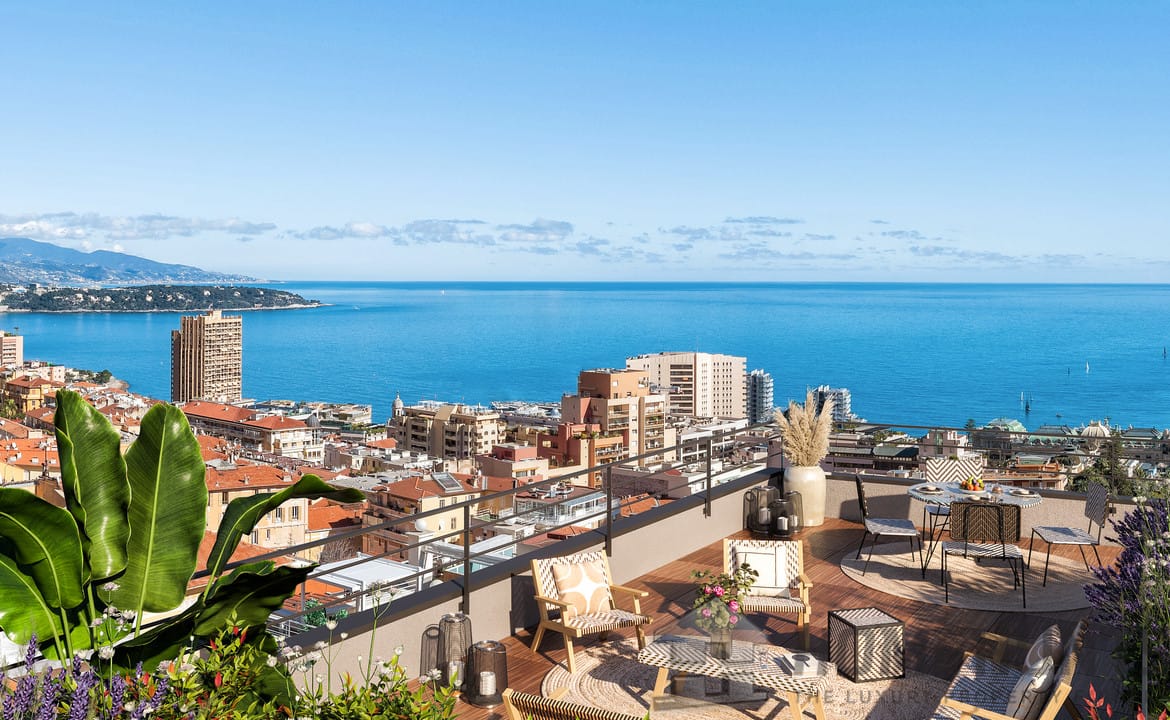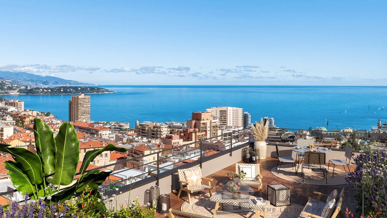 Beausoleil – New build. Top floor 4 bedroom apartment, rooftop terrace with sea view