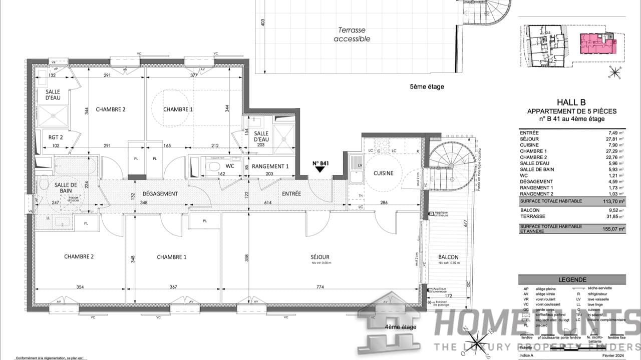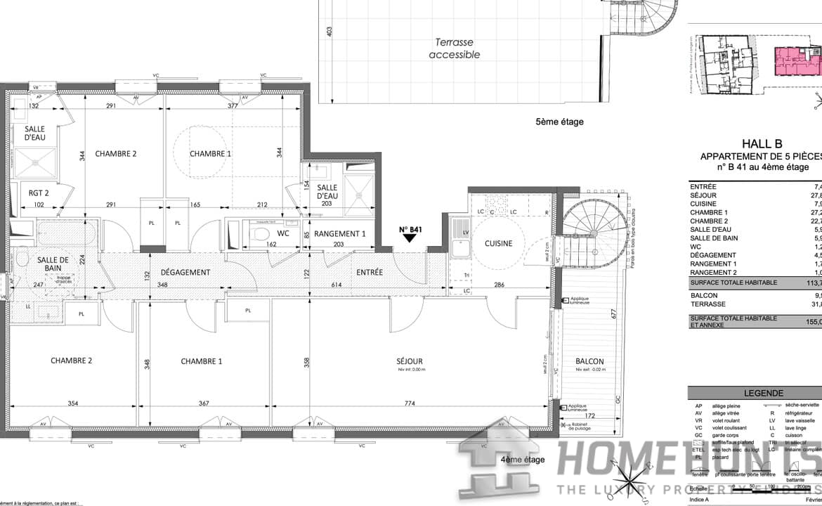 The apartment is located on the top floor with a private rooftop terrace with magnificent sea views. It includes : an entrance, a living room with an adjoining balcony, a kitchen, four bedrooms (two with en-suite shower rooms), one bathroom, two toilets, and plenty of storage space.