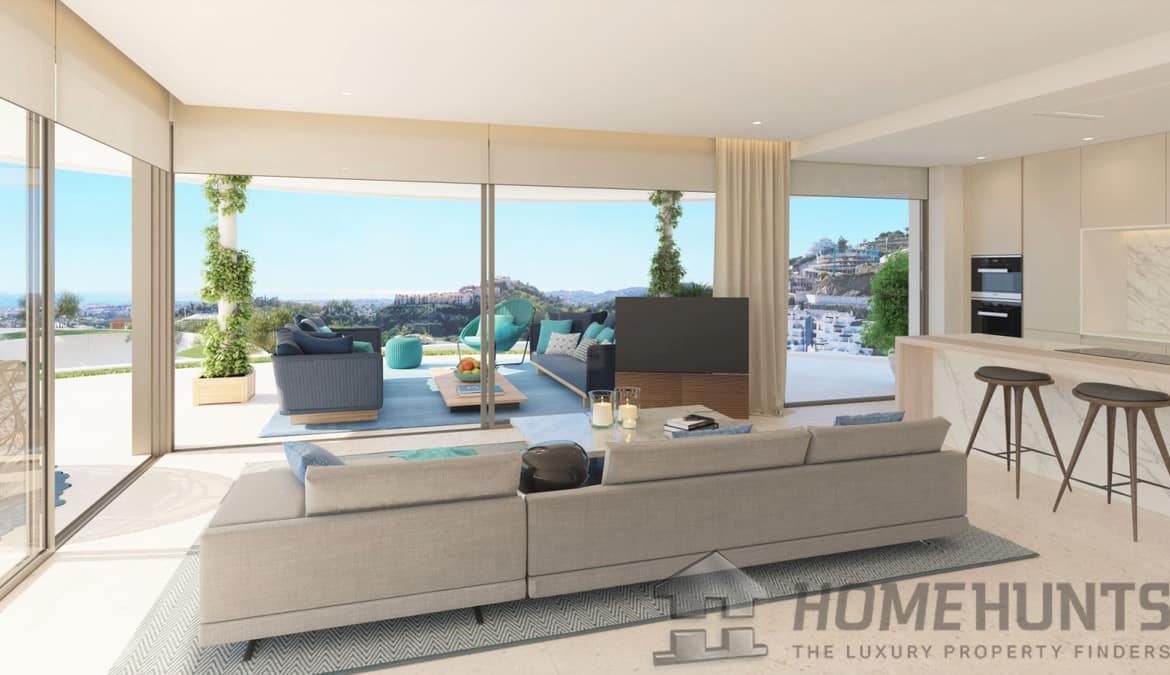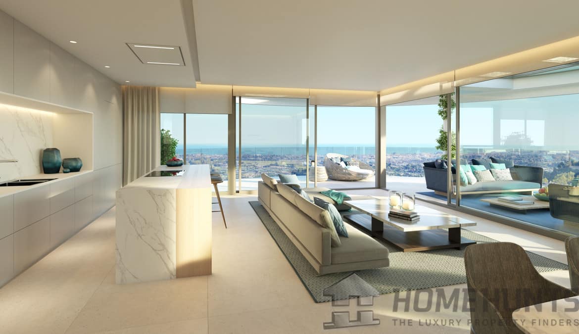 The development enjoys breath-taking views from its huge terraces across the Mediterranean Sea towards Gibraltar and the coasts of Africa. From its elevated position just above Marbella’s emblematic Golf Valley, the courses of Los Naranjos, La Quinta, Las Brisas and Aloha are at your doorstep.