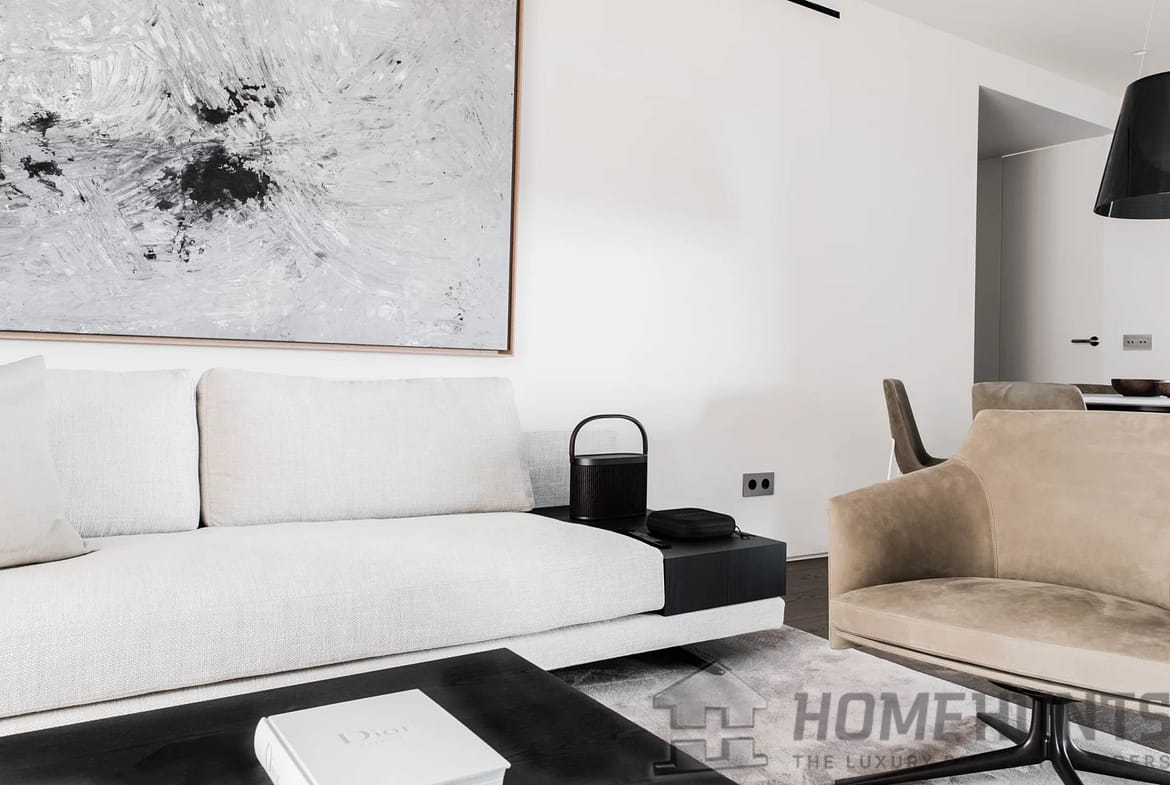 The flat has top of the range appliances, such as SMEG electrical appliances in the kitchen and BOSCH laundry appliances. Furnishings include pieces from renowned brands such as Poliform and Barzaghi, along with custom designs from France. For entertainment, a Bang & Olufsen music system and LG television have been installed, with all rooms prepared for additional televisions. The interior spaces are illuminated with elegant decorative lighting by FLOS, while the outdoor areas feature furnishings by RODA and DEDON. Additional details include wooden floors, natural Gris Sarzi stone, bespoke linen curtains and Iconico bathroom fittings. From electrical switches to taps and door handles, everything has been selected with attention to detail and exceptional quality. In short, this flat represents the perfect combination of luxury, security and style in one of Mallorca’s most sought-after destinations.