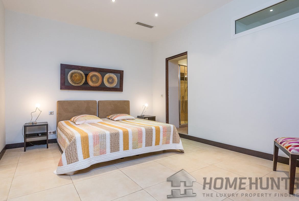Entrance hall, living-dining-kitchen 70 m2, bedroom 1 with bathroom + toilet and dressing room 25 m2, bedroom 2 with bathroom + toilet and cupboard 20 m2, bedroom 3 with bathroom + toilet and cupboard 21 m2, bedroom 4 with bathroom + toilet and closet 22 m2, office, laundry, guest WC, and double garage located nearby.