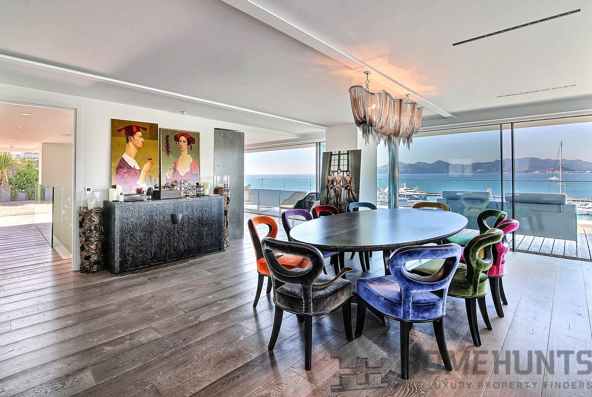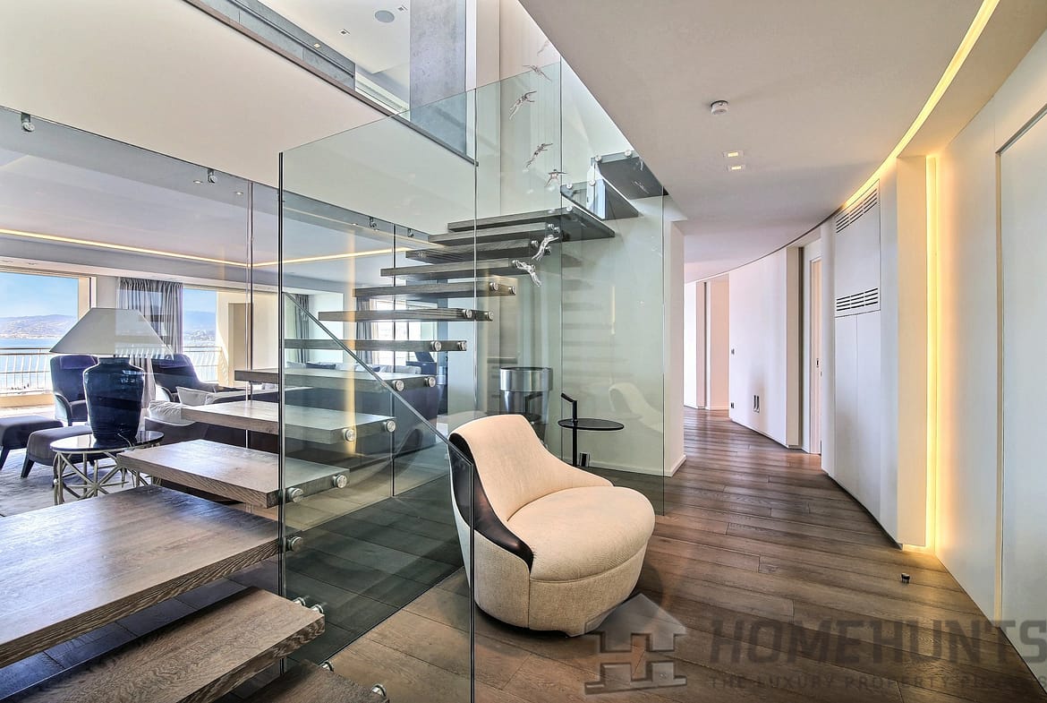 In one of the most prestigious residences on the Croisette, near Port Canto, with a superb view over the Bay of Cannes, magnificent duplex apartment with 580 m2 of living space.