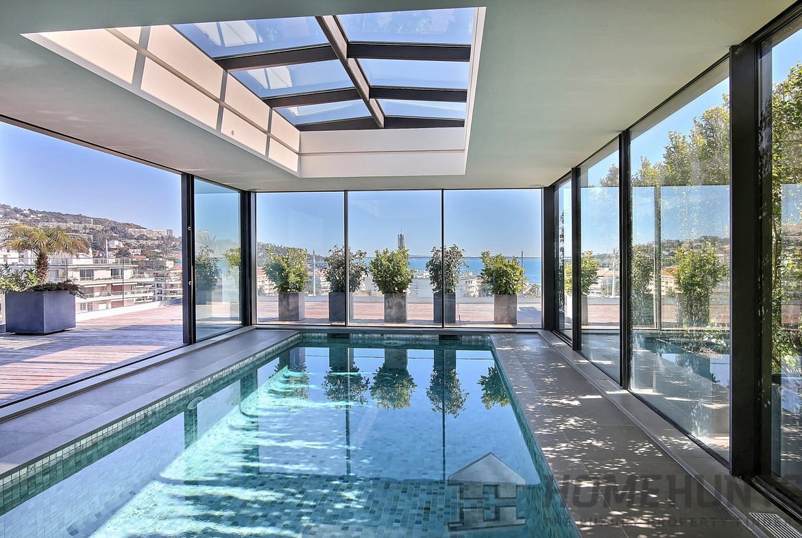The apartment’s seductive decor, top-of-the-range amenities, 428 m2 of terraces and indoor rooftop pool (7m x 3.5m).