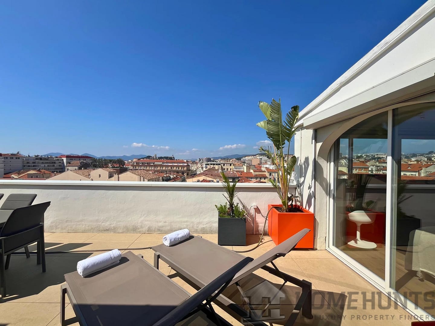 This apartment of about 131 m2 is composed of an entrance hall, a large living room with dining room and open kitchen opening onto a spacious terrace of 71 m2 facing south and west, with a view on the sea, the Esterel mountains and the Suquet. You will find 1 master bedroom with dressing room and bathroom on the south side and 2 other bedrooms with their own shower room on the north side. Guest toilet.
