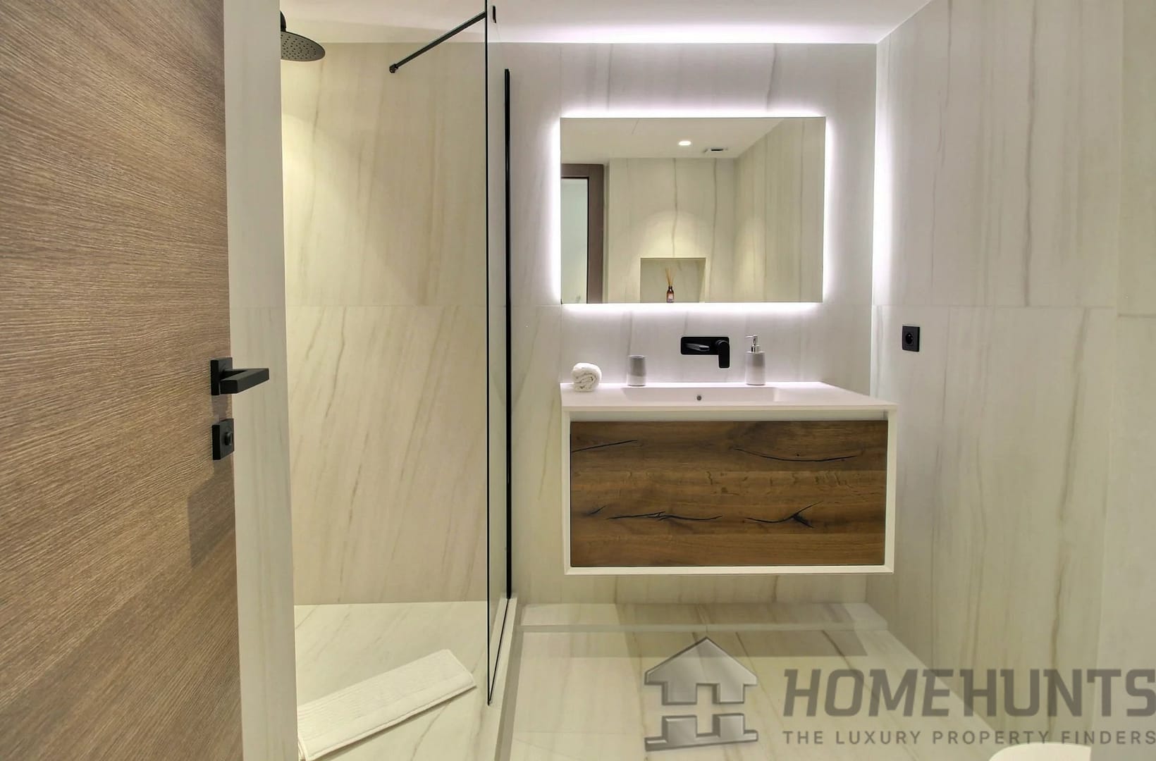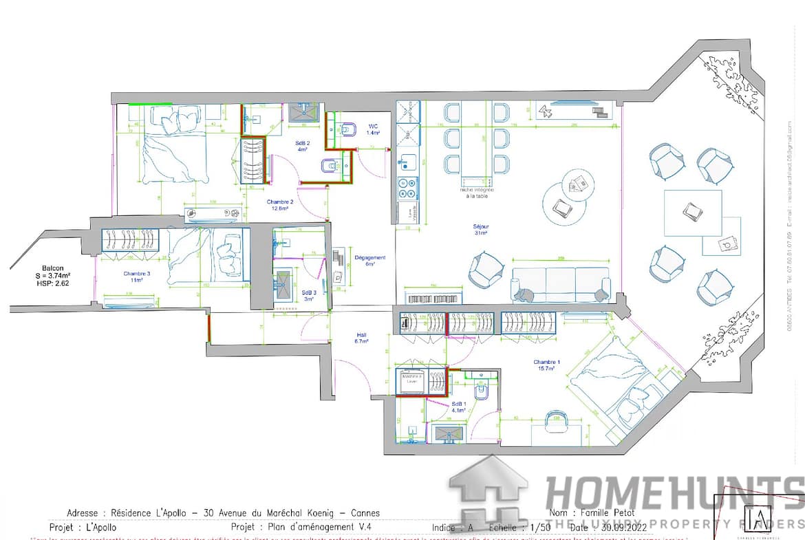 Accommodation comprising an entrance hall, a spacious living room with dining room opening onto a large terrace south/west with panoramic sea view. Equipped kitchen open to the living room. The 3 bedrooms each have a shower room and WC. Numerous cupboards.
