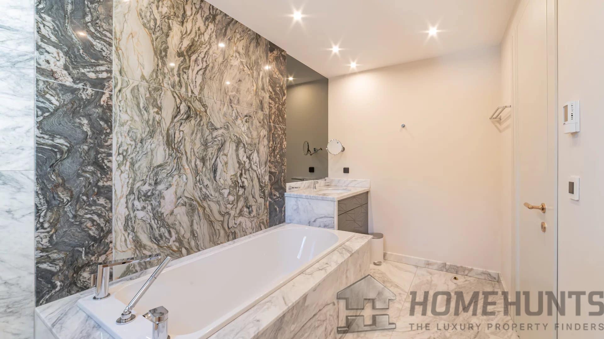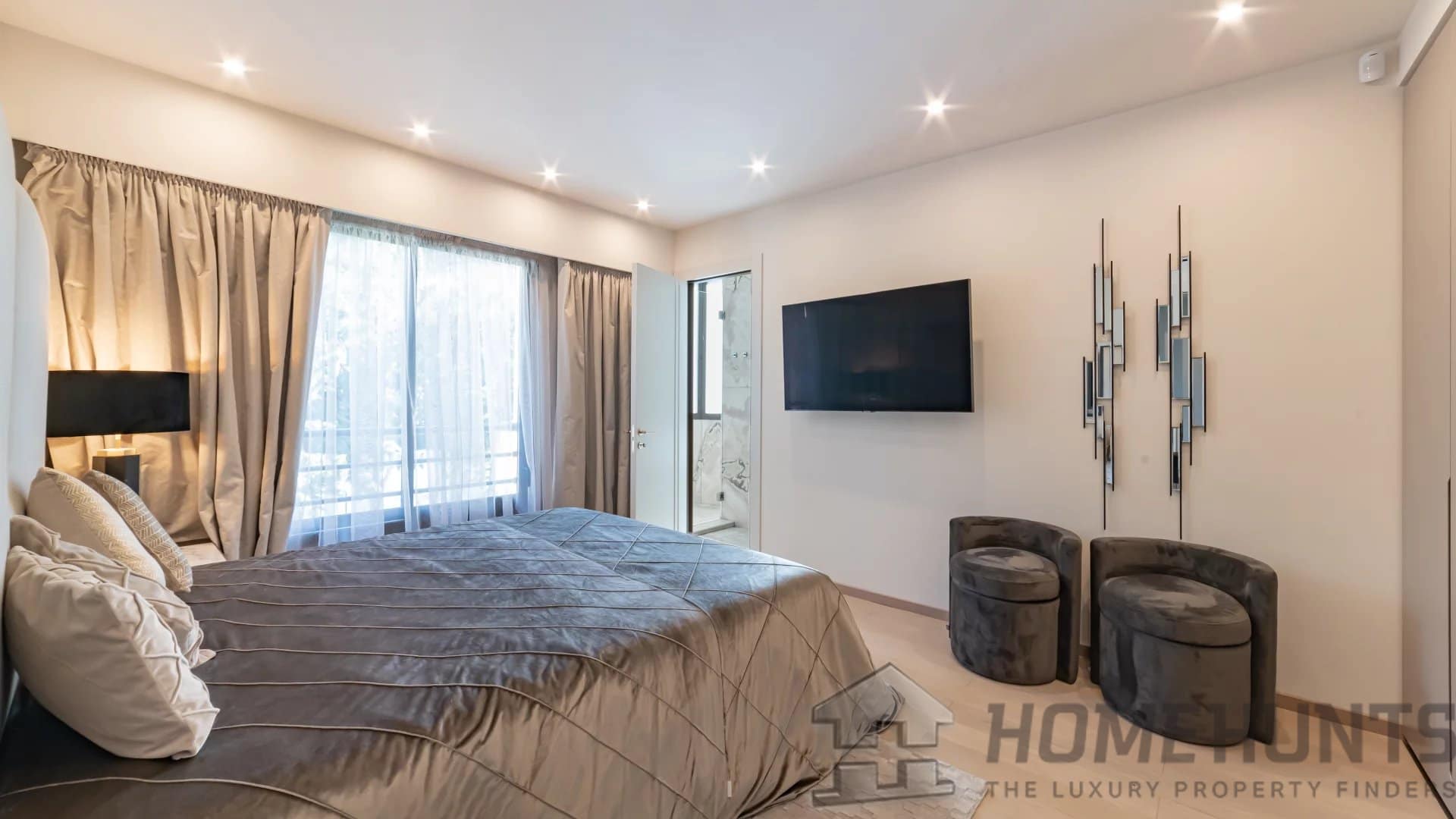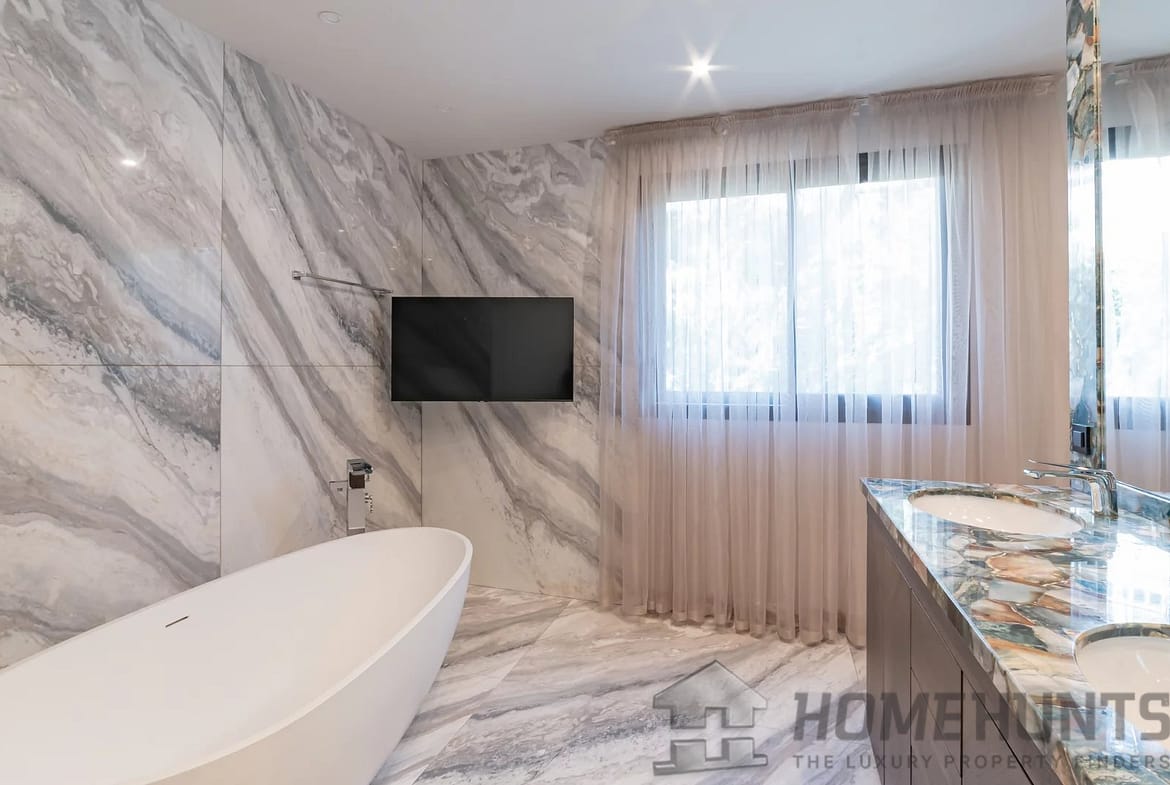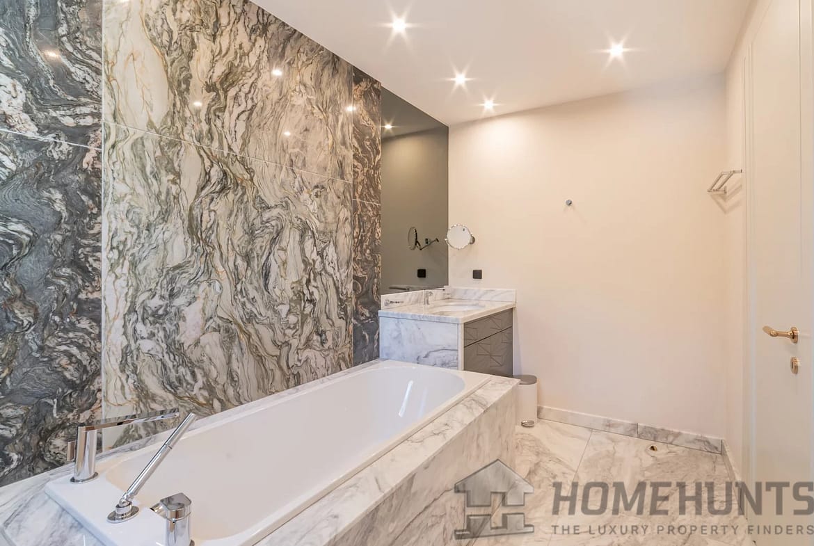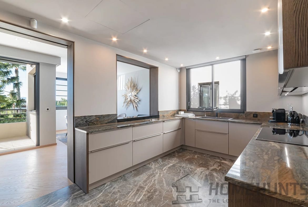 This apartment is composed of : a vast entrance hall, a living-dining room of 70 sqm, a kitchen with adjacent storeroom, a laundry, one master suite, three further en suite bedrooms, guest toilet and a wide terrace.