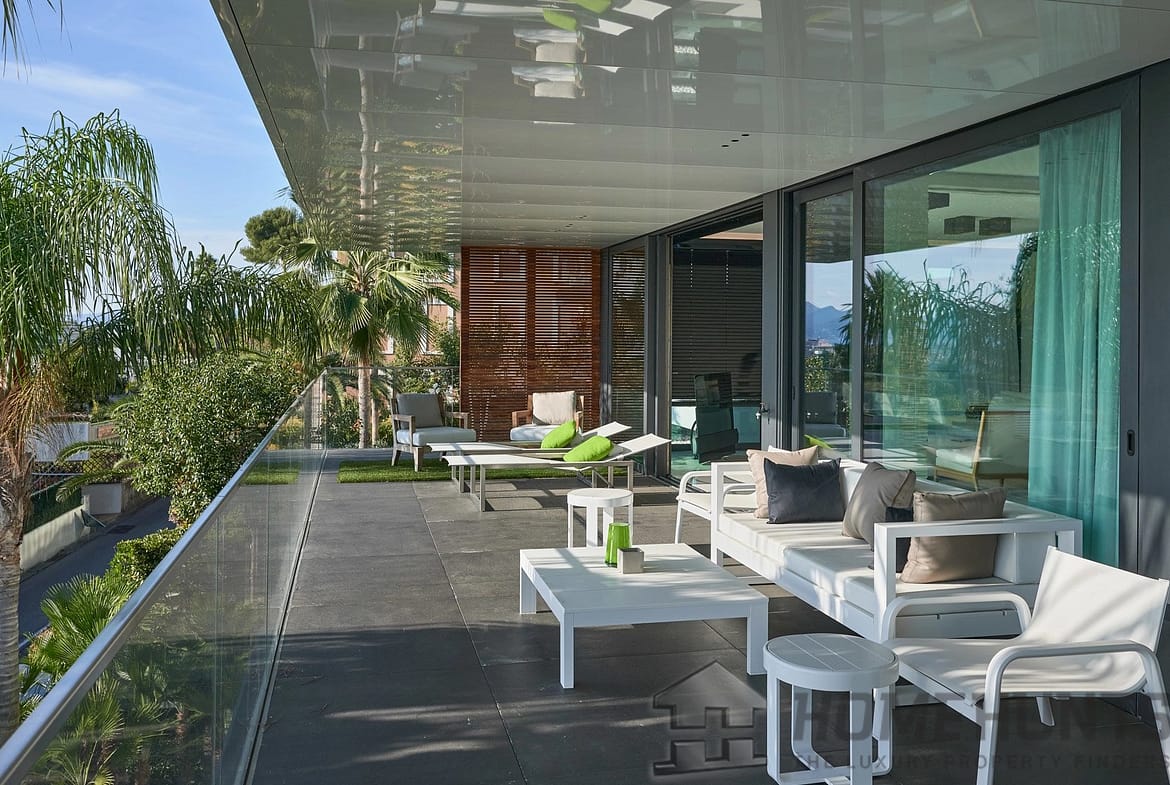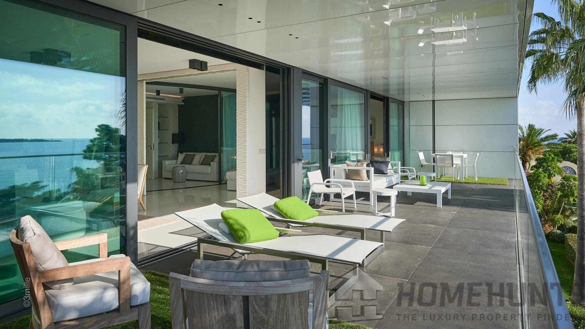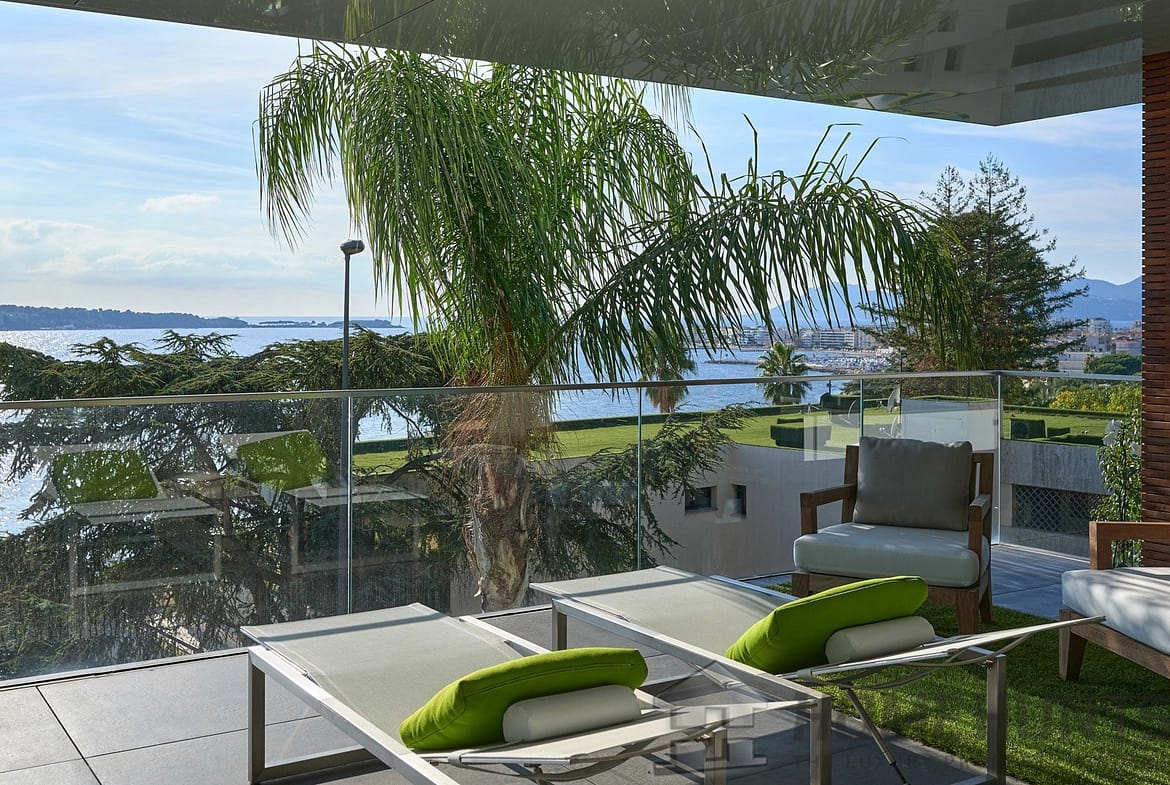 In a new luxury residence, this magnificent 144 m2flat benefits from a large and deep 54 m2 terrace. South facing, it offers a panoramic view over the sea and Lerins Islands, waterfront location, right by the beaches.