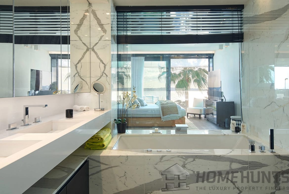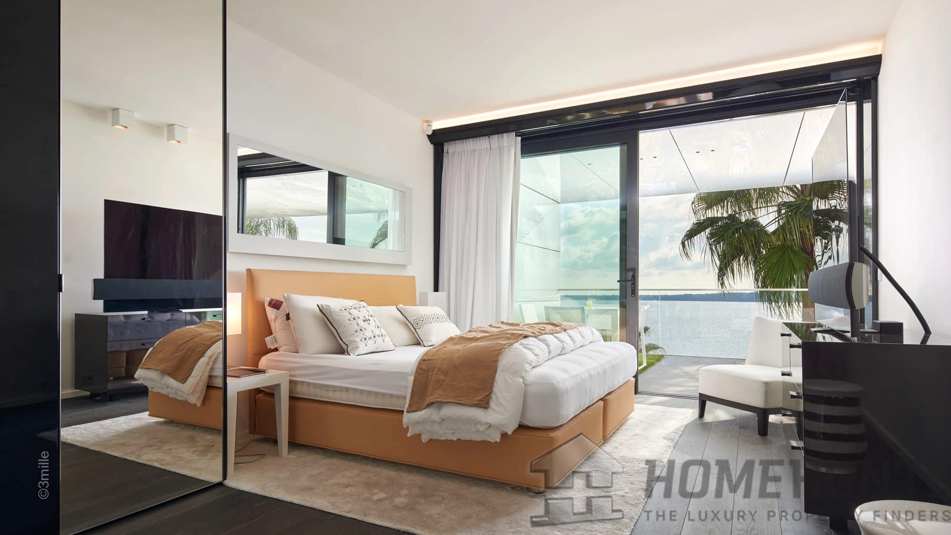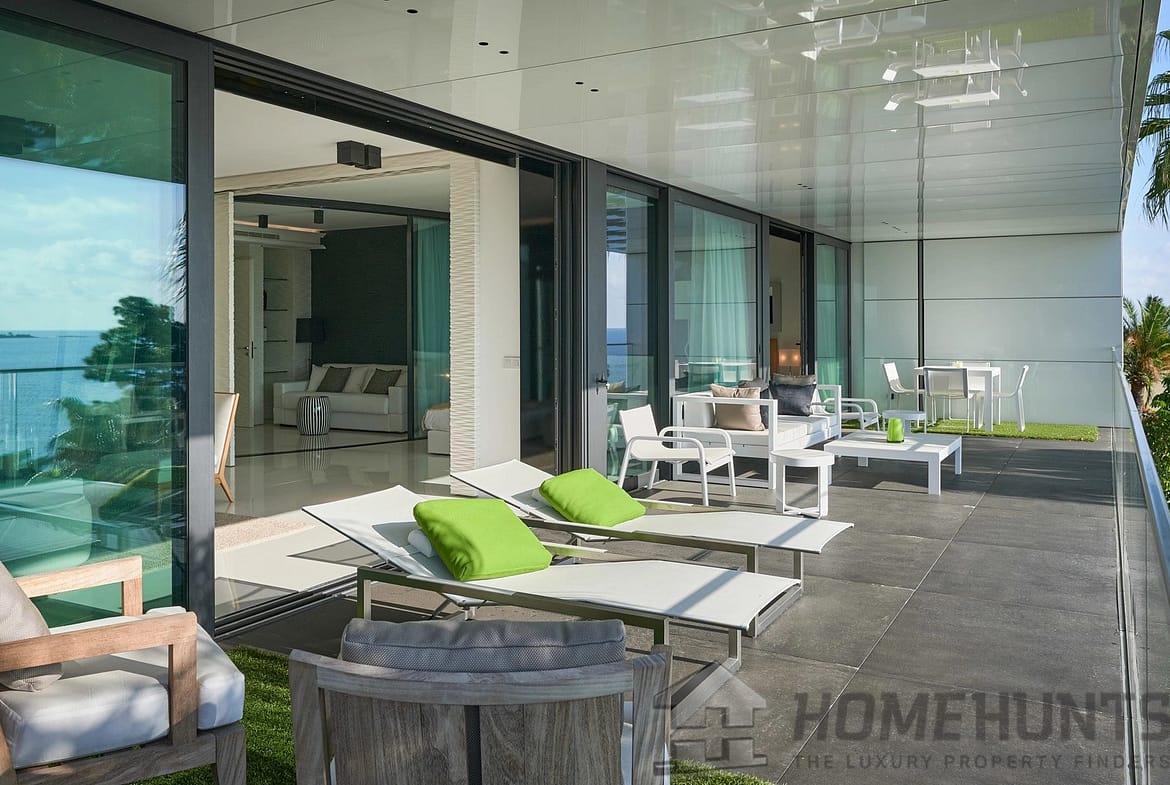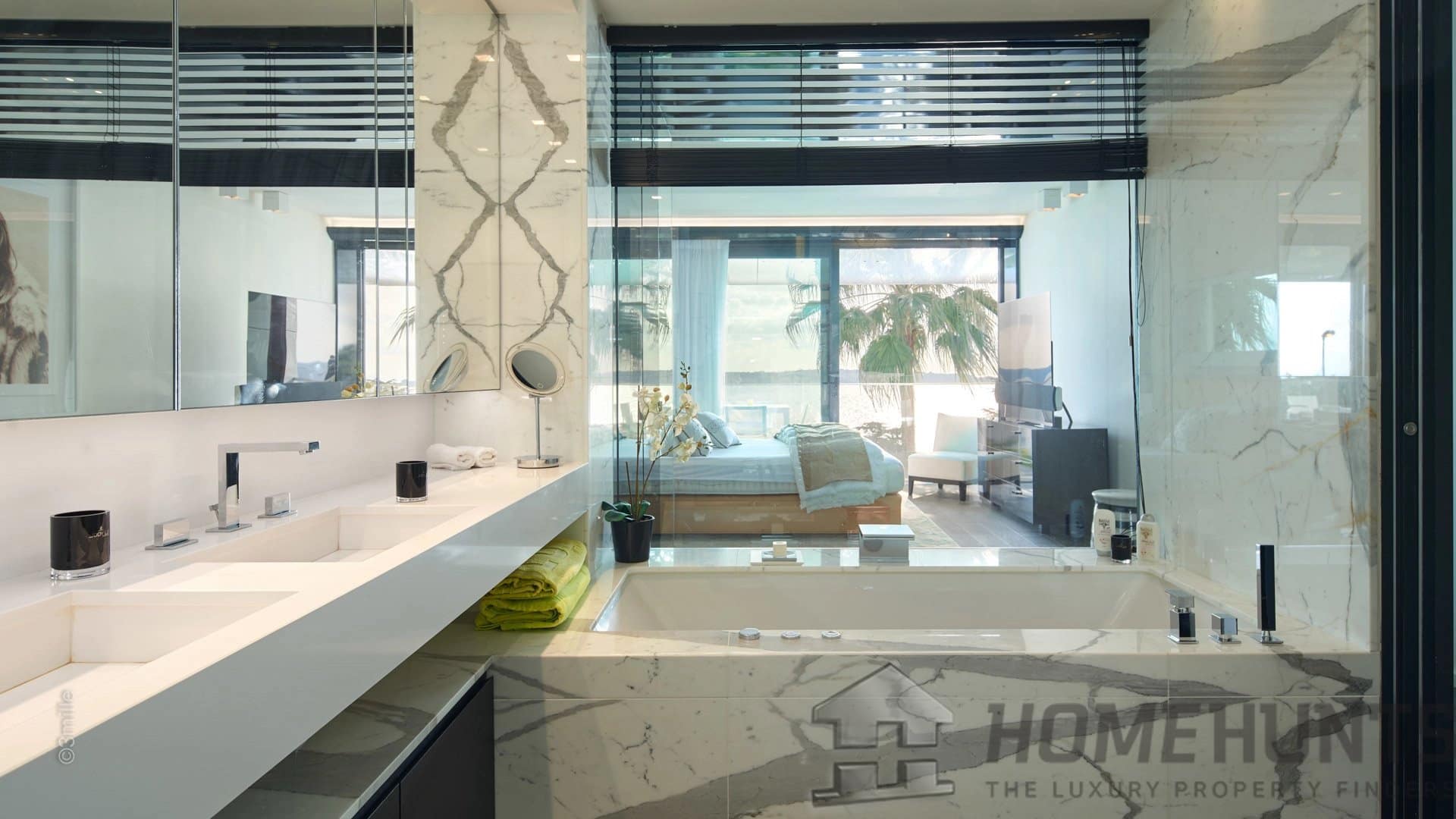 In a new luxury residence, this magnificent 144 m2flat benefits from a large and deep 54 m2 terrace. South facing, it offers a panoramic view over the sea and Lerins Islands, waterfront location, right by the beaches.