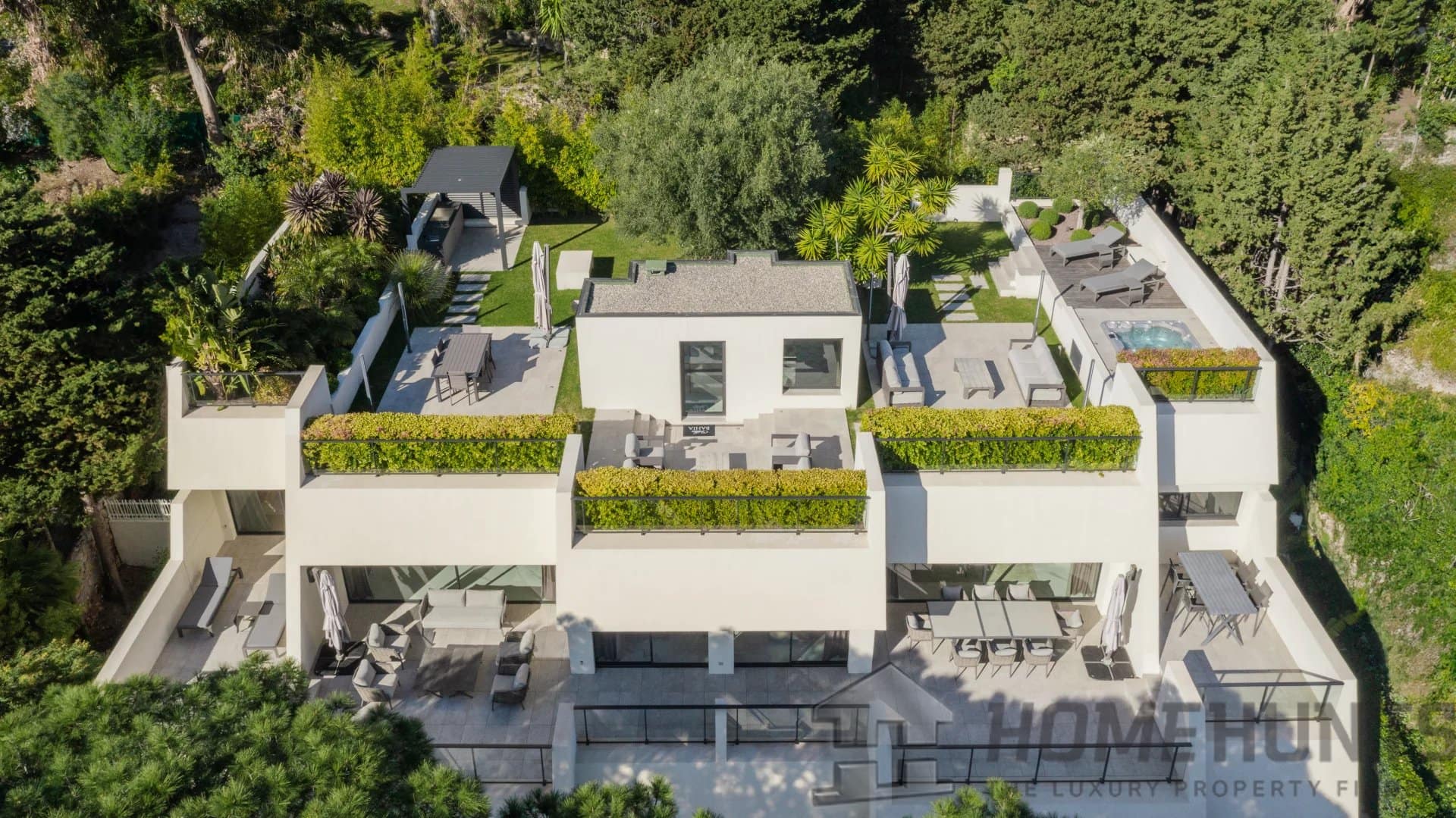 Facing due south, it enjoys lovely views of the Mediterranean and opens onto a vast terrace of around 133 sqm and a superbly landscaped roof garden of around 480 m2 with summer kitchen and Jacuzzi.