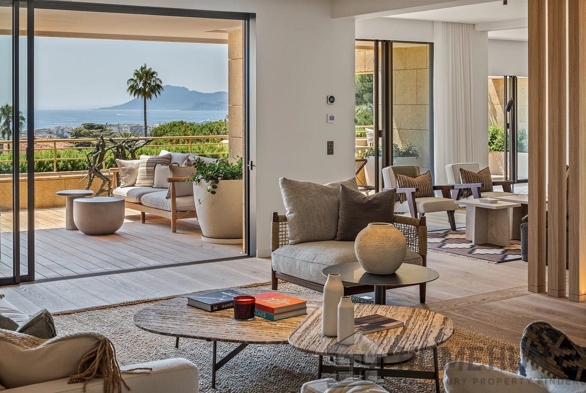 Located in the highly sought-after district of California in Cannes, in the heart of an exclusive, high-end residence with a guard and a park and swimming pool, we offer this exceptional apartment of 215.50 m2 with a beautiful 60 m2 terrace offering a panoramic view of the Mediterranean and the Lérins Islands.