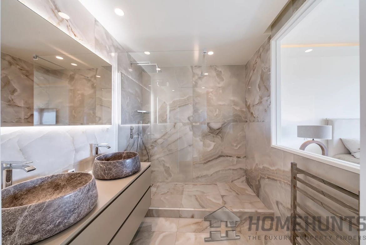 It comprises a living room opening onto a terrace about 25m2 with panoramic sea view, an independent kitchen and 3 en suite bedrooms, one of which offers the possibility of independent access.