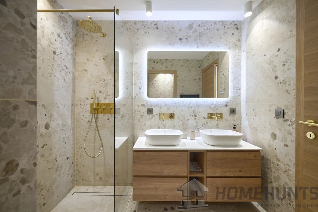 Three en-suite bedrooms including a master sea view, each with their own shower room, toilet and dressing room.
