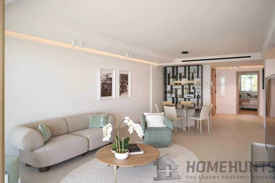 This spacious apartment on a high floor consists of an entrance hall followed by a living room with open fitted kitchen, all opening onto a large 22m2 furnished terrace with breathtaking views of the sea.