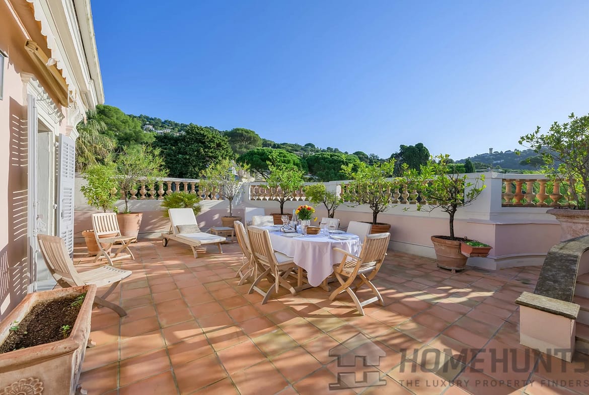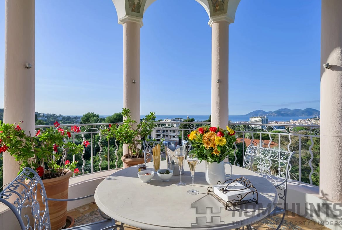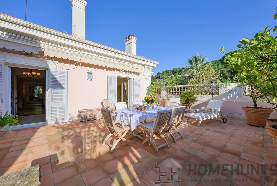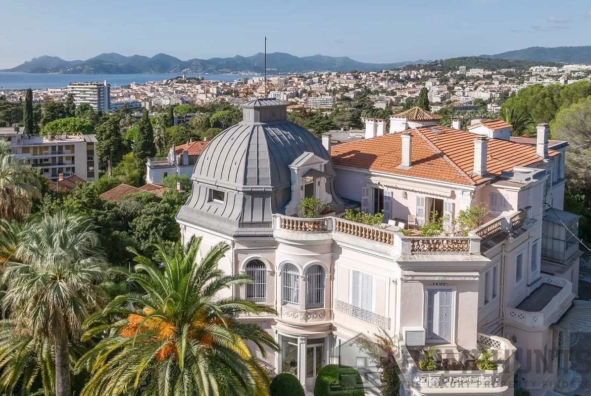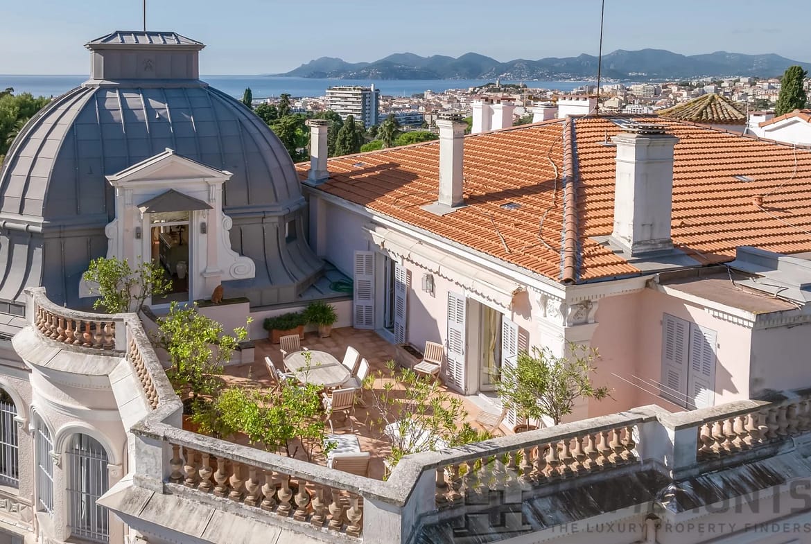 Ideally located near the Bellini Chapel in the lower Californie district of Cannes, discover this spacious 300 m2 apartment occupying the top floor of a historic residence, built in 1875 by Caroline Sandman, a Frenchwoman married to an Englishman.