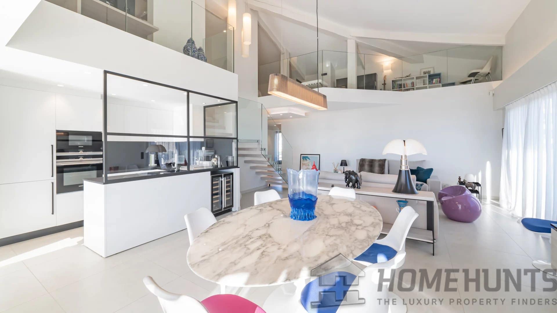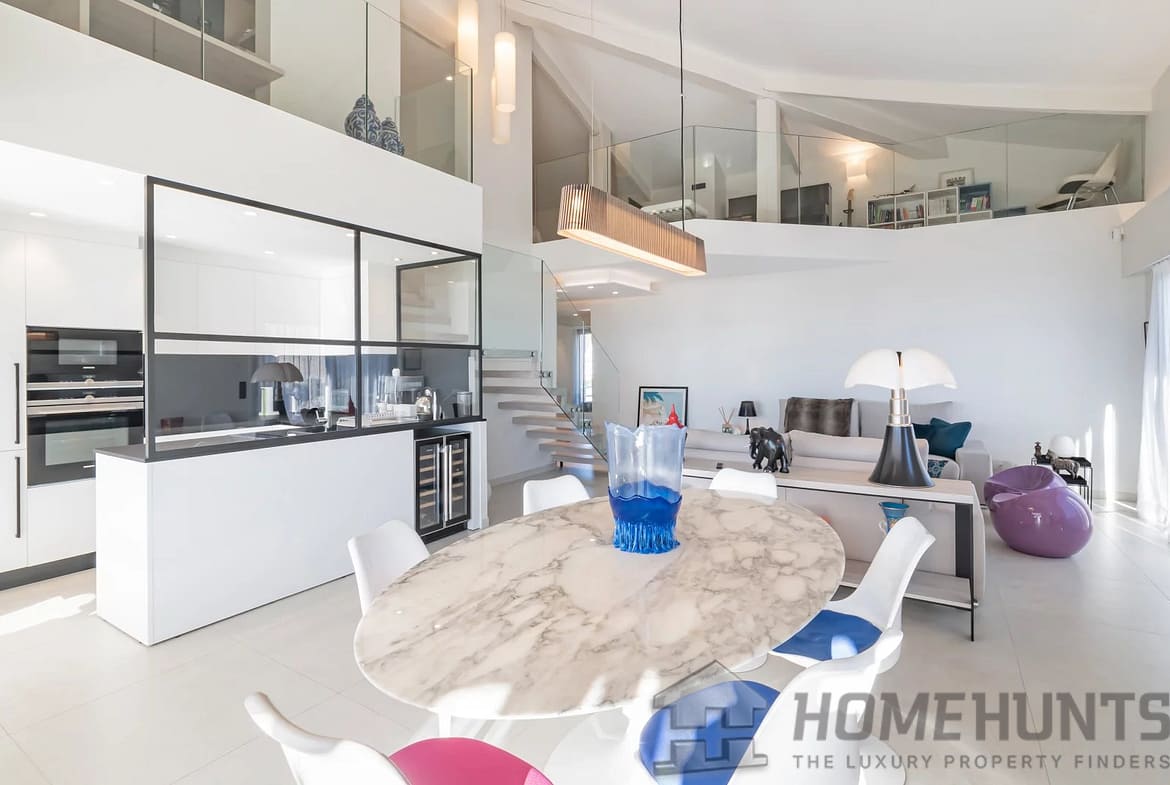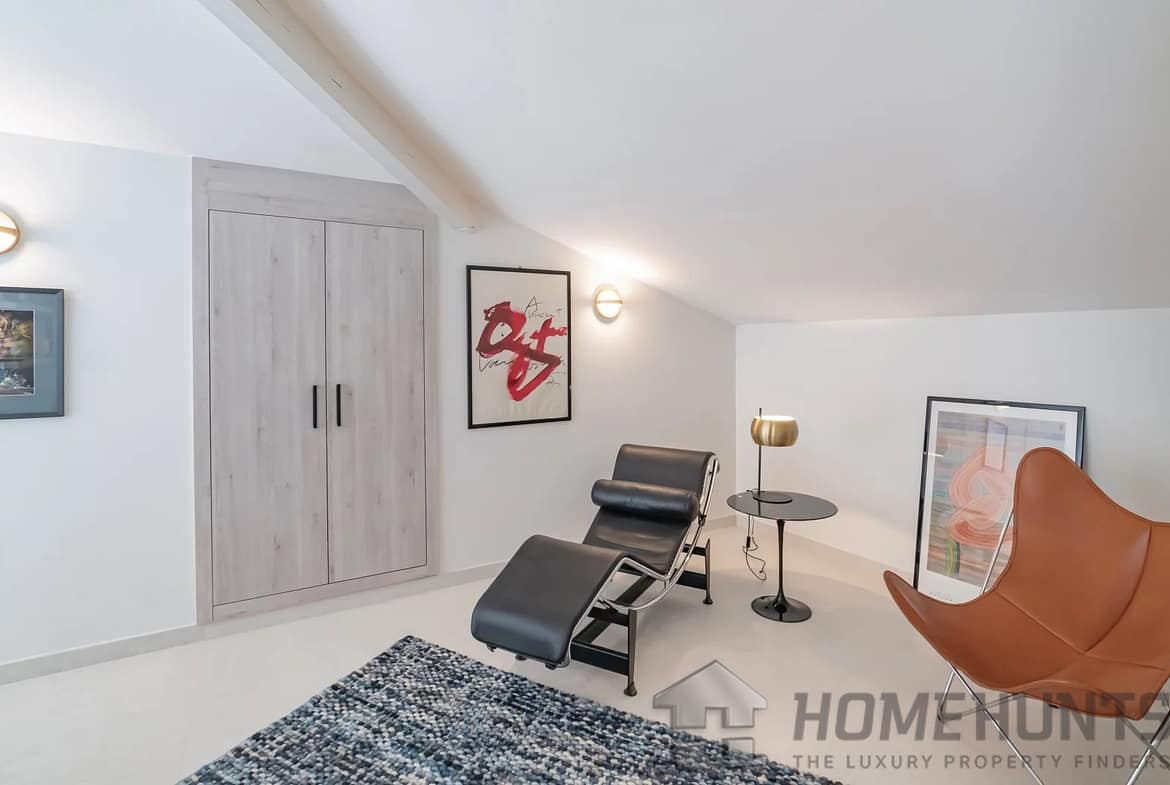 It boasts 50 m2 of terraces. South-facing, it has a floor area of over 200 m2 and comprises: an entrance hall with guest toilet, a cathedral ceiling double living room with open-plan fitted kitchen, a master bedroom with en suite shower room, study area and dressing room, all opening onto the terrace, two other bedrooms each opening onto a balcony and sharing a shower room.