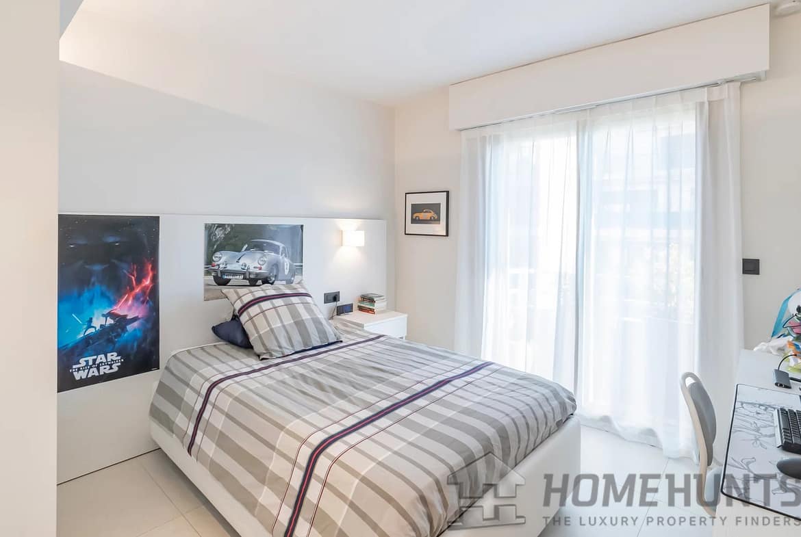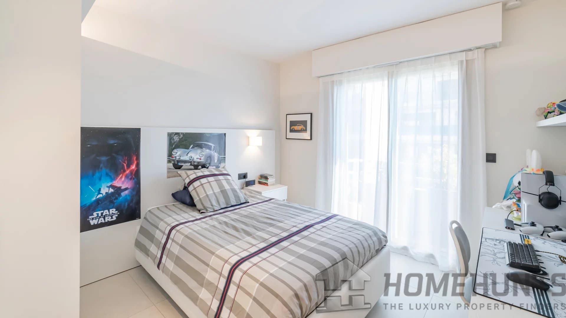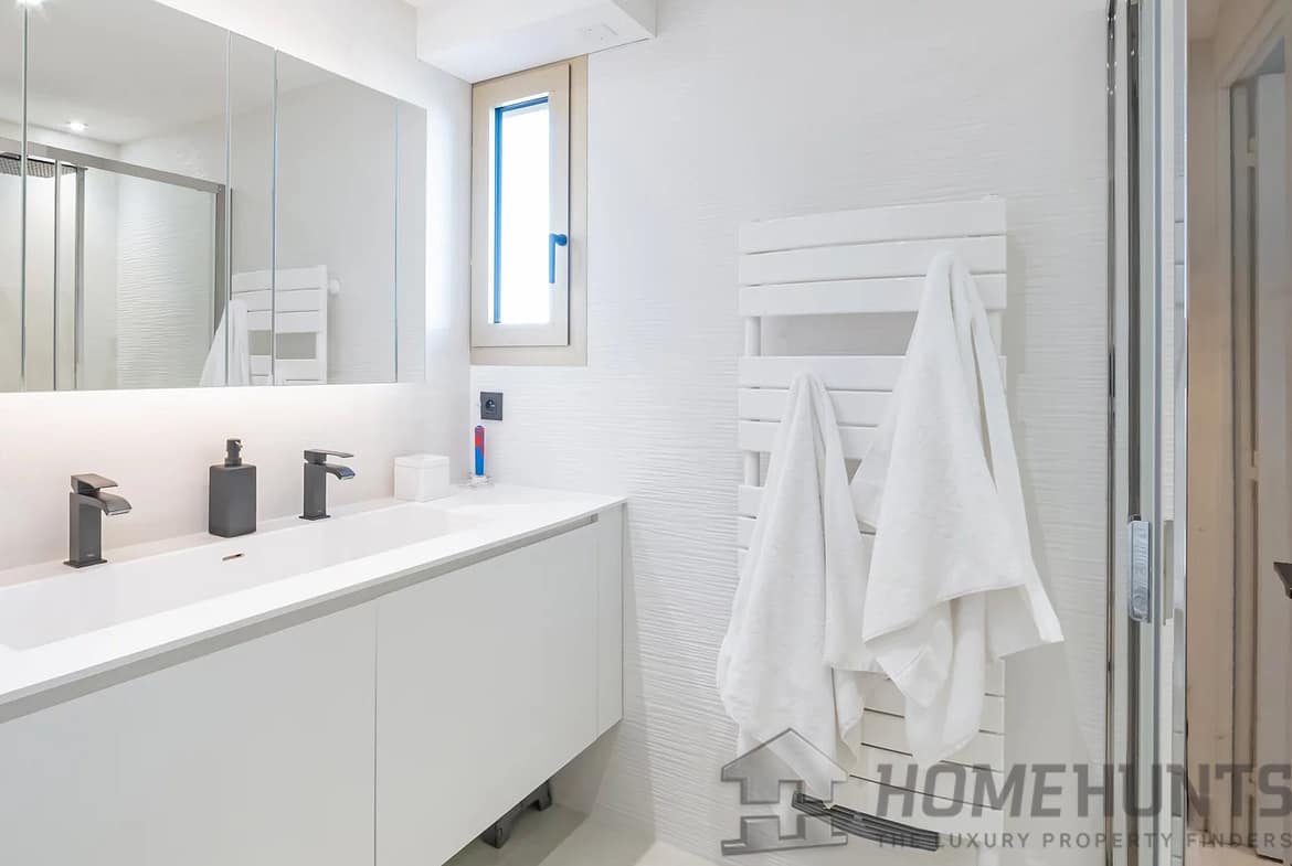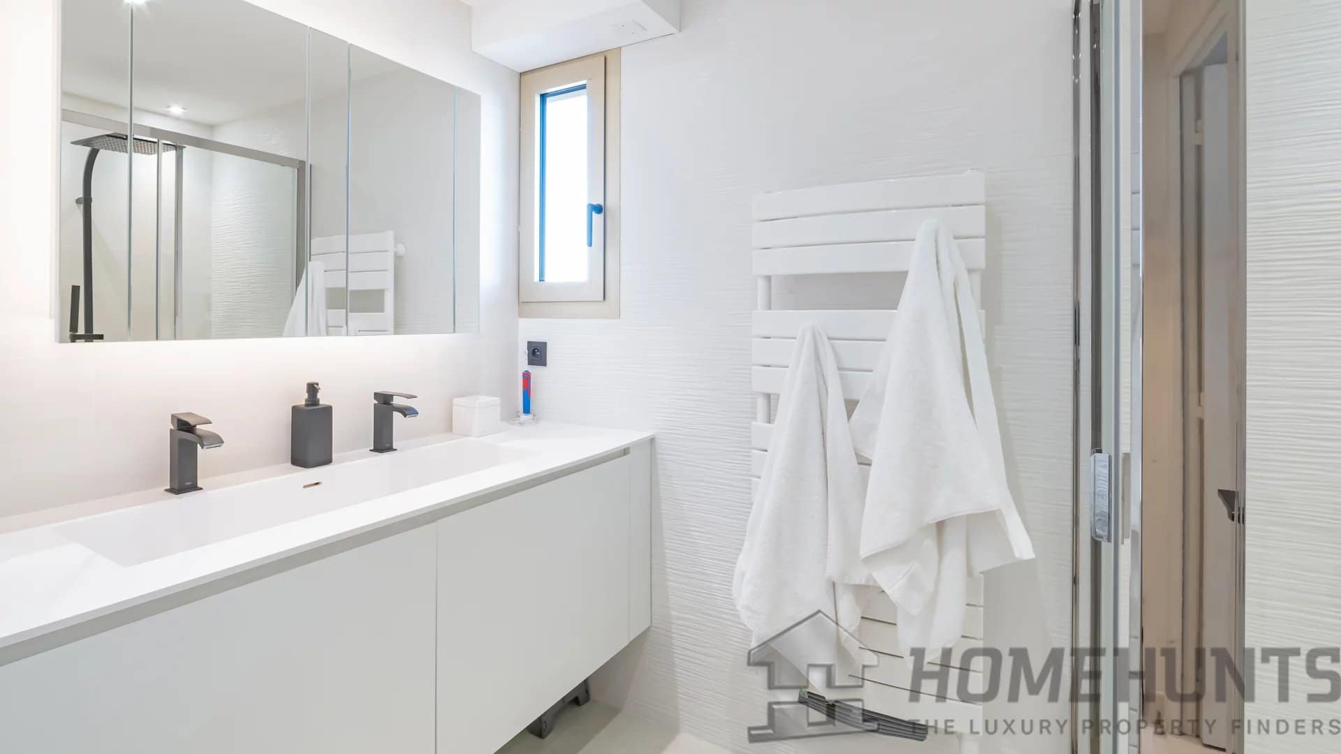 It boasts 50 m2 of terraces. South-facing, it has a floor area of over 200 m2 and comprises: an entrance hall with guest toilet, a cathedral ceiling double living room with open-plan fitted kitchen, a master bedroom with en suite shower room, study area and dressing room, all opening onto the terrace, two other bedrooms each opening onto a balcony and sharing a shower room.