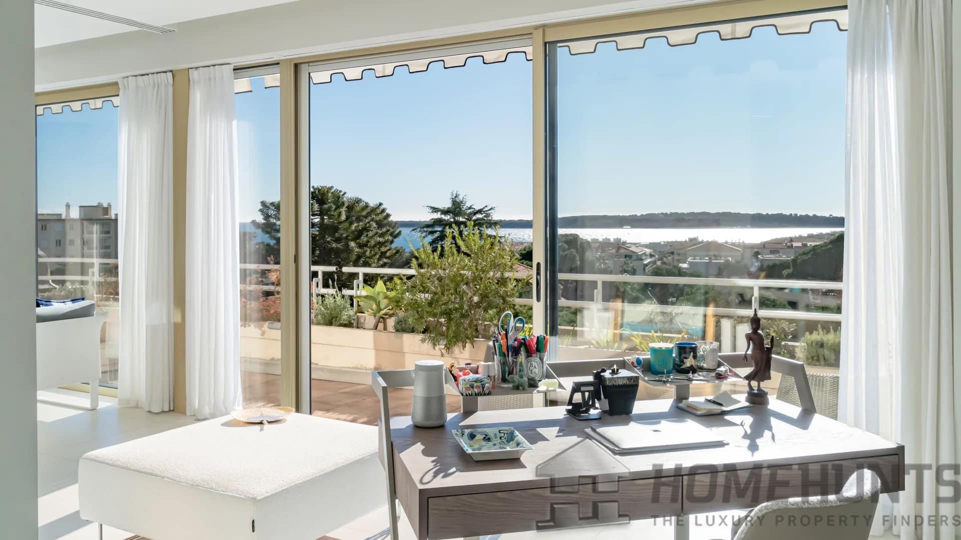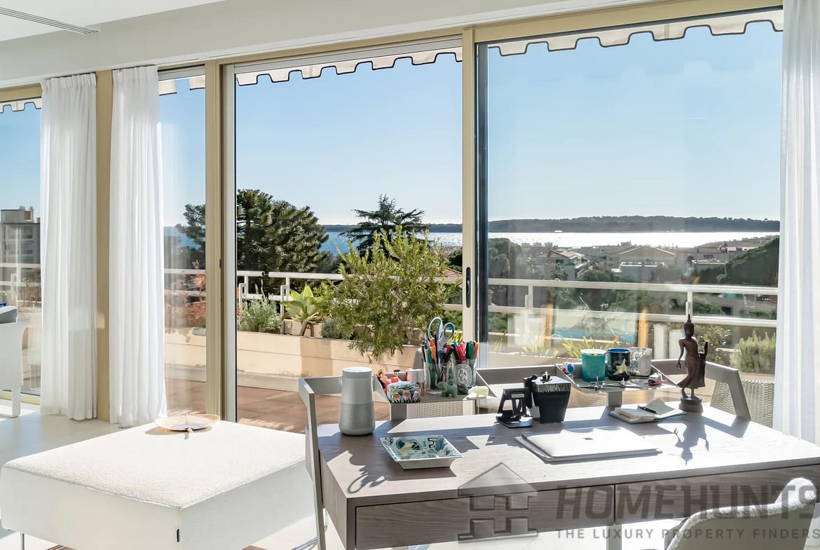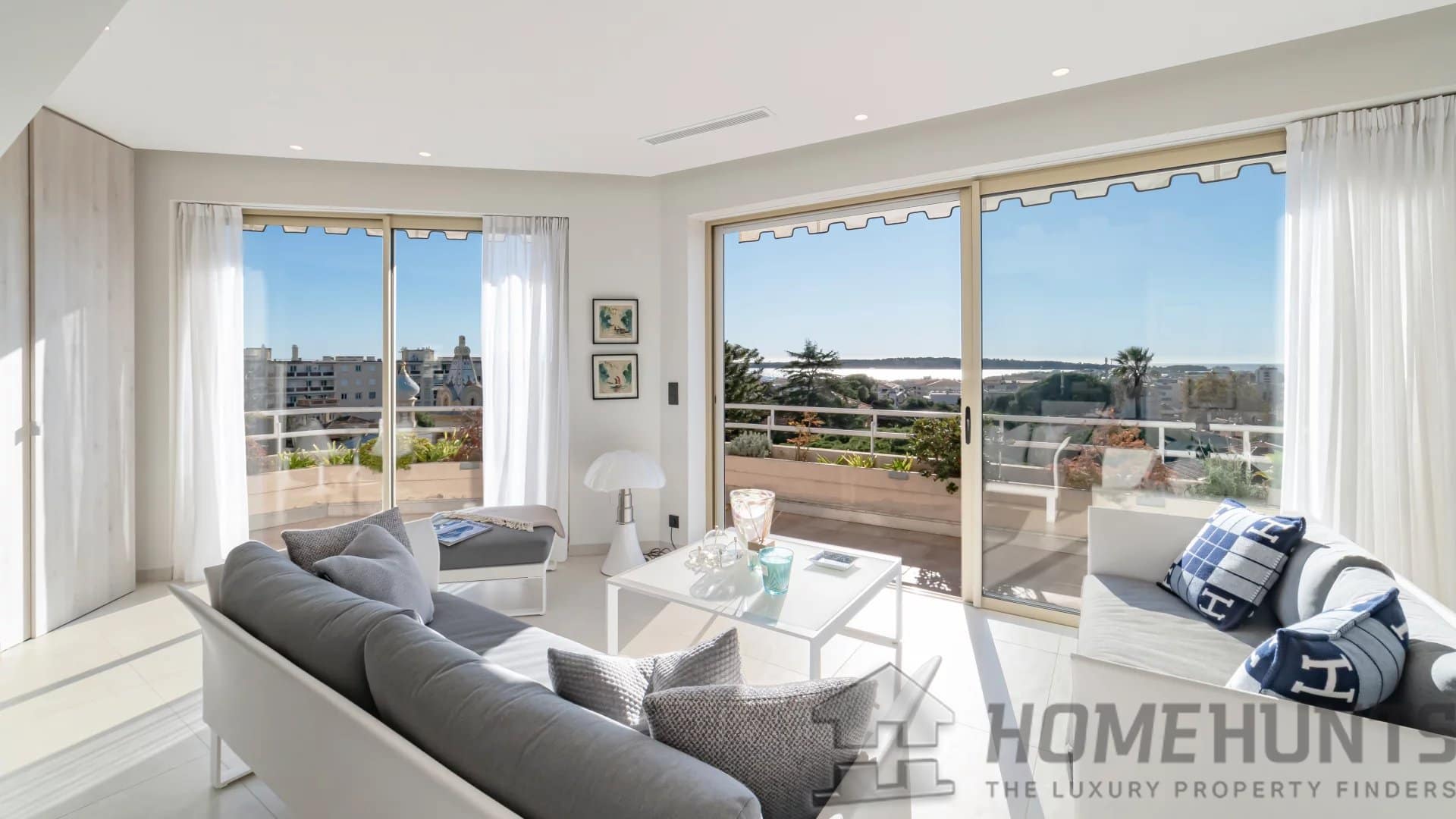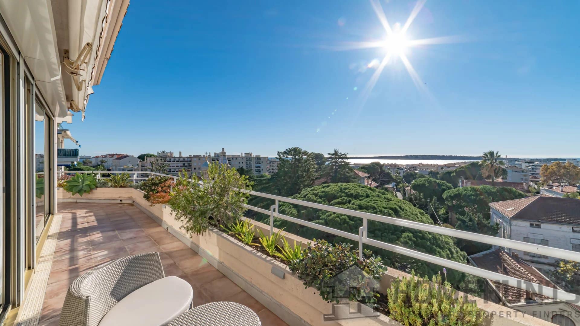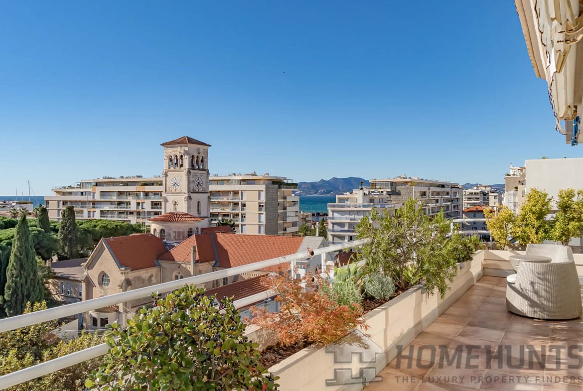 Magnificent, fully renovated duplex penthouse located within walking distance of the Croisette and shops, with a beautiful view of the sea and the Lérins islands.