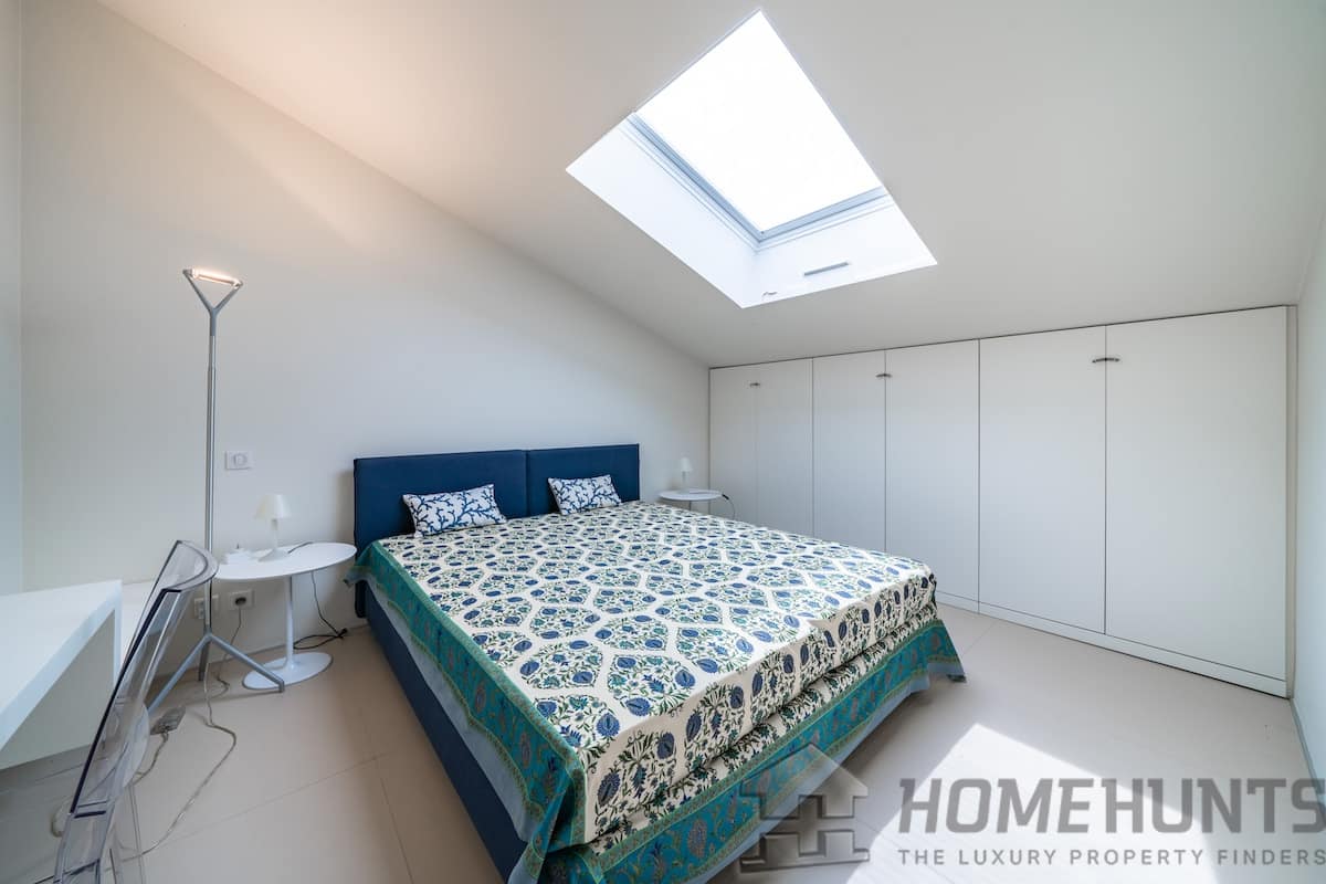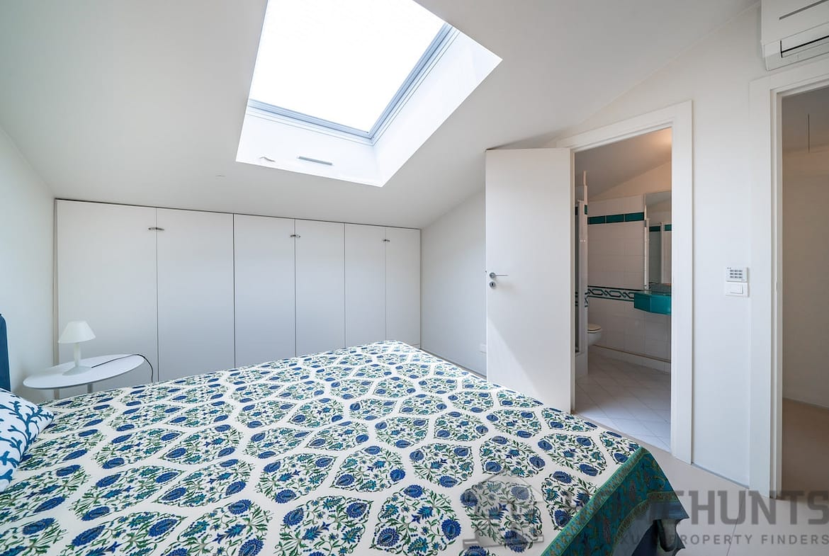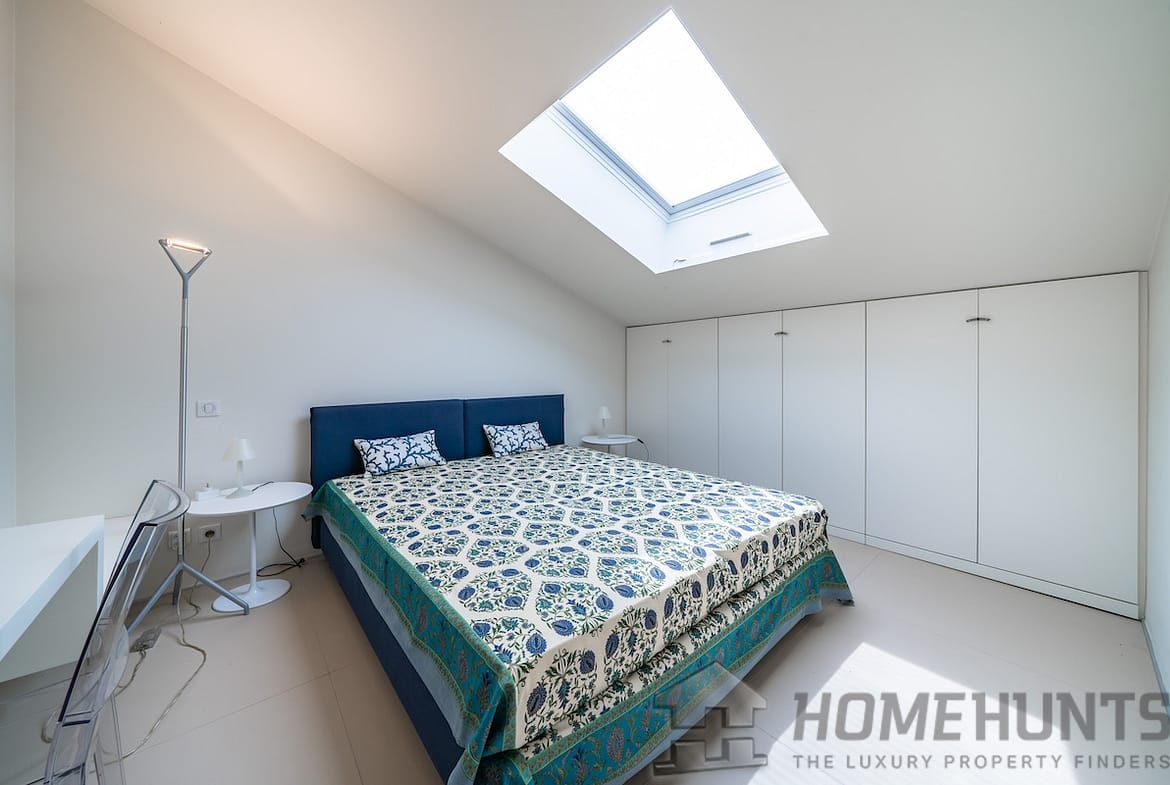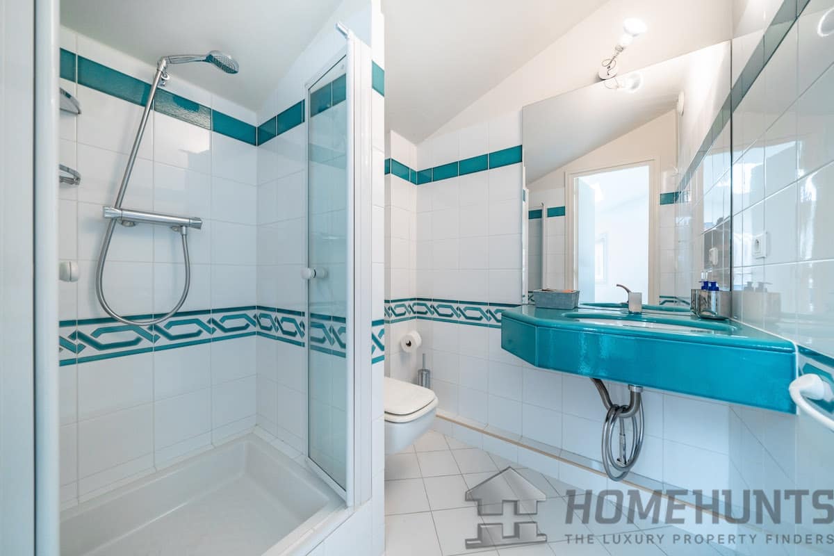 The fully equipped independent kitchen extends onto a second terrace facing east, offering a magnificent panorama of the Californie hills, perfect for enjoying the sunrise. On the same level, you’ll find a refined master bedroom complete with its own dressing area and an ensuite bathroom and toilet. A guest WC adds extra comfort at this level.