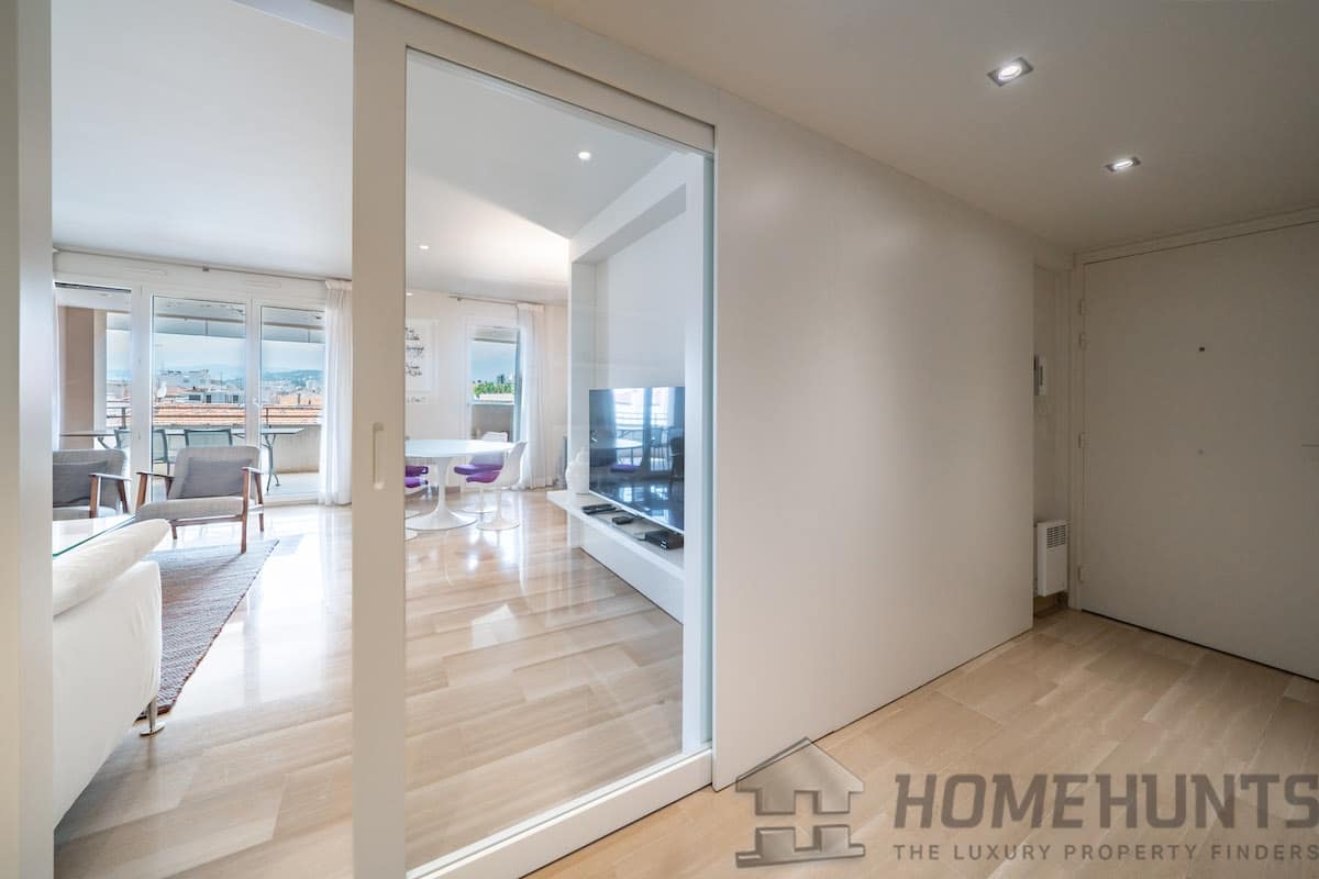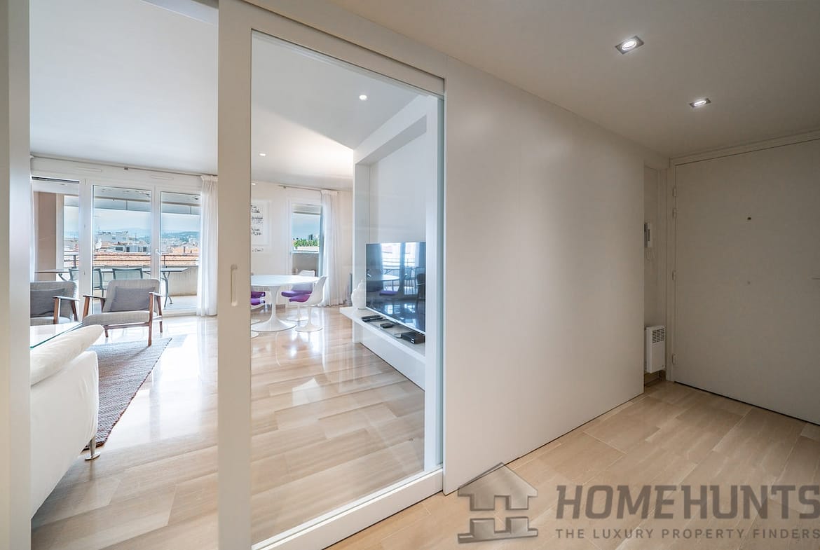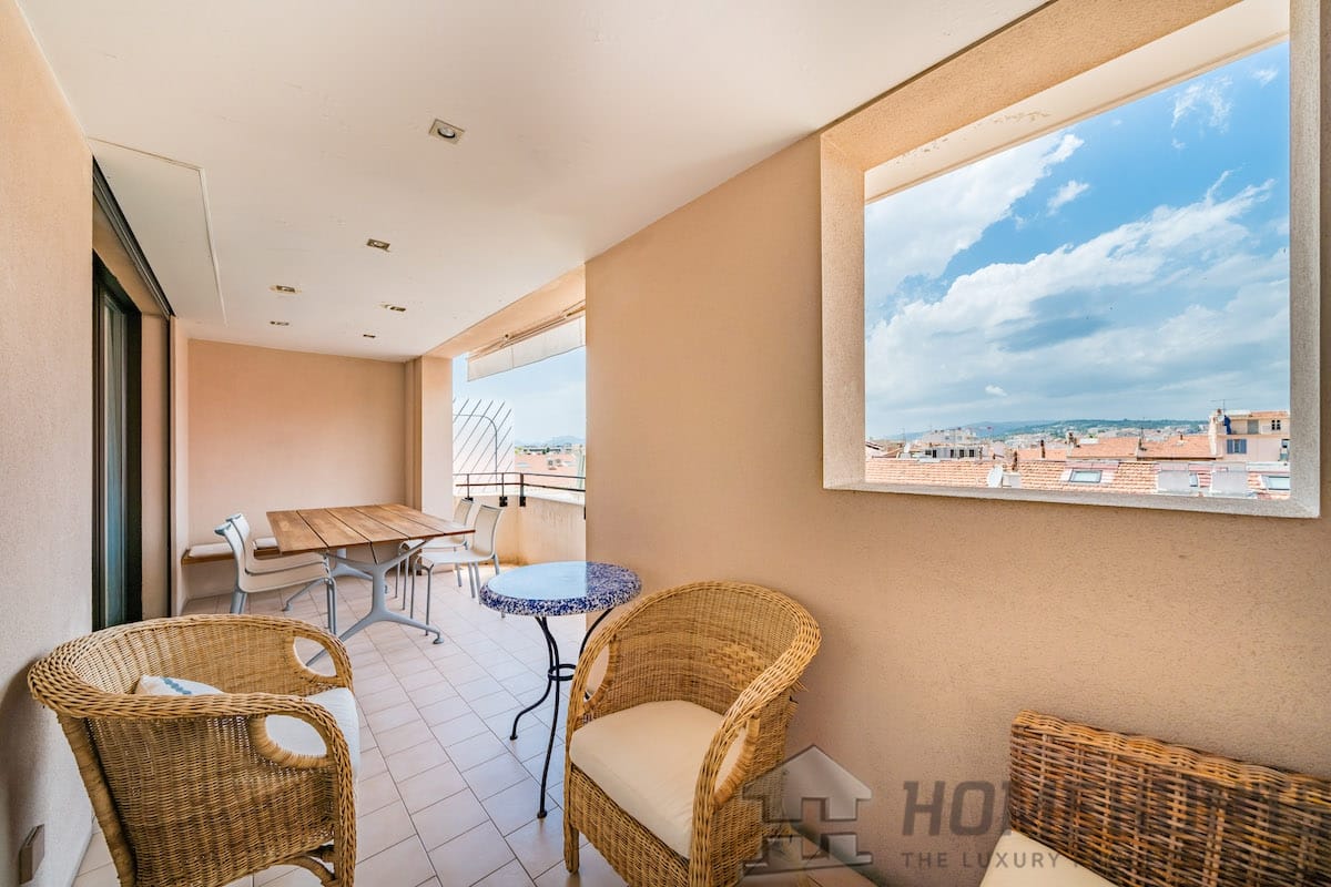 Upon entering, you’ll be captivated by a spacious living room flooded with natural light, opening onto a west-facing terrace where you can fully enjoy the breathtaking view over the rooftops of Cannes, with no overlooking neighbors.