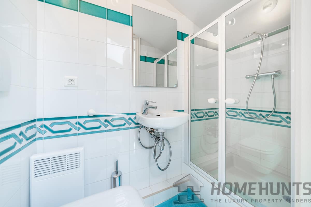 Upstairs, two elegant bedrooms, each with their own en-suite bathroom, provide privacy, space, and ample storage.