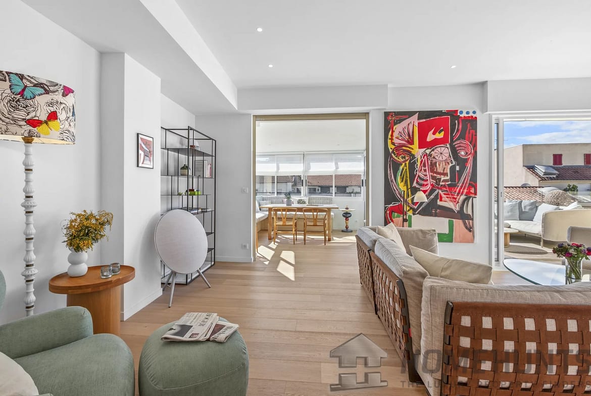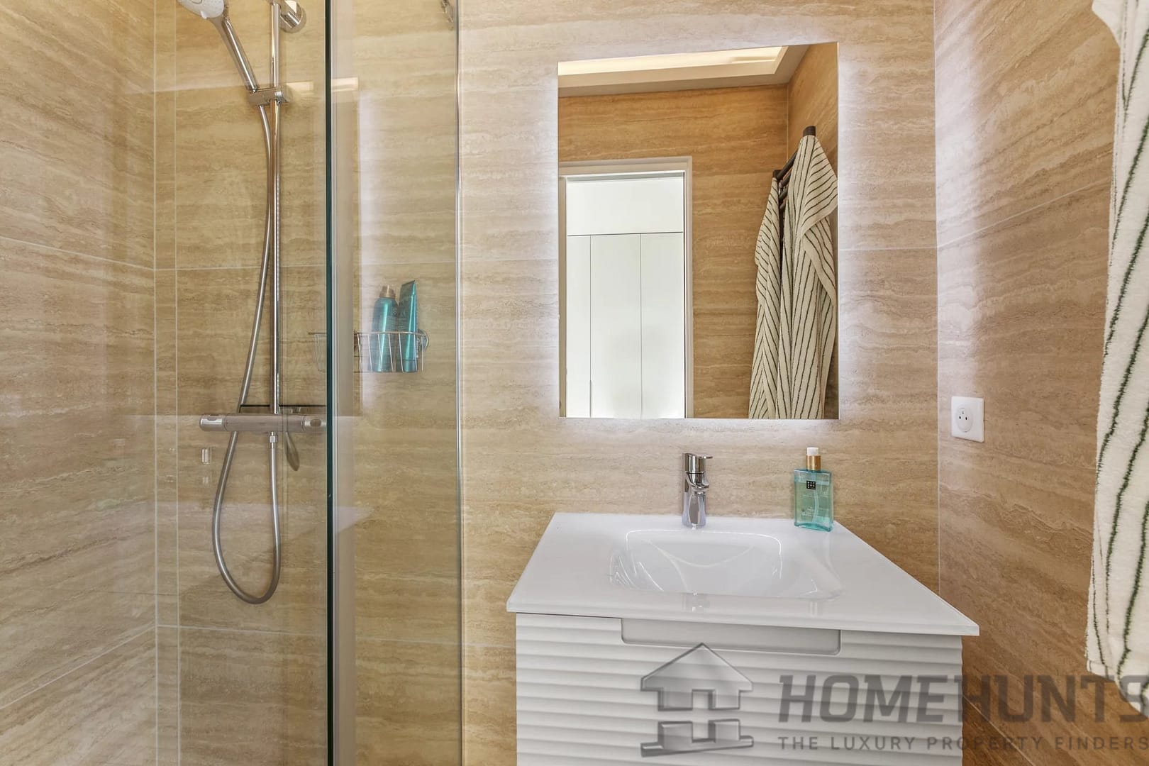 From the moment you enter, you’ll be charmed by the exceptional brightness of the living room, extended by an elegant dining area installed on the veranda. This refined living space opens onto a spacious rooftop terrace, equipped with a barbecue and offering a sea view.