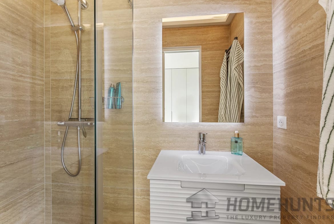 The night area features two beautiful bedrooms, each with its own en-suite shower room, ensuring optimal comfort. A separate WC adds to the functional layout.