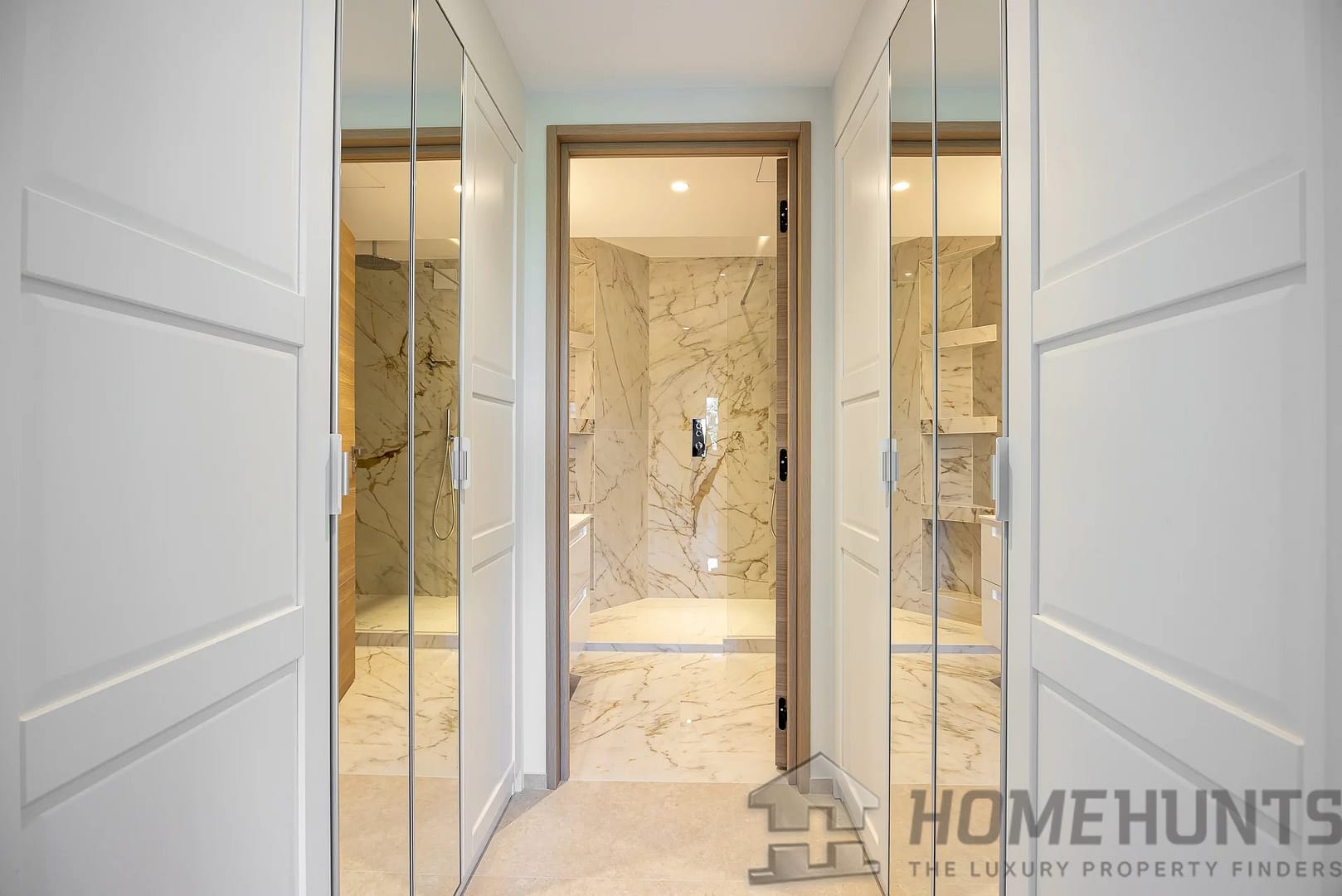 Luxuriously renovated, the apartment offers a surface area of 92 m2 and features a spacious living room with an open-plan, fully equipped kitchen that opens onto a beautiful terrace overlooking the sea. It includes two bedrooms, each with its own en-suite shower room, one of which has a toilet, as well as a separate guest WC.