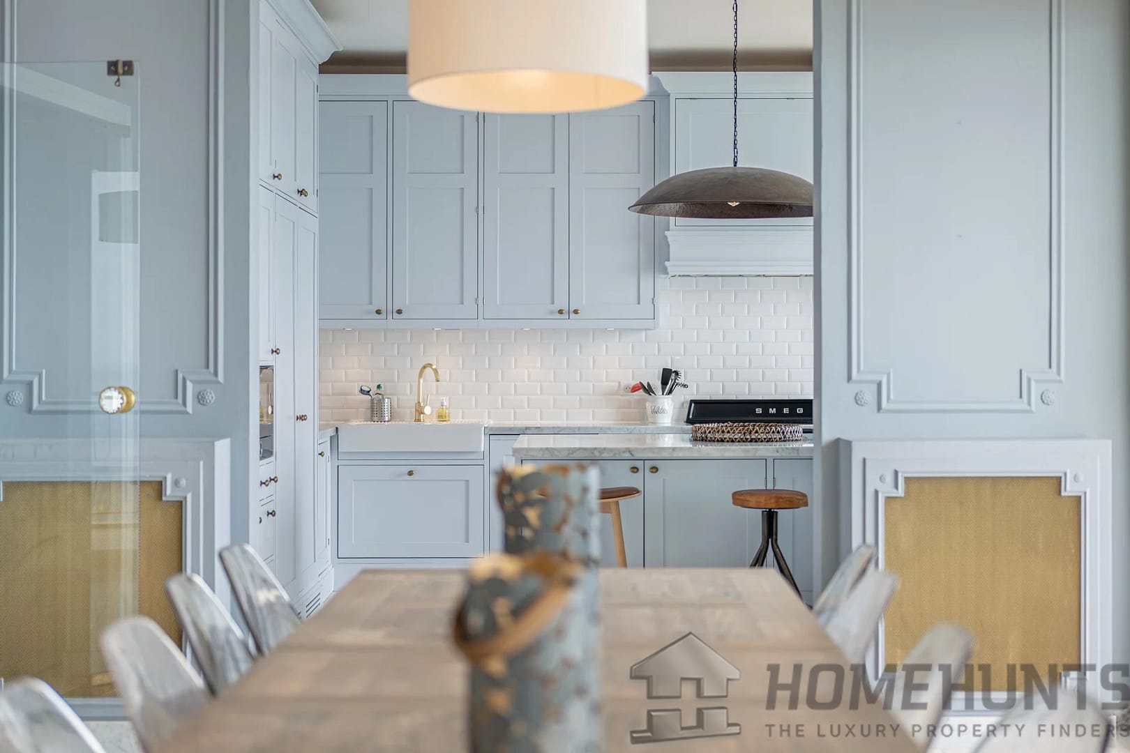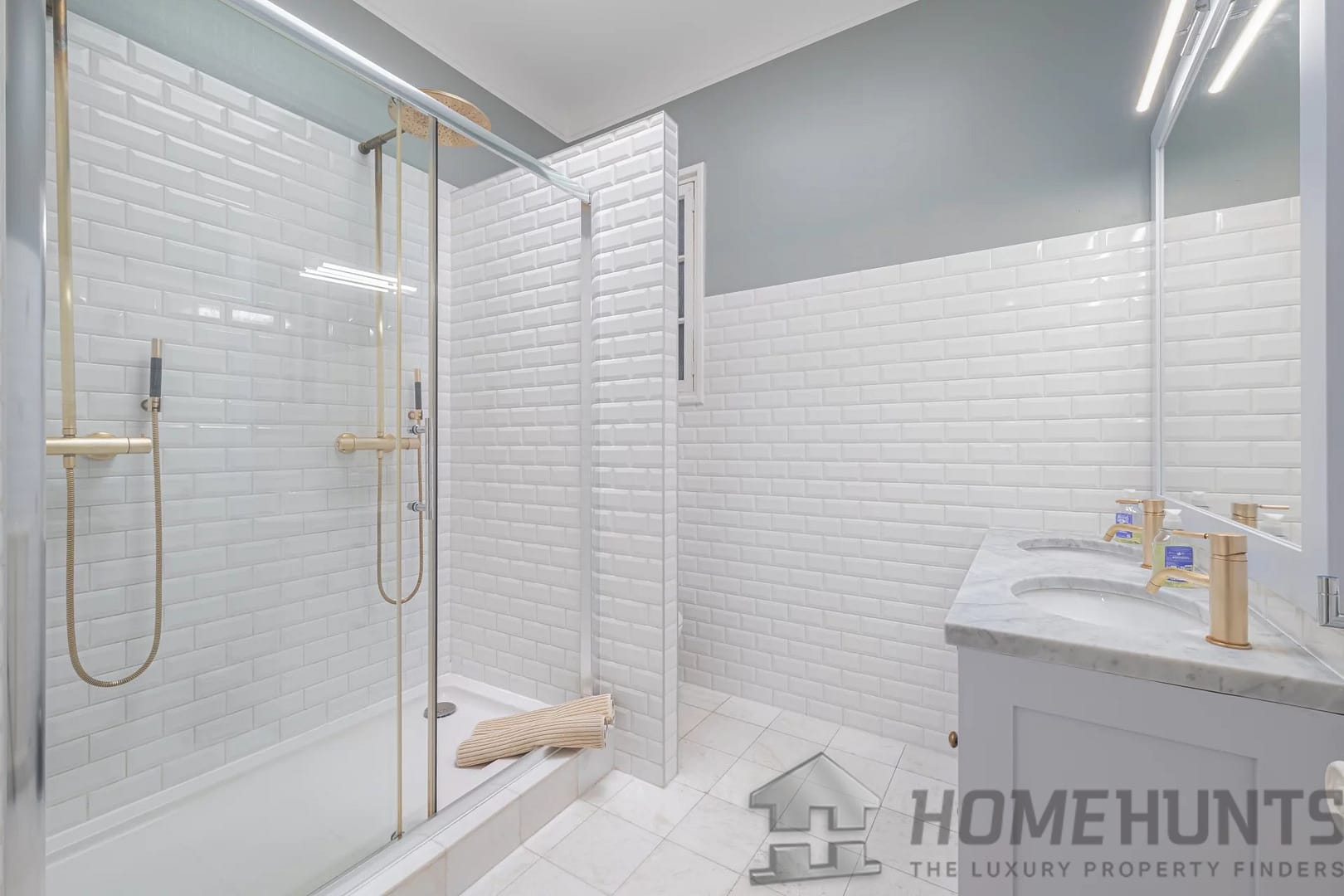 From the entrance, a vast hall welcomes you and leads to a light-filled living room, extended by a fully-equipped open-plan kitchen with top-of-the-range features.