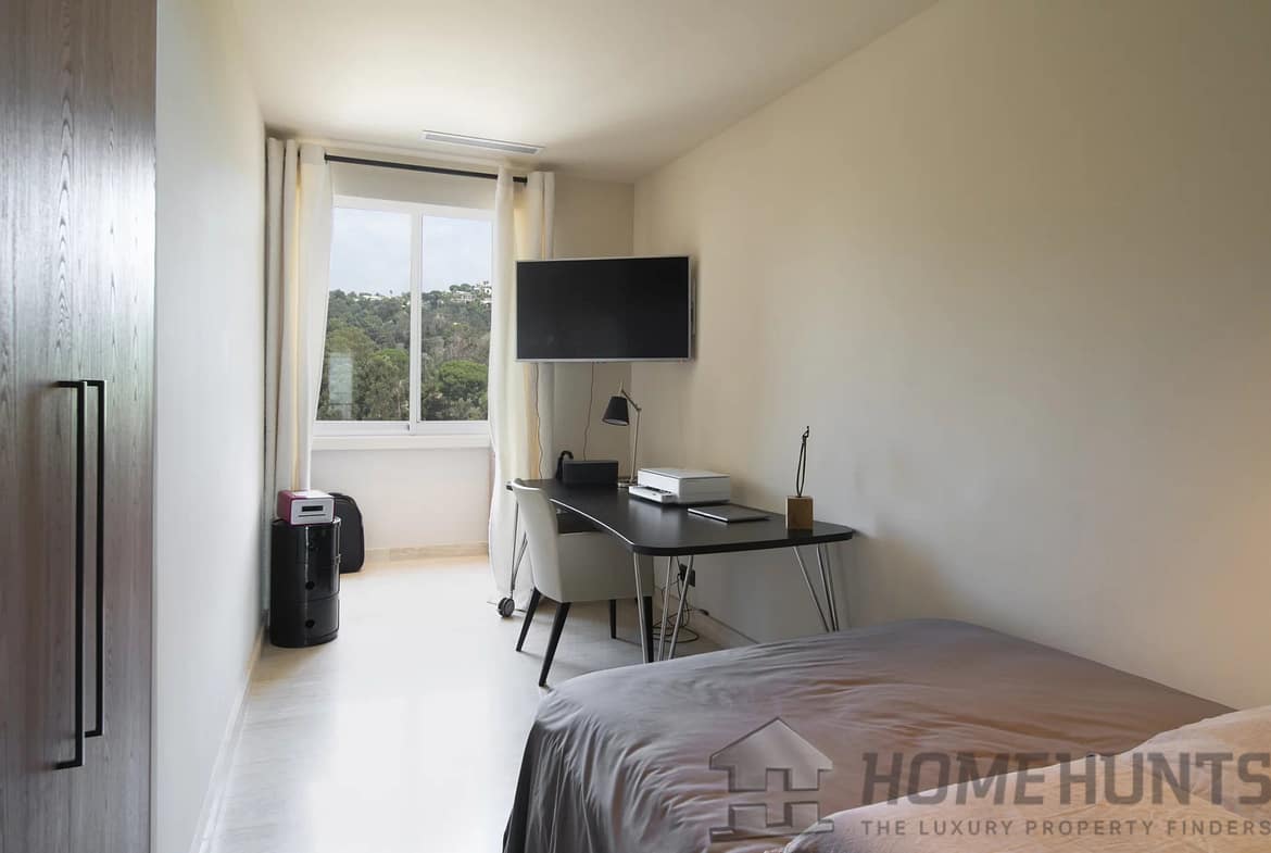 The high-end residence is secured 24/7 by a caretaker and offers a wide range of services and amenities: a 12-hectare park, swimming pool, tennis court, gym, private shuttle, and golf course. Agency fees payable by the seller.