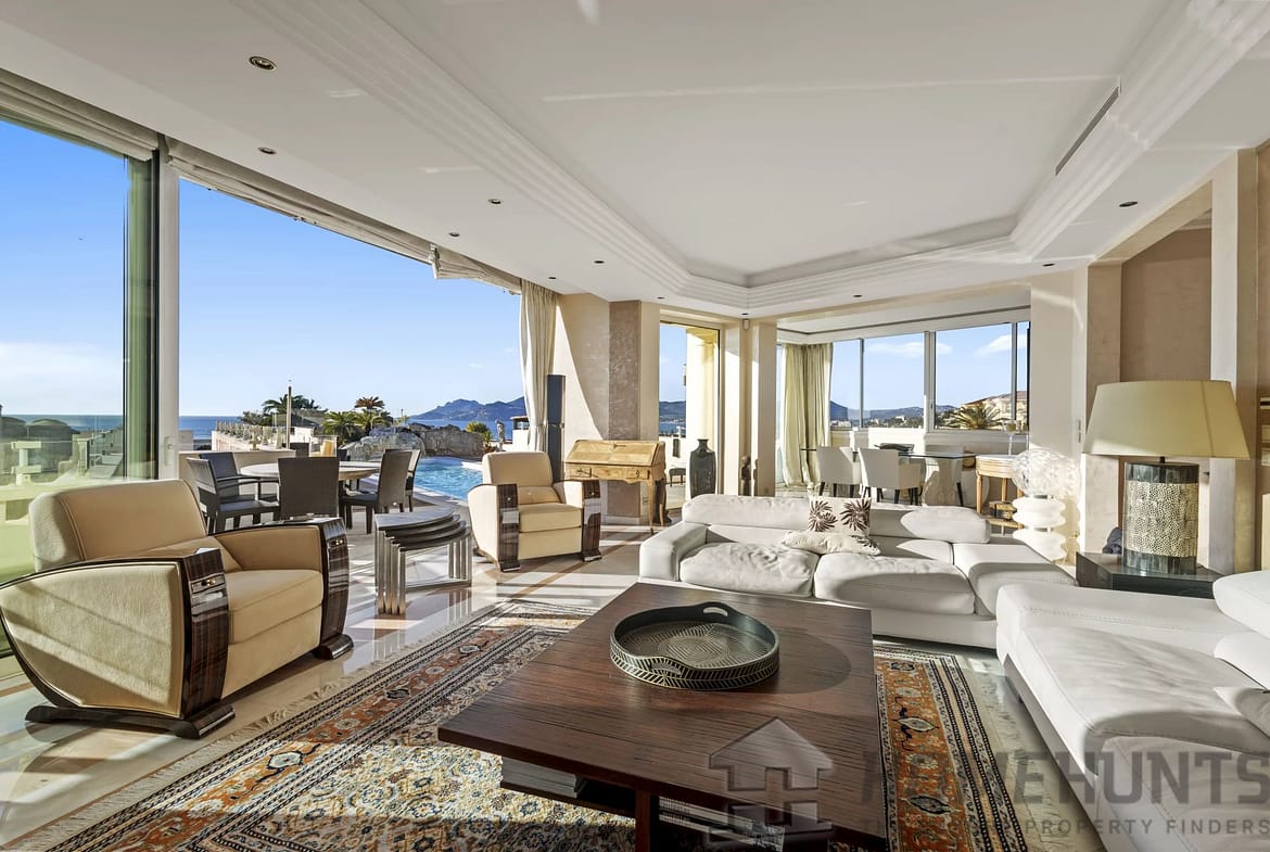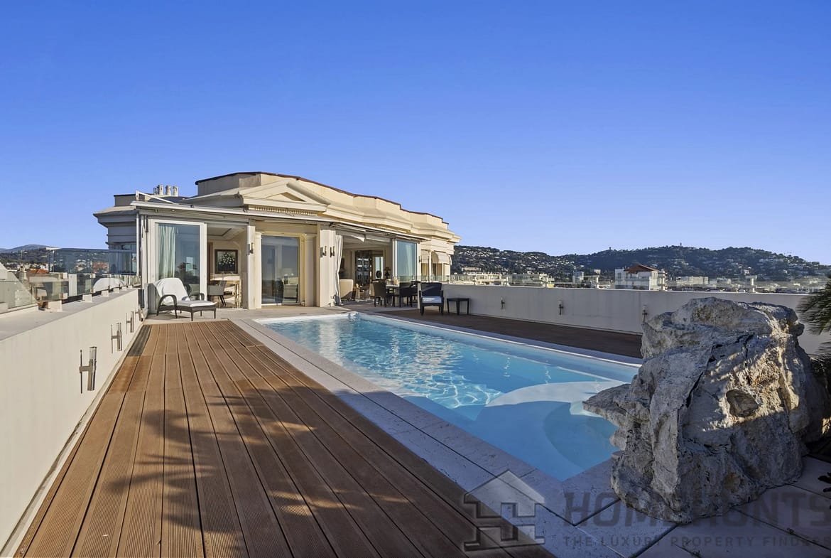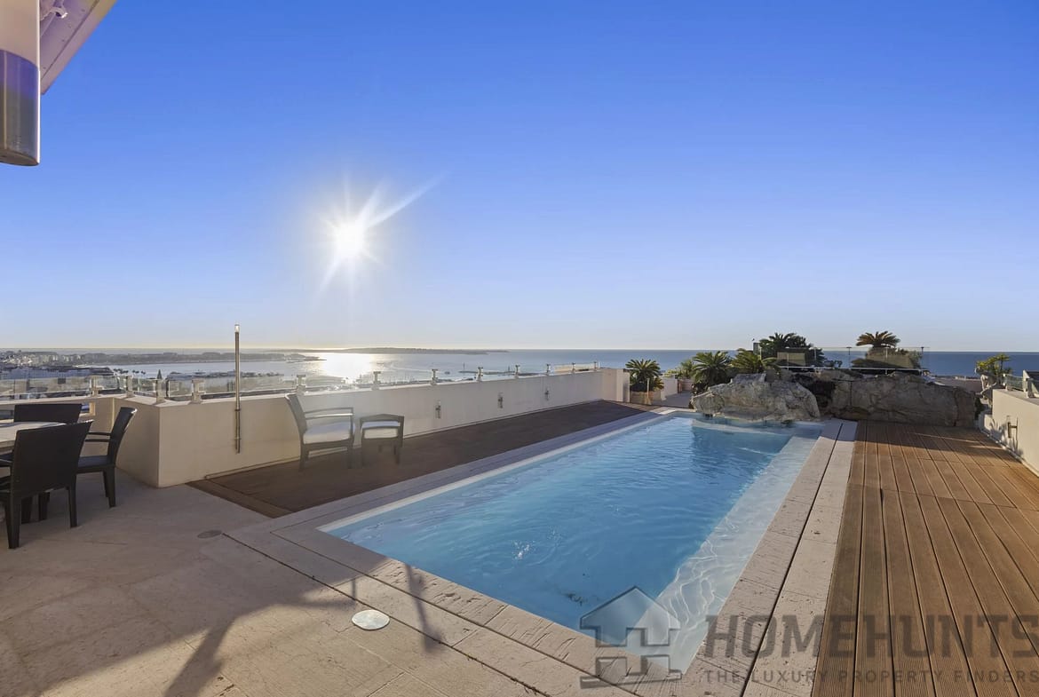 Ideal for those seeking the quintessential French Riviera lifestyle, the penthouse also comes equipped with two private garages and two cellars for additional convenience.