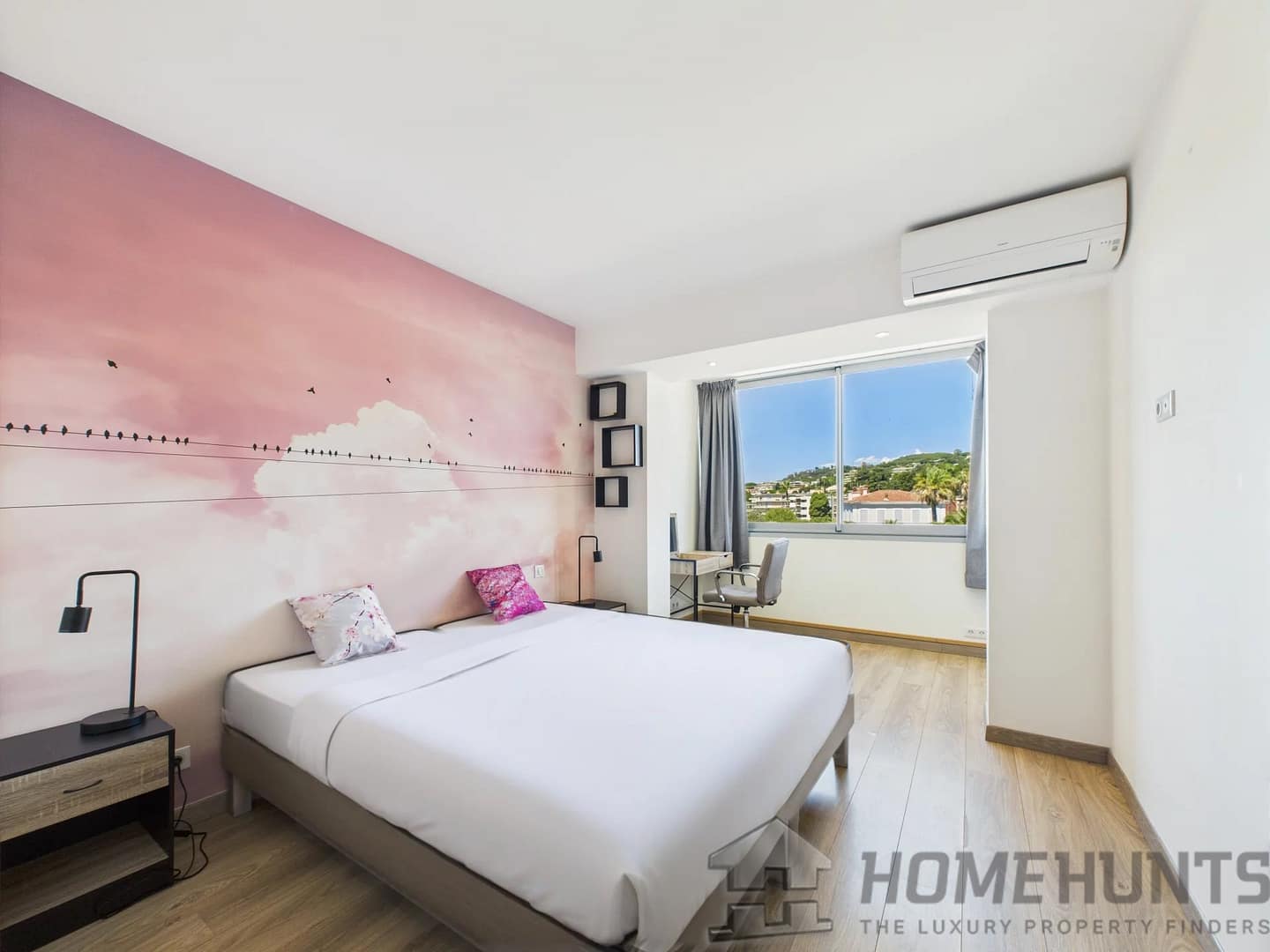 Located on the penultimate floor of a sought-after. secure residence. in the heart of the quiet Plages du Midi district and just a few minutes’ walk from the Palais des Festivals. this magnificent 90 m2 2-room apartment has been completely renovated to a very high standard.