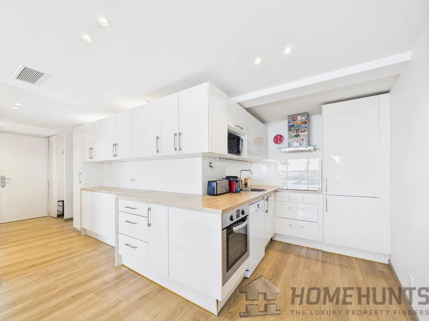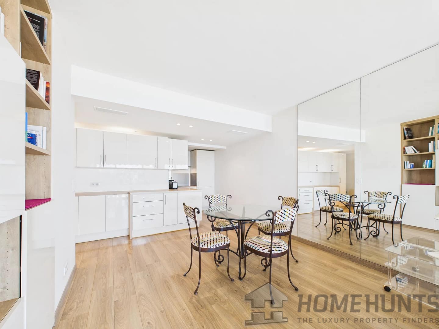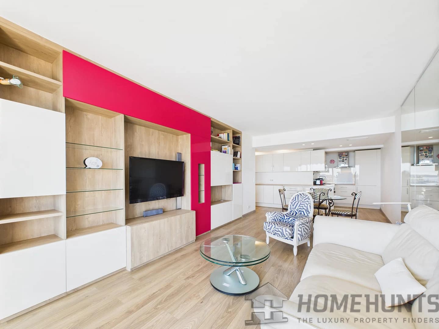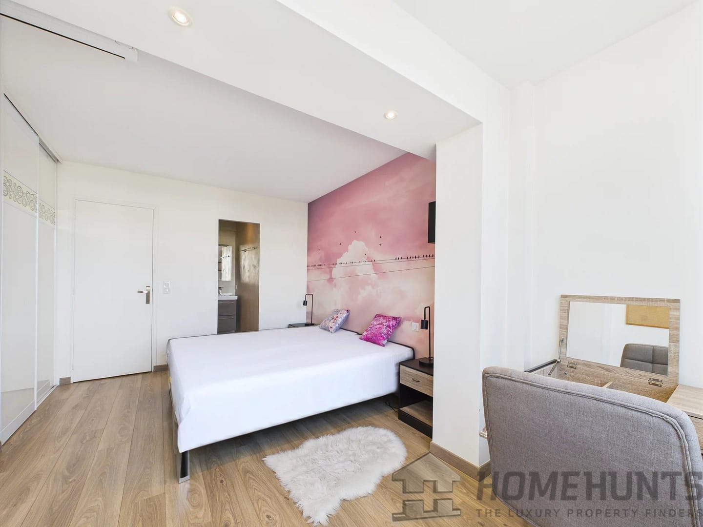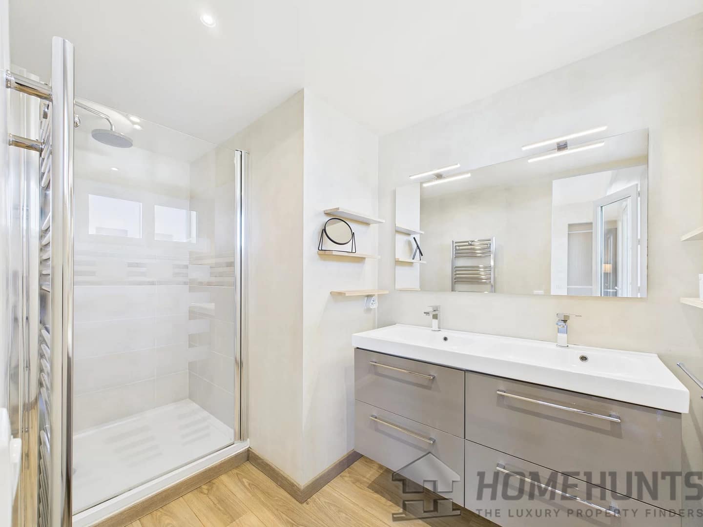 The apartment features two en suite bedrooms. each with its own private shower room and built-in storage space. The master suite also benefits from a dressing room and loggia.