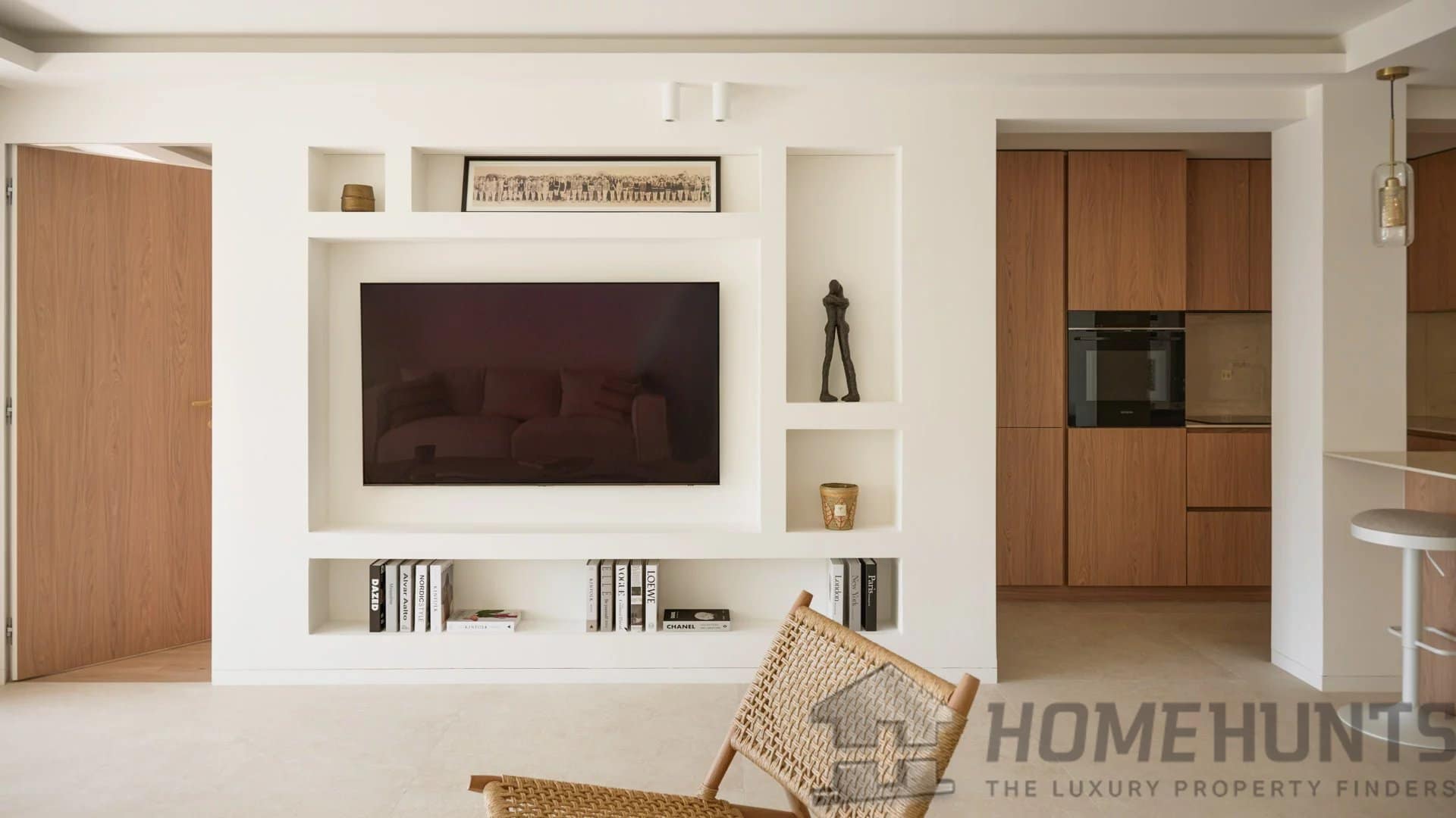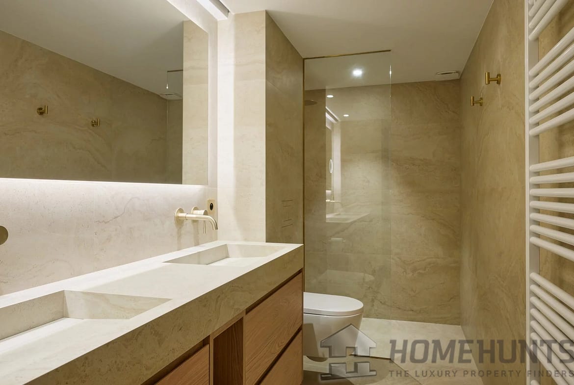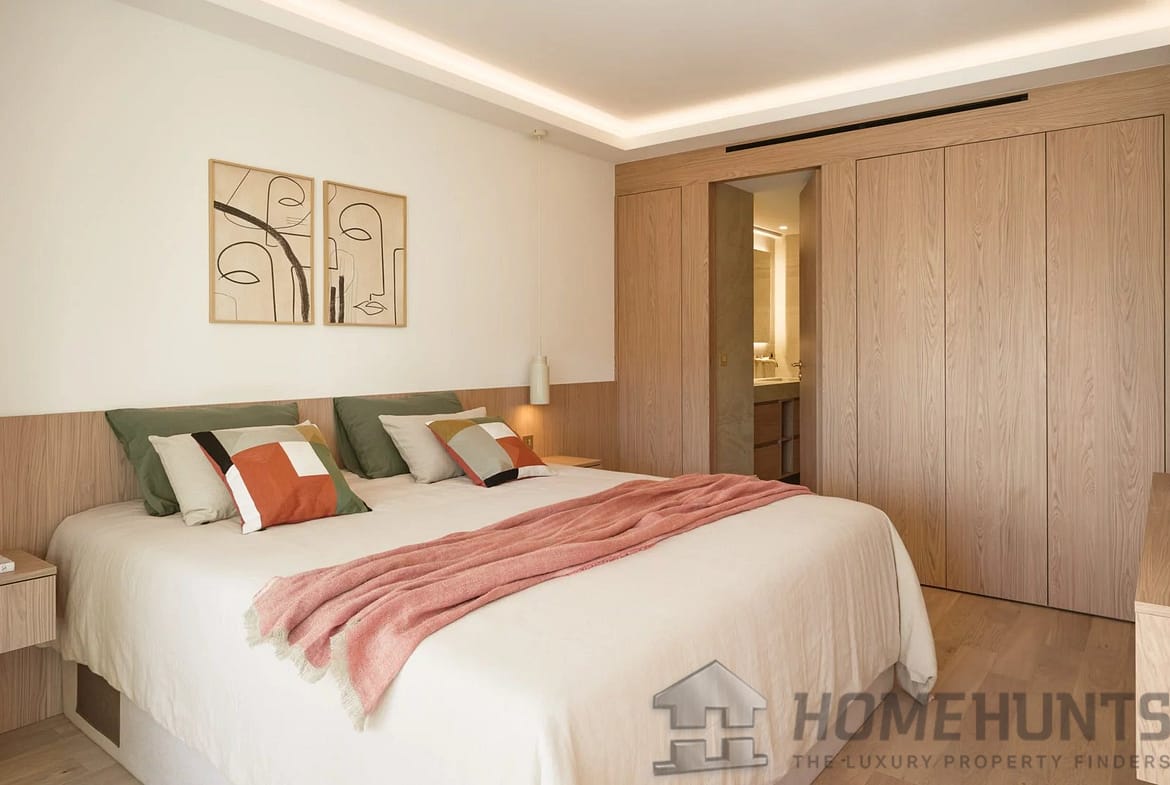 With a living area of approx. 100 m2, the apartment includes a large south-facing terrace of approx. 20 m2, a living room with open kitchen, three en-suite bedrooms with shower rooms and walk-in closets.