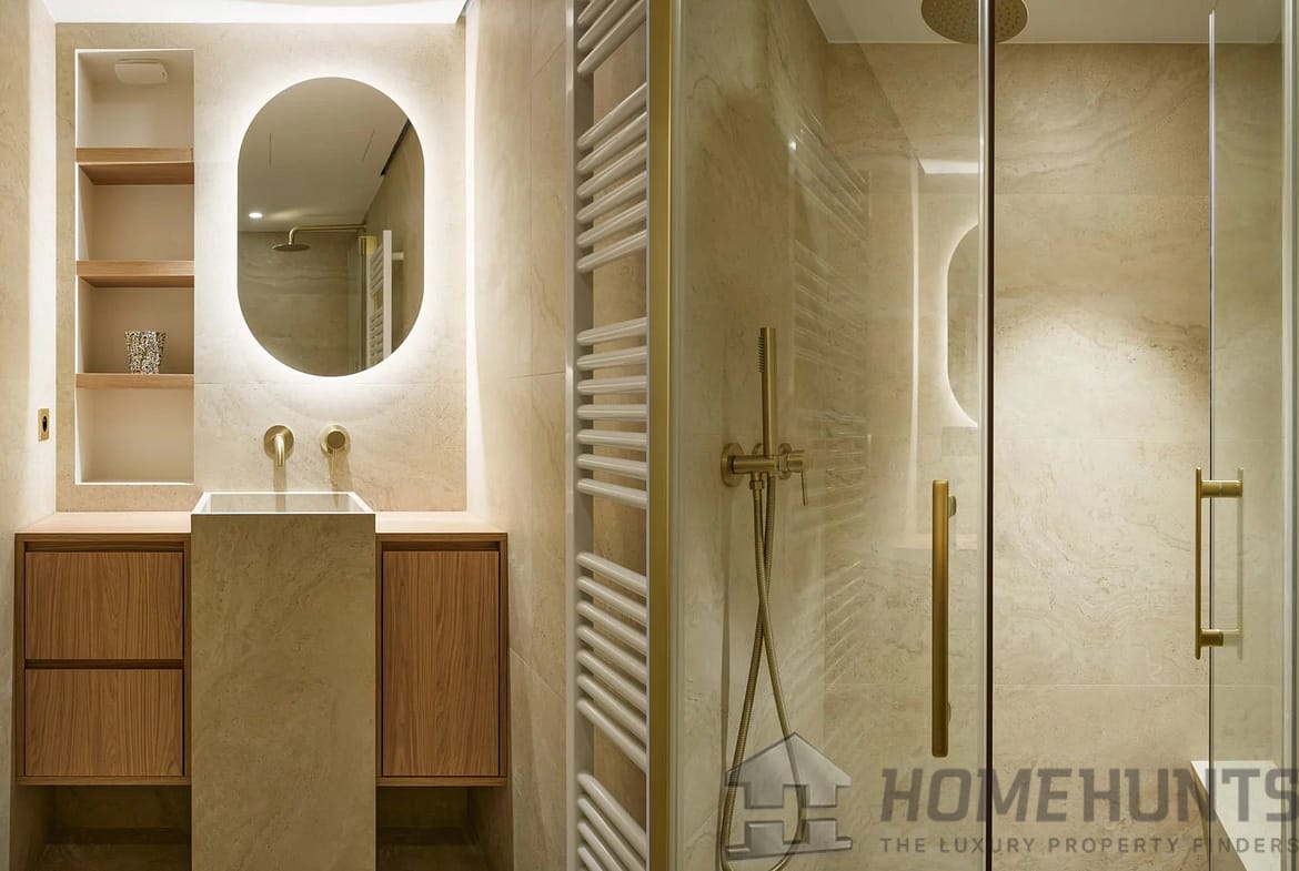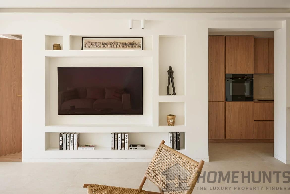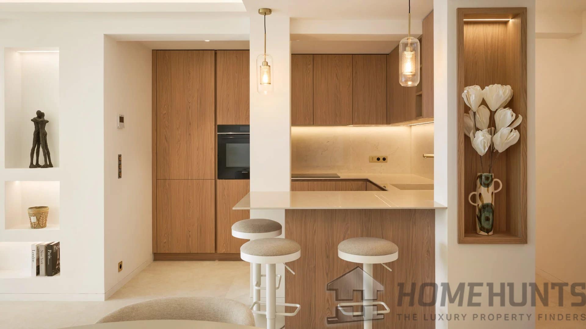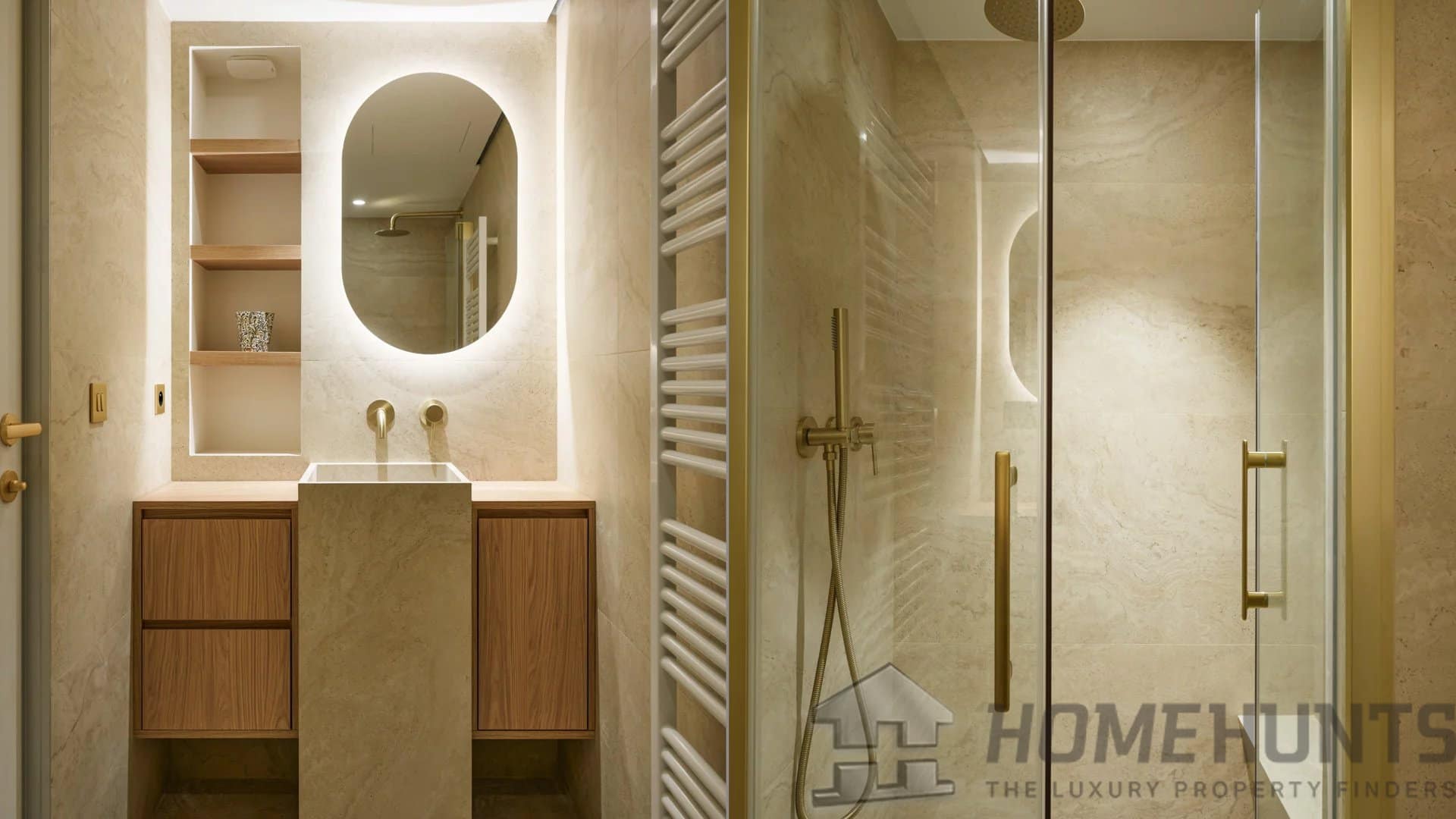With a living area of approx. 100 m2, the apartment includes a large south-facing terrace of approx. 20 m2, a living room with open kitchen, three en-suite bedrooms with shower rooms and walk-in closets.