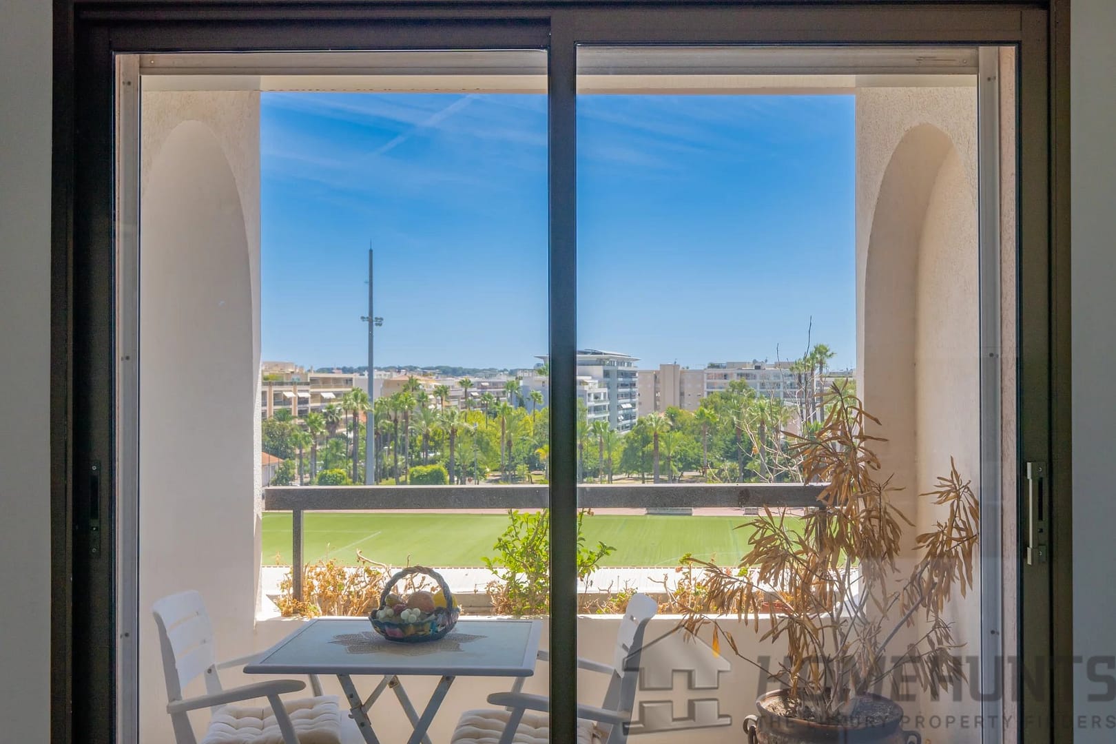 The apartment opens onto a front-facing terrace, offering open views and a pleasant sea glimpse.