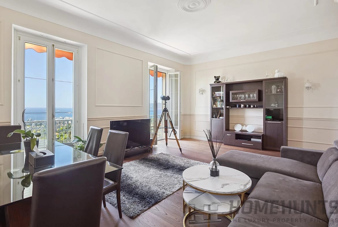 Nestled in the heart of Avenue du Roi Albert Premier, this magnificent bourgeois apartment of 120 sqm stands out for its harmonious blend of contemporary and old-world charm. Located on the 3rd floor of a prestigious residence with a caretaker and a park, it offers breathtaking views of the Mediterranean Sea and the Lérins Islands, with no overlook.