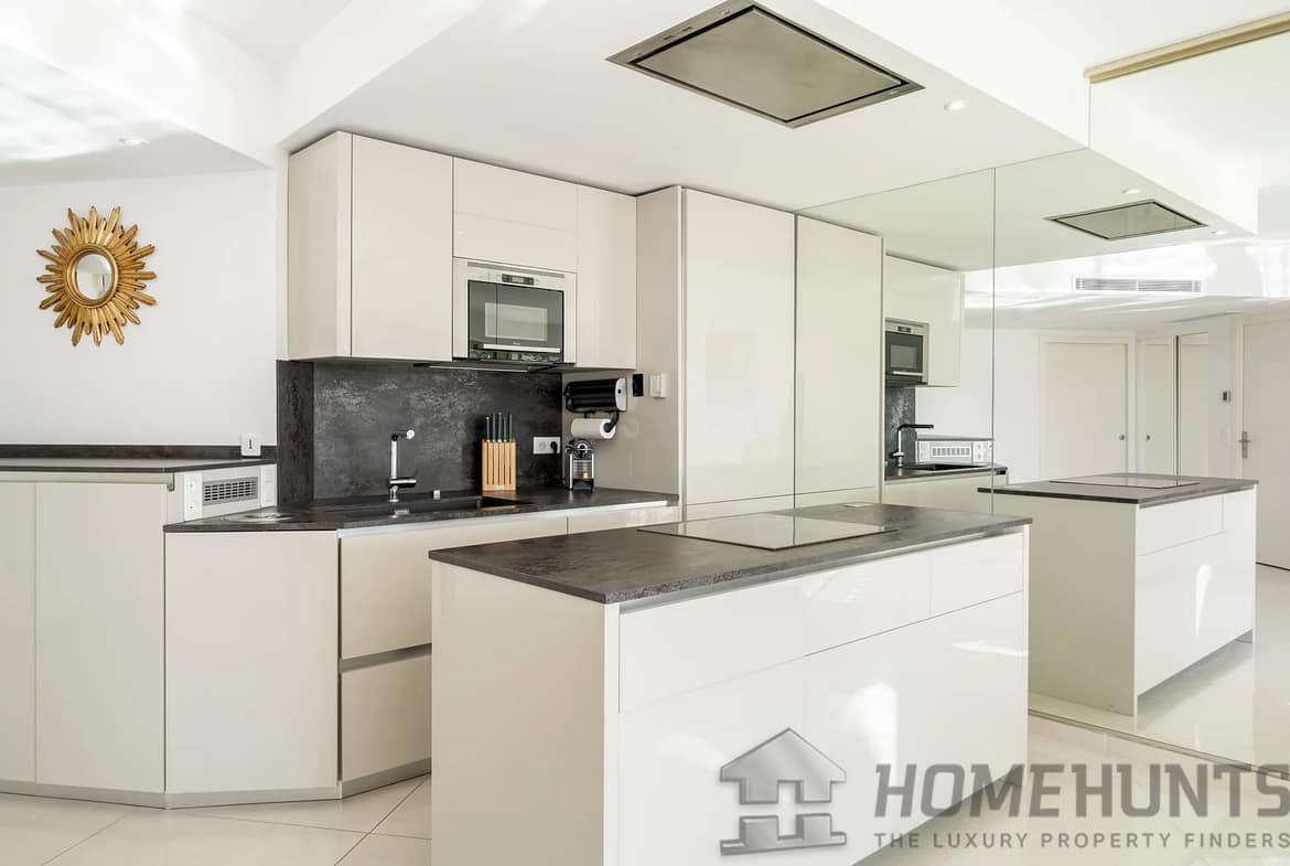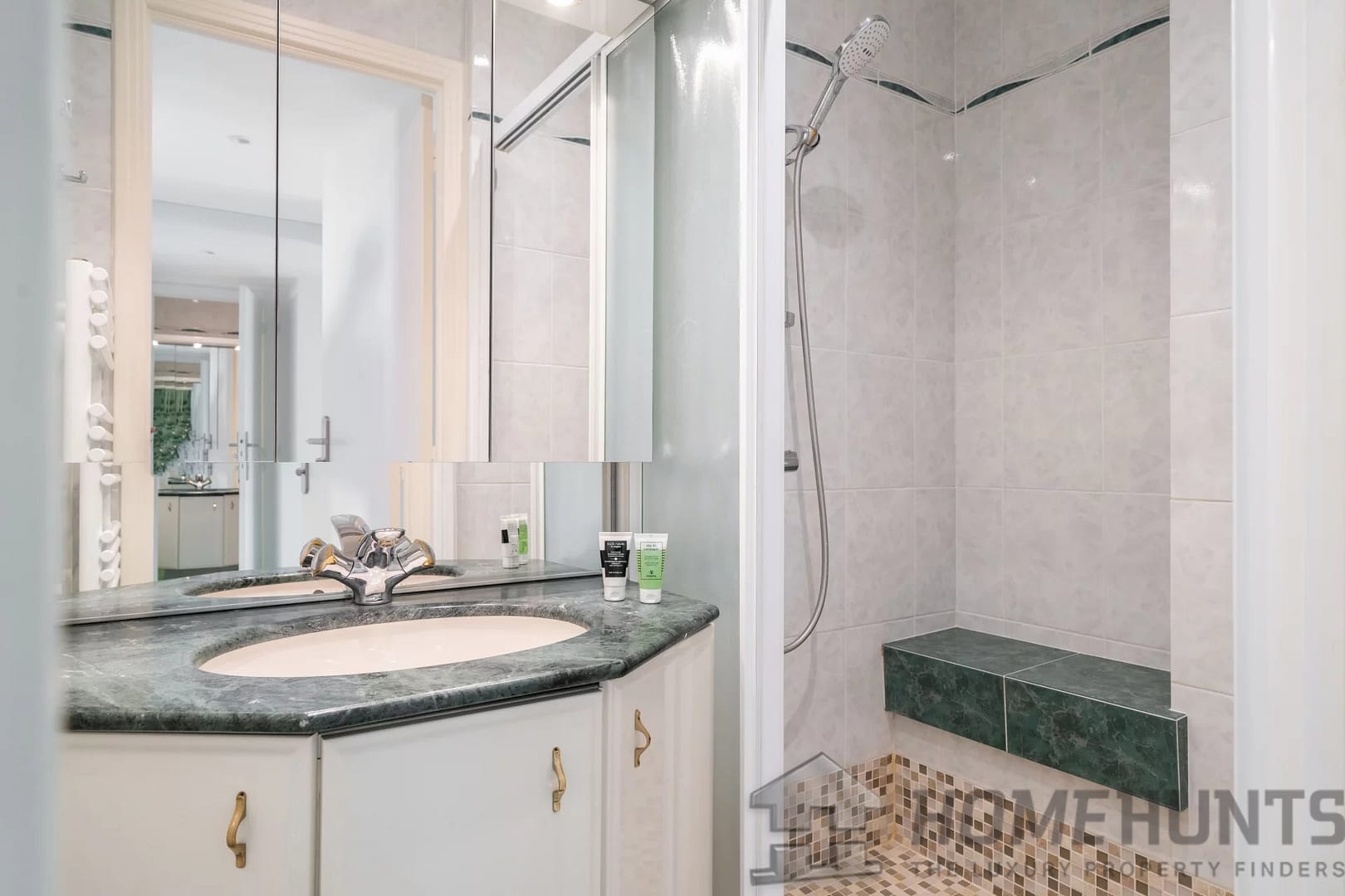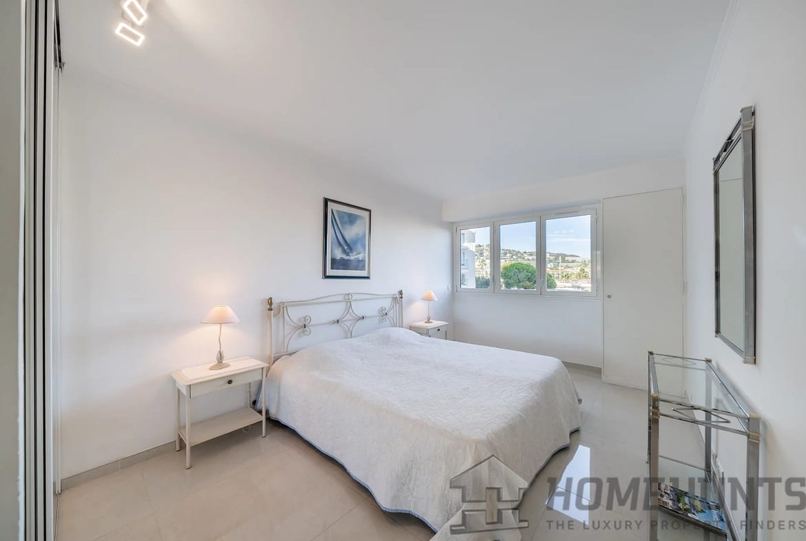The entrance opens onto a vast, luminous living room with open kitchen, extended by a south-west-facing terrace offering a magnificent sea view. The night area comprises a first bedroom with fitted closets and an unobstructed view of California, a bathroom, a second bedroom with fitted closets and an adjoining shower room, and a third bedroom, ideal for a child or an office, with a shower area, fitted closets and a loggia converted into a laundry room.