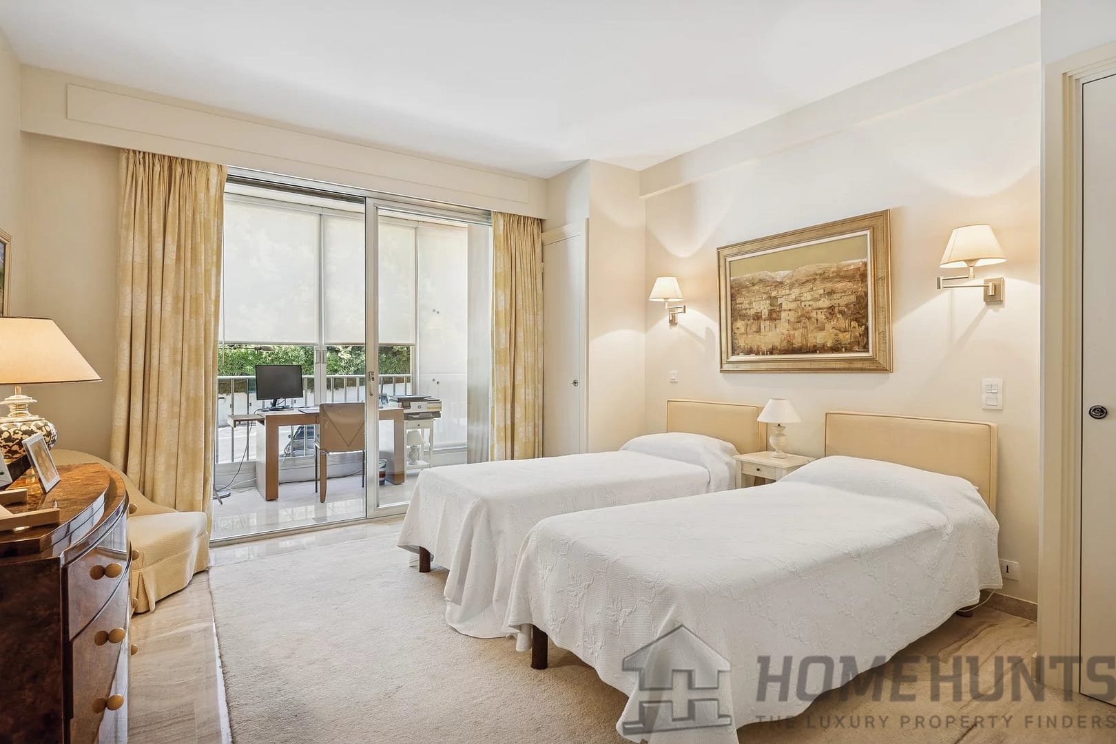 The apartment features a spacious living room opening onto a terrace with unobstructed views of the sea and the Lerins Islands. The separate, fully equipped kitchen has a utility room for added convenience. You’ll enjoy two en-suite bedrooms, including the master bedroom with direct access to the terrace with a view.