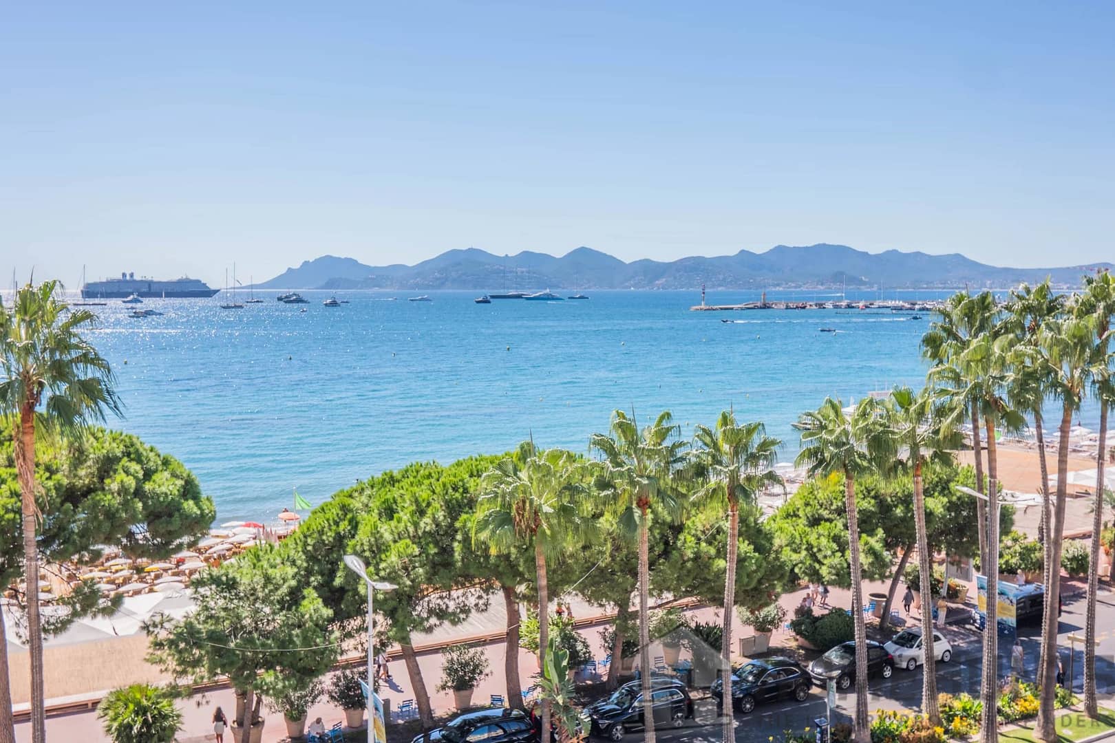 Located on the 6th floor with elevator and janitor service, this apartment offers a breathtaking view of the Bay of Cannes and the Mediterranean from its terrace.