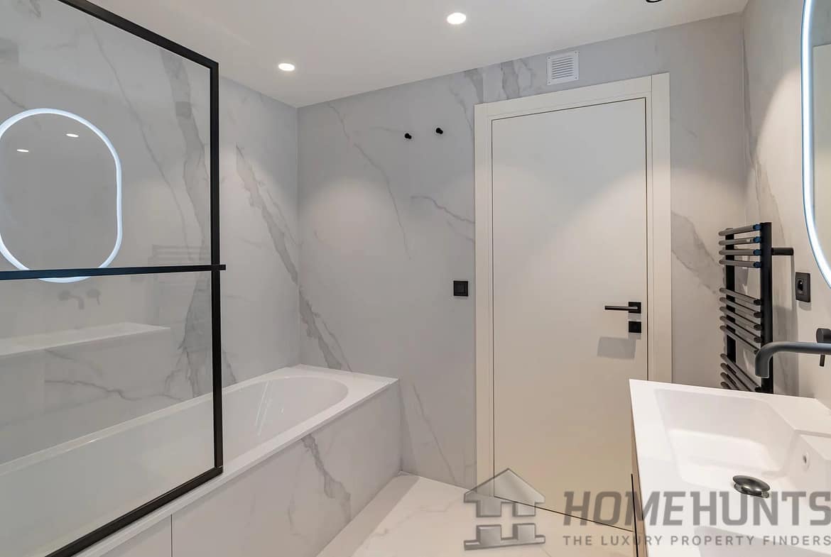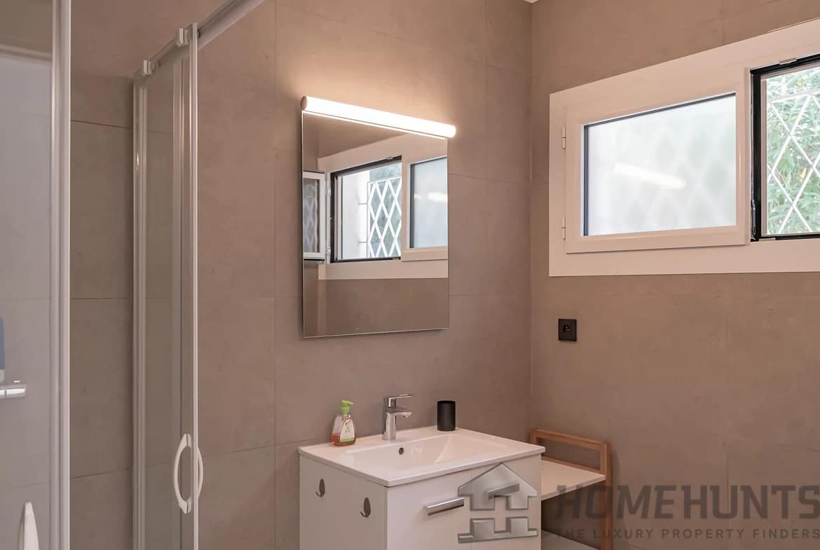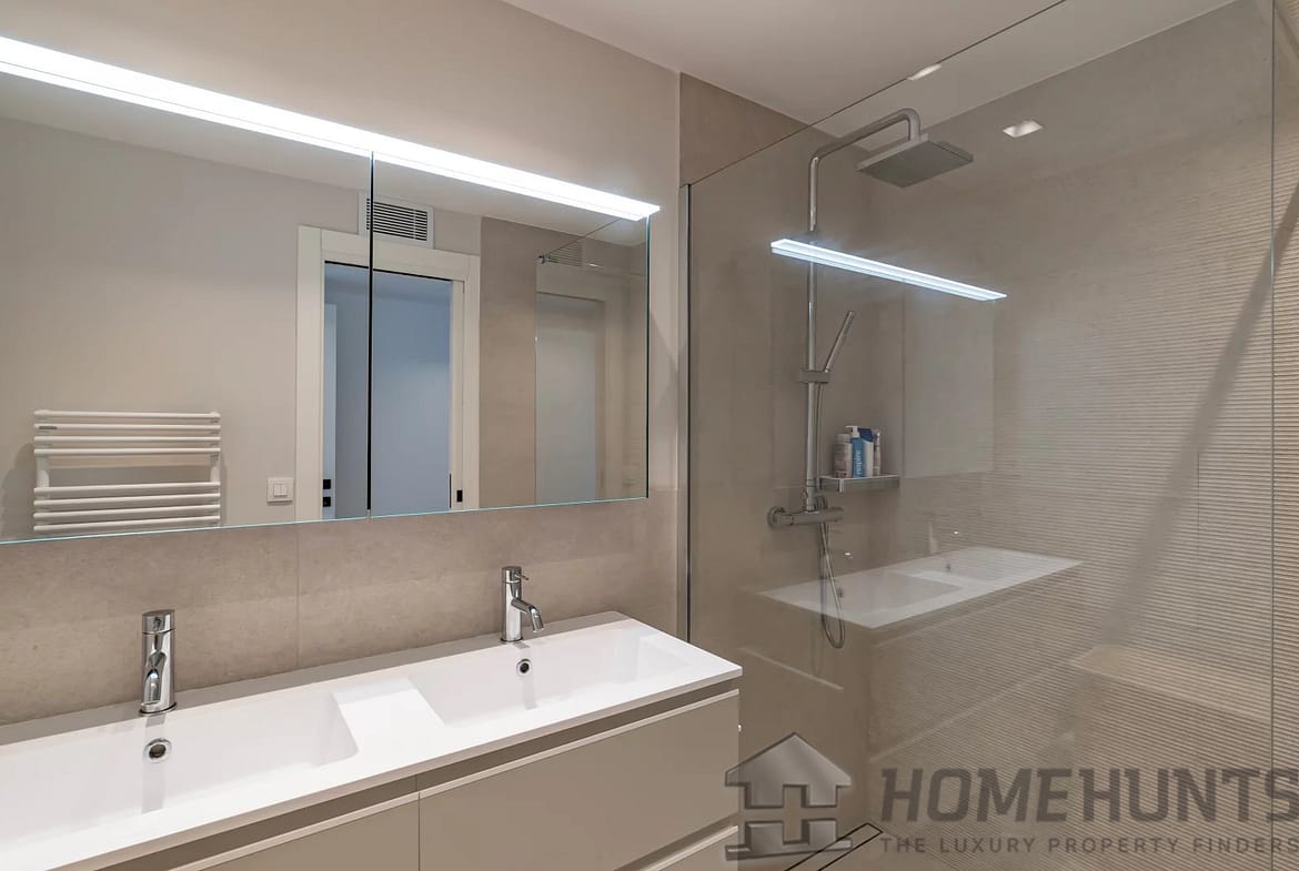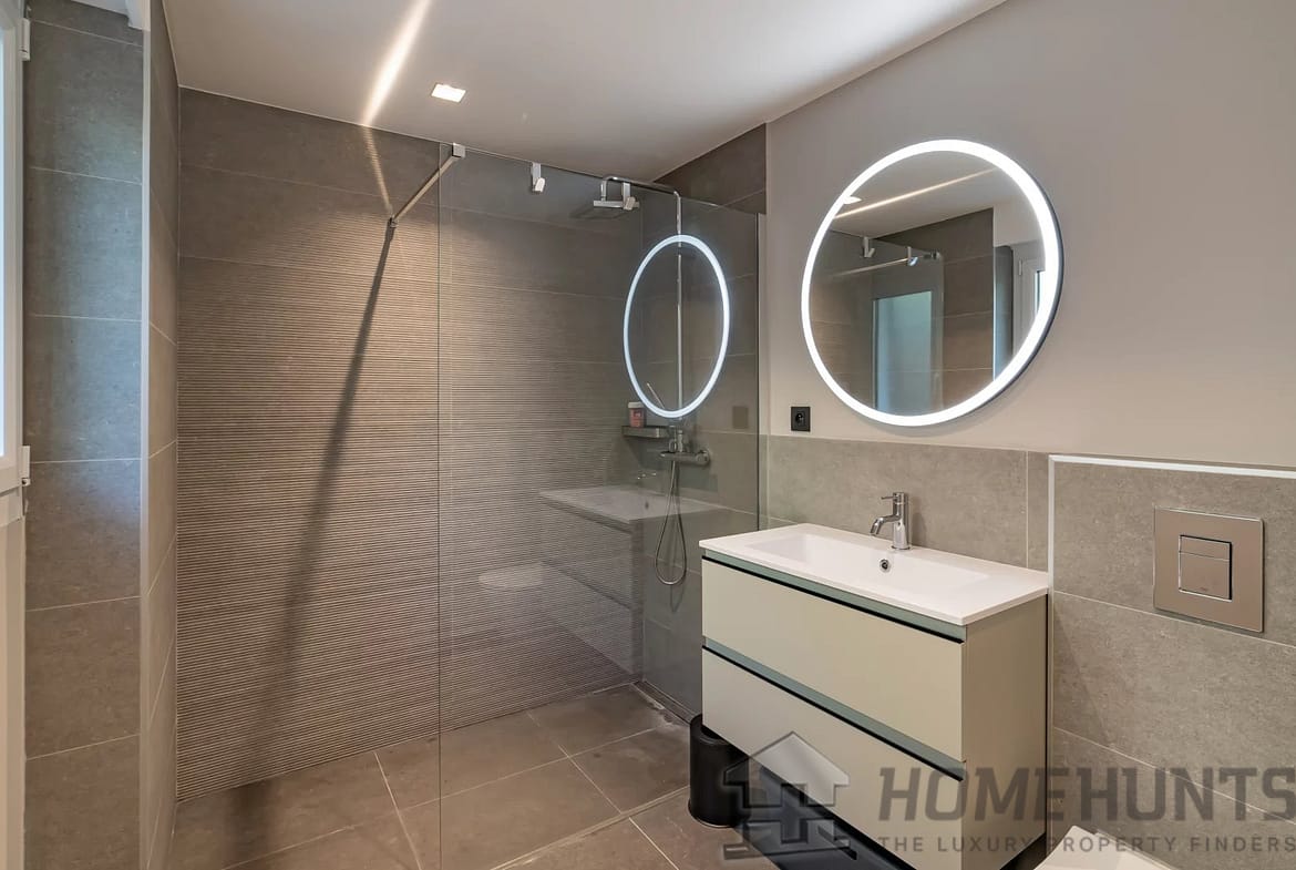 Entirely renovated recently in a contemporary style, it comprises an entrance hall, a living room with open-plan fitted kitchen, a master suite with shower room, dressing room and terrace access, and two further bedrooms, each with storage space and its own shower room.