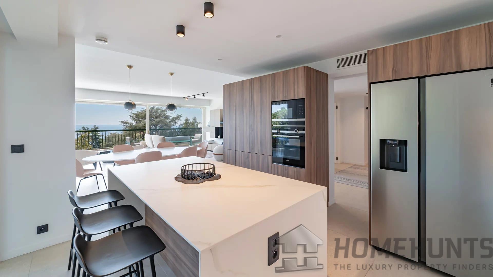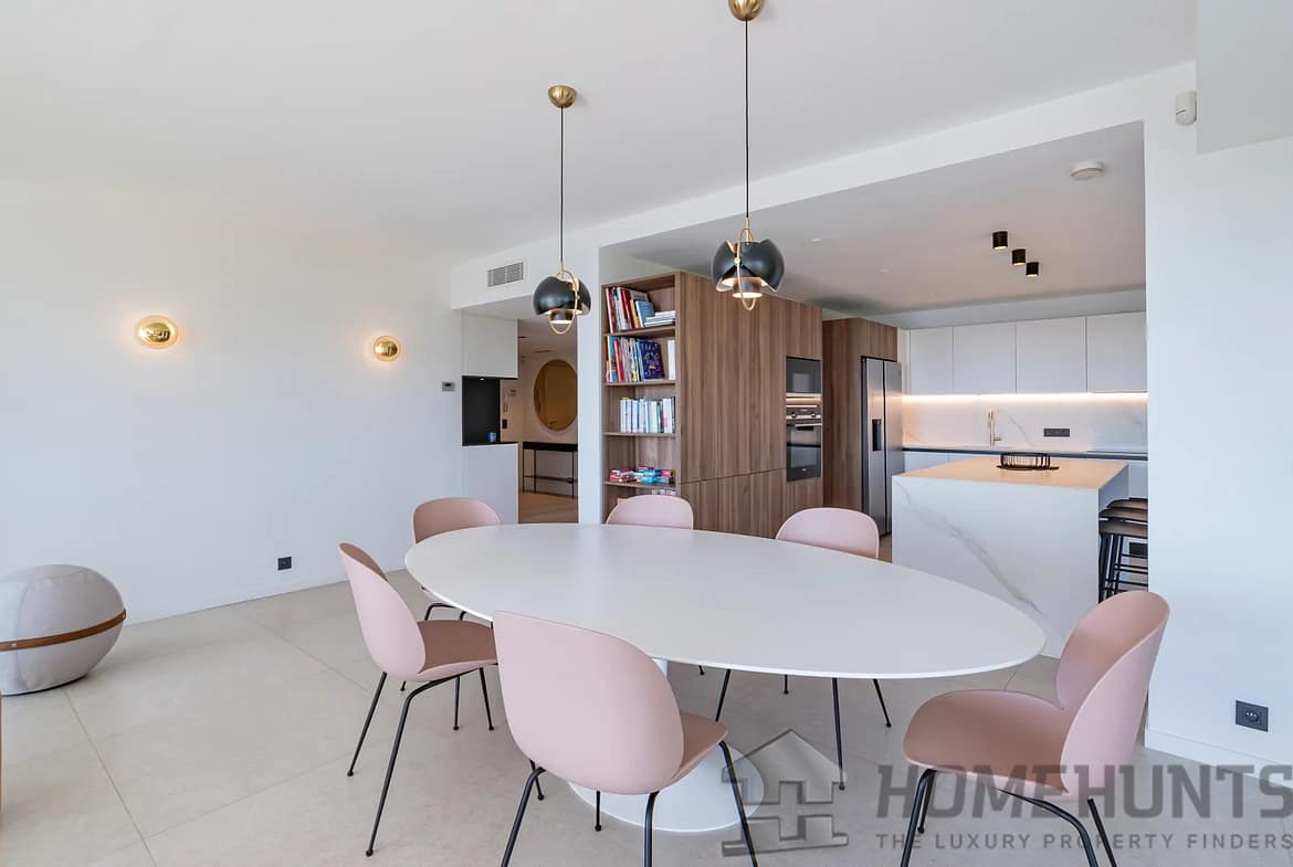 Located in one of the area’s most prestigious residences, this vast corner apartment boasts 148.72 m2 of living space. Extended by a 49 m2 south-facing terrace, it offers unobstructed views of the sea and the residence’s grounds.