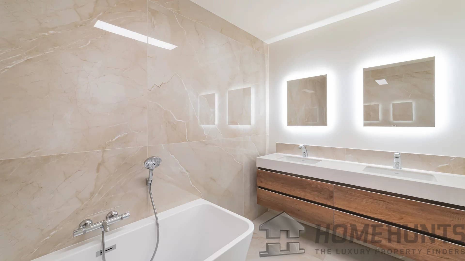 This dual-aspect property boasts two terraces: a 14 m2 south-facing terrace off the living room, and an 11 m2 terrace on the bedroom side.