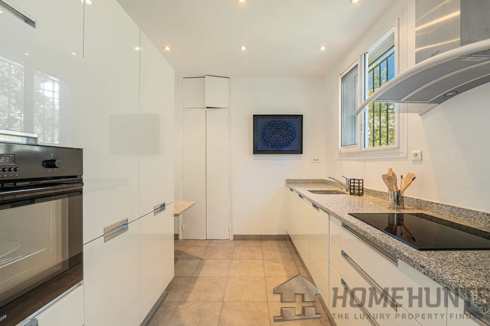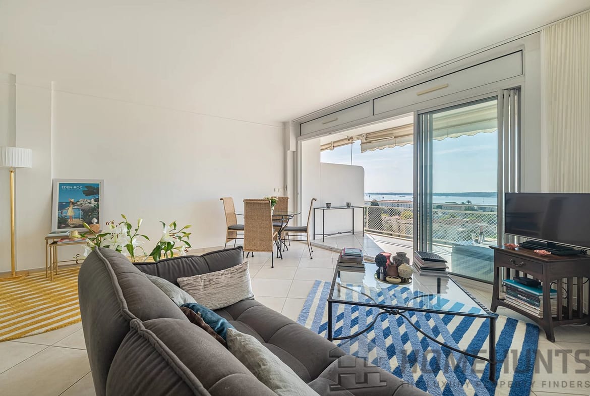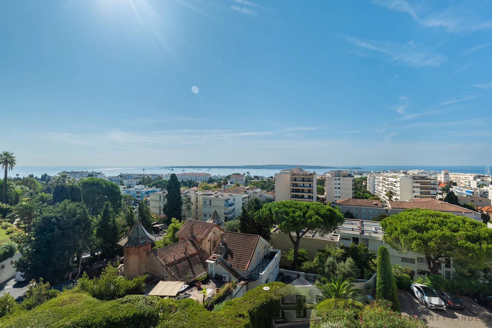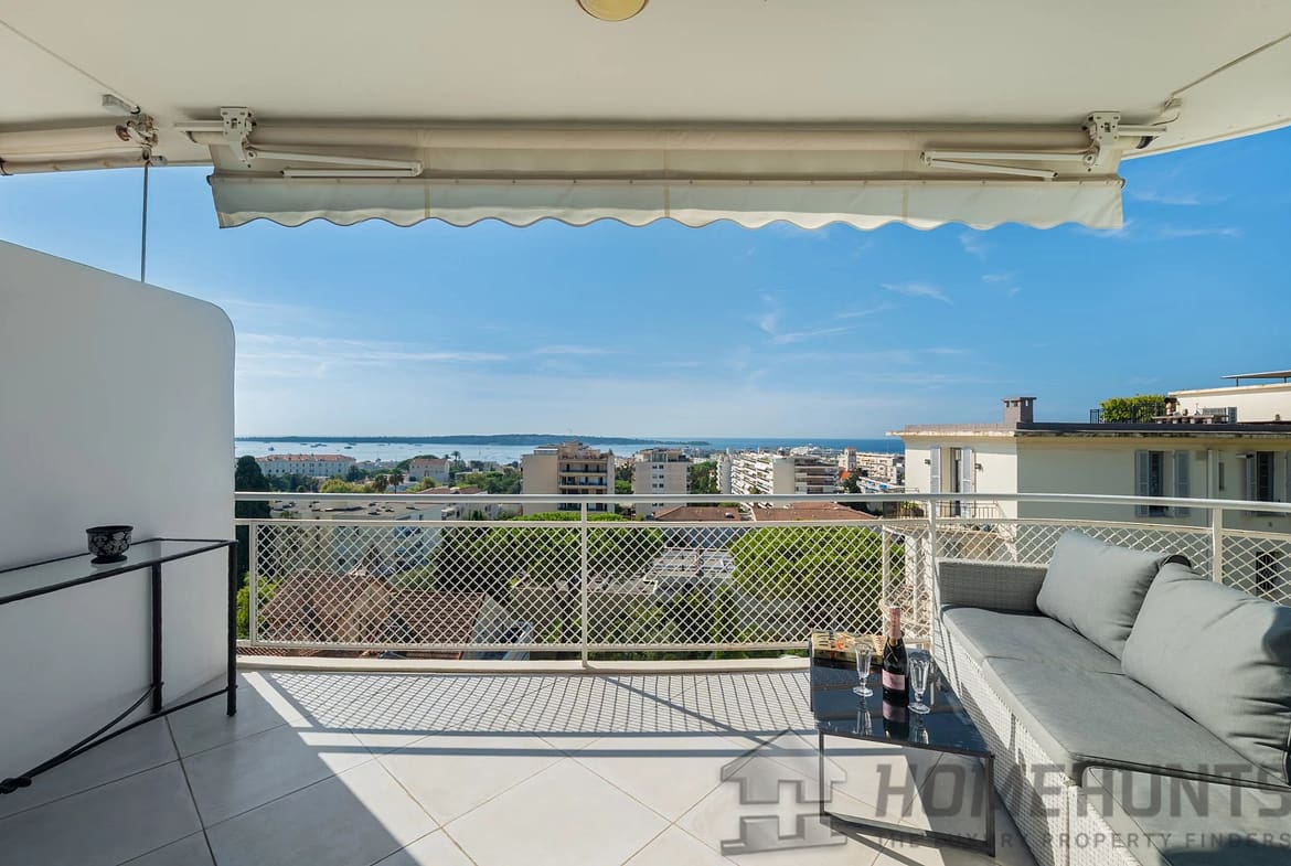 It features an entrance hall with a large closet, a spacious living room opening onto a stunning 12 m2 south-facing terrace, offering a panoramic and captivating view of the sea and the Lerins Islands.