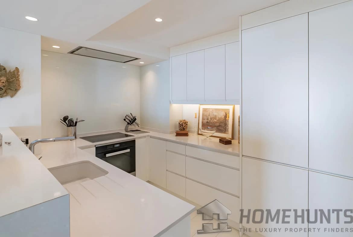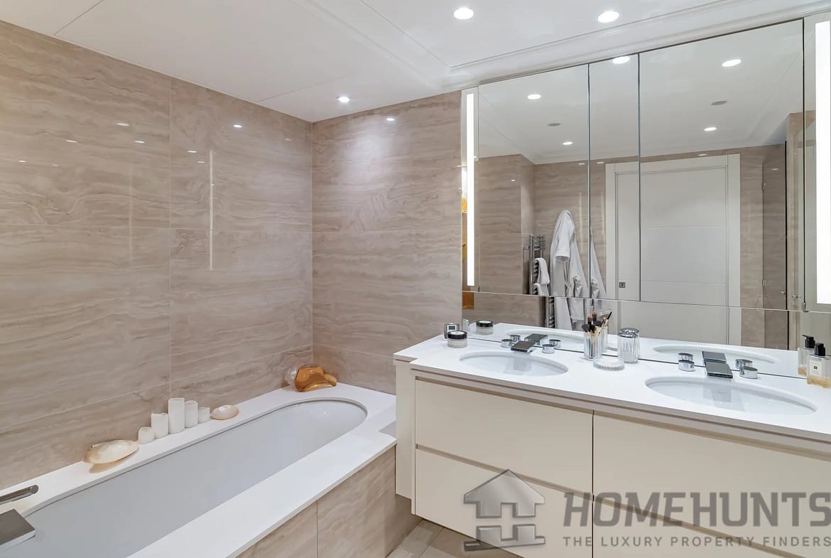 Beautifully appointed with top-of-the-range finishes and elegant contemporary decor, the apartment opens onto a spacious double living room with a discreet open-plan kitchen, creating a harmonious space for both relaxation and entertaining.