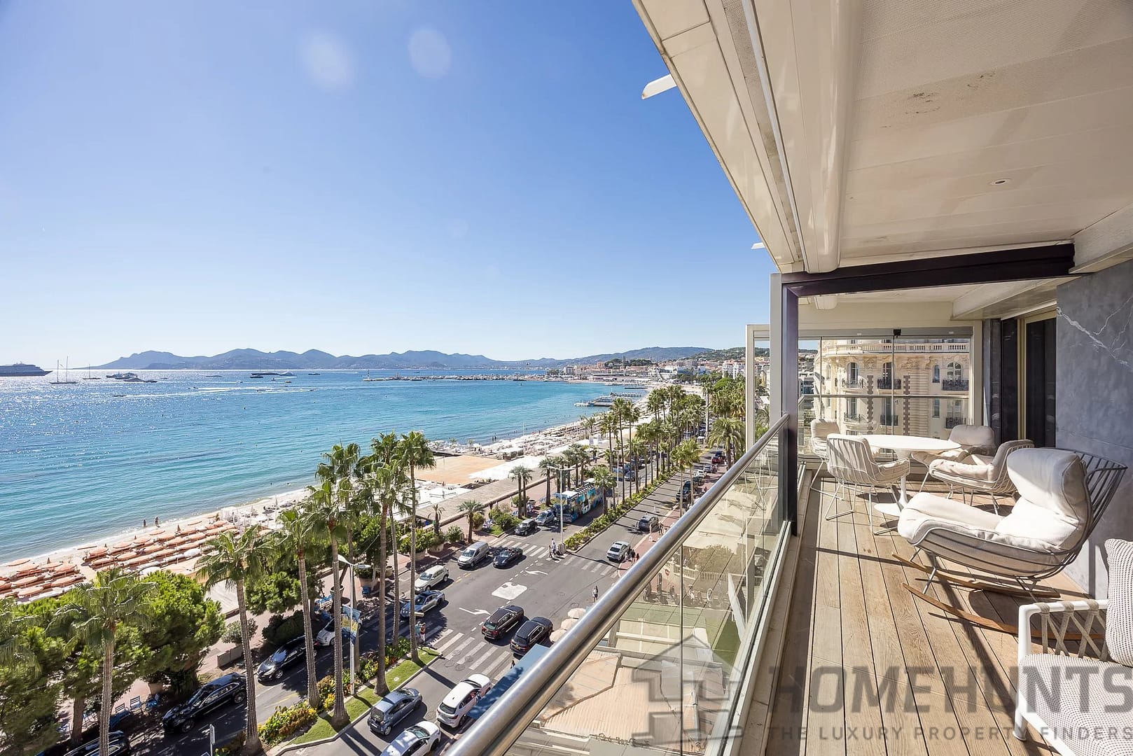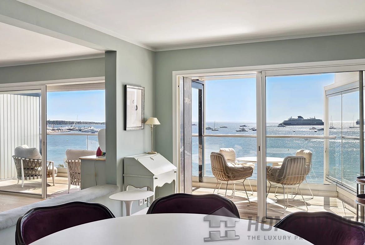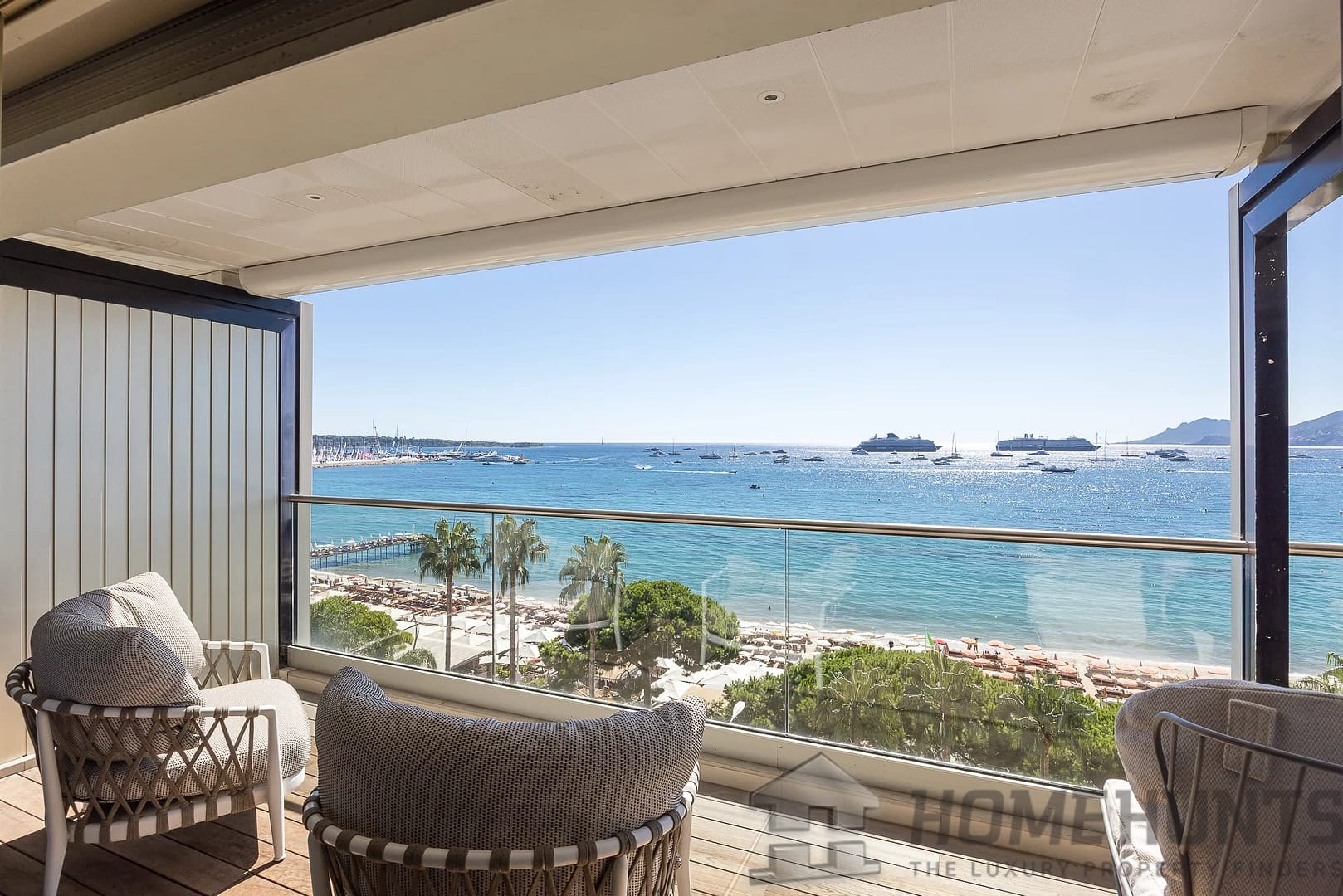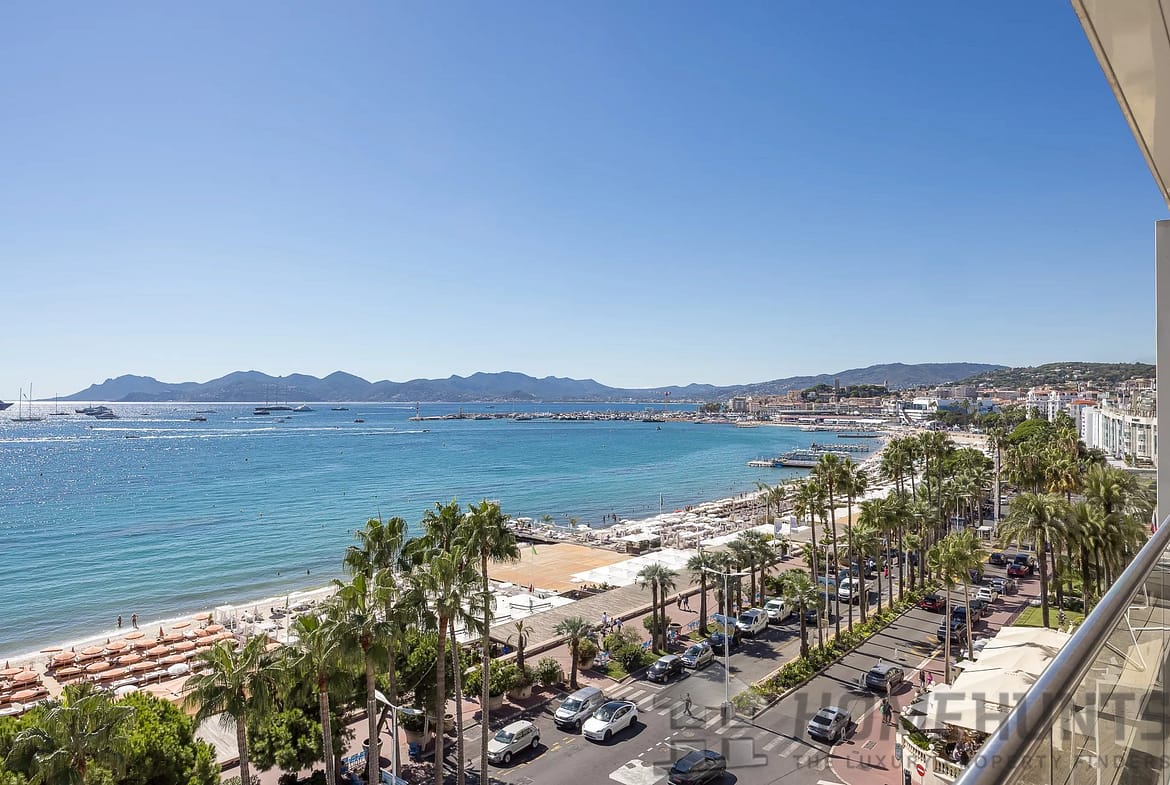 Located on the 8th floor of a prestigious residence on the iconic Croisette, this stunning apartment enjoys full southern exposure and offers an exceptional panoramic sea view over the Bay of Cannes.