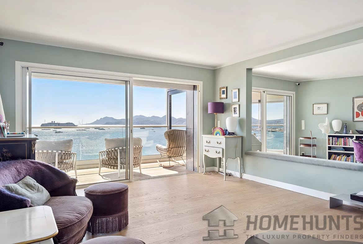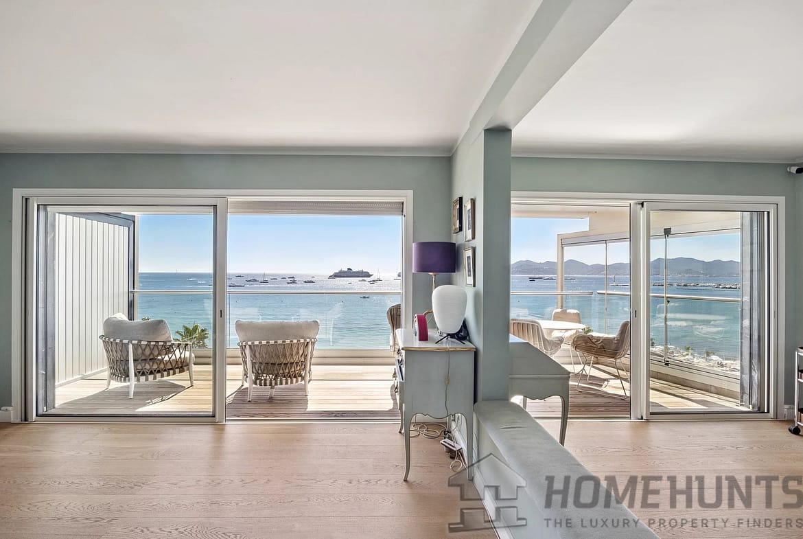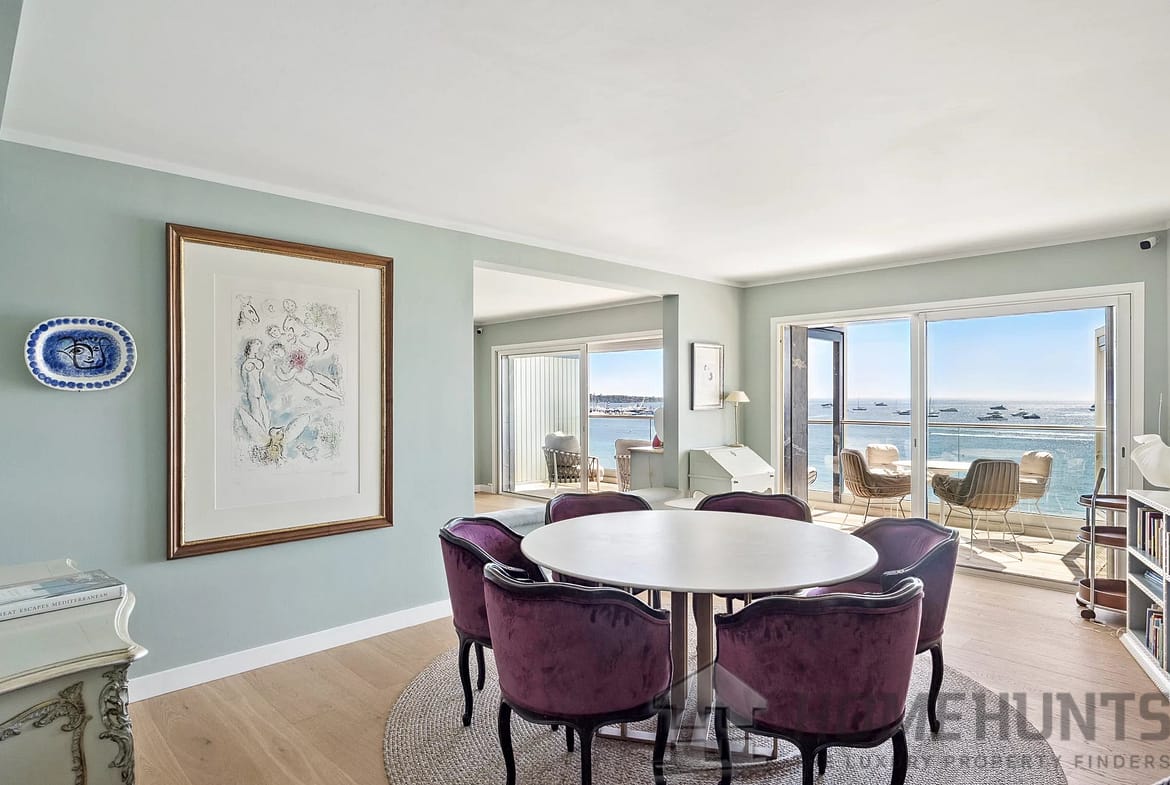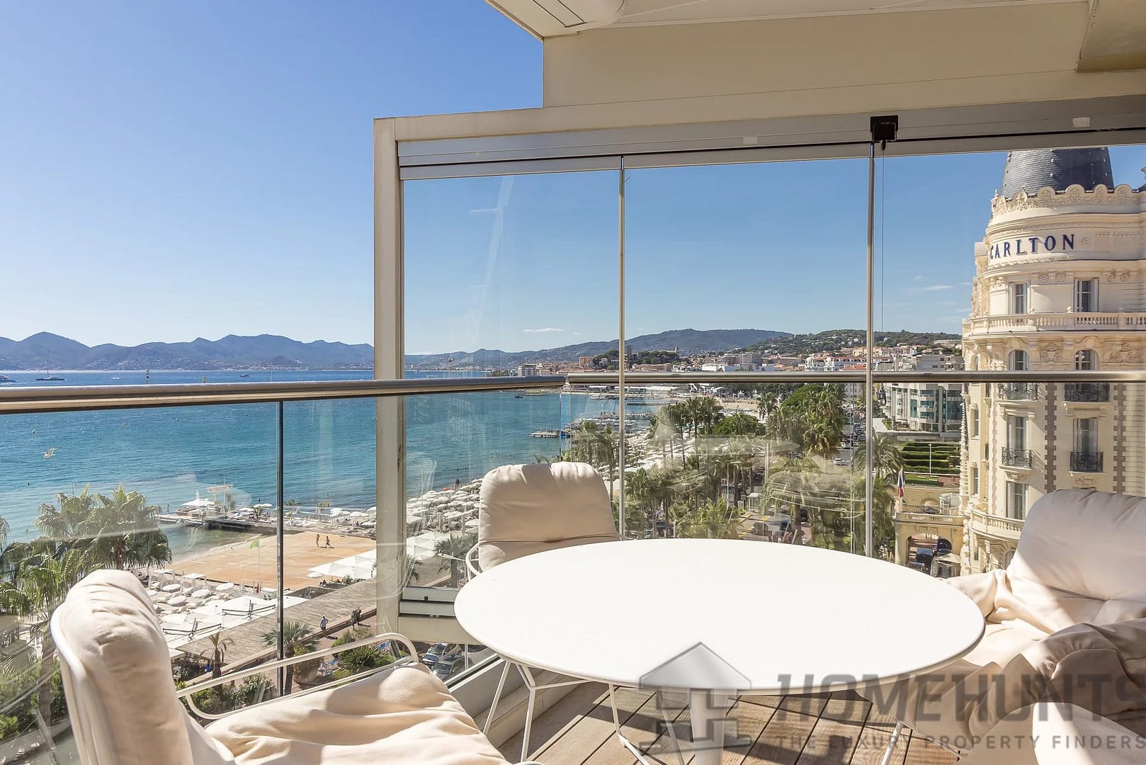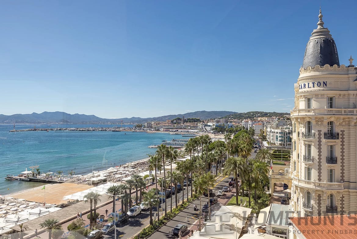 Located on the 8th floor of a prestigious residence on the iconic Croisette, this stunning apartment enjoys full southern exposure and offers an exceptional panoramic sea view over the Bay of Cannes.