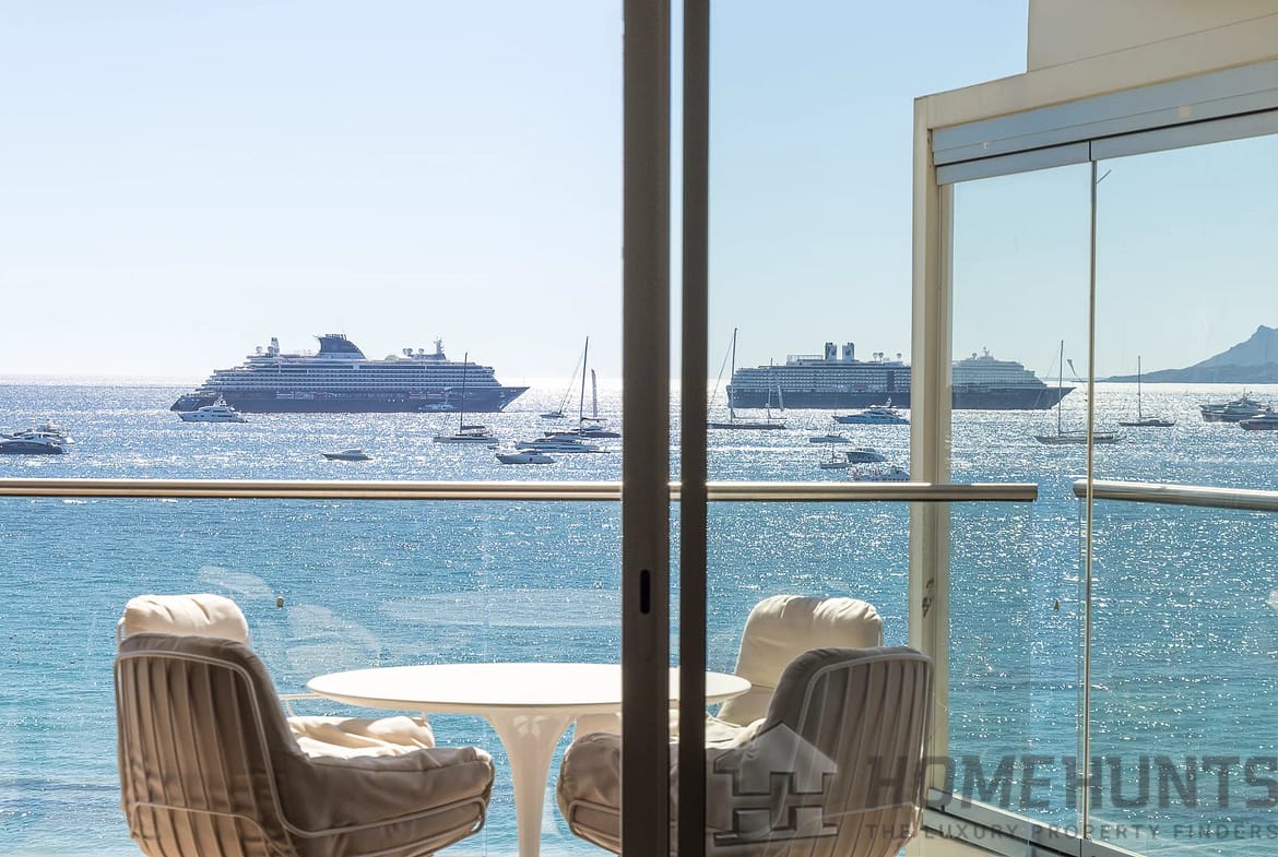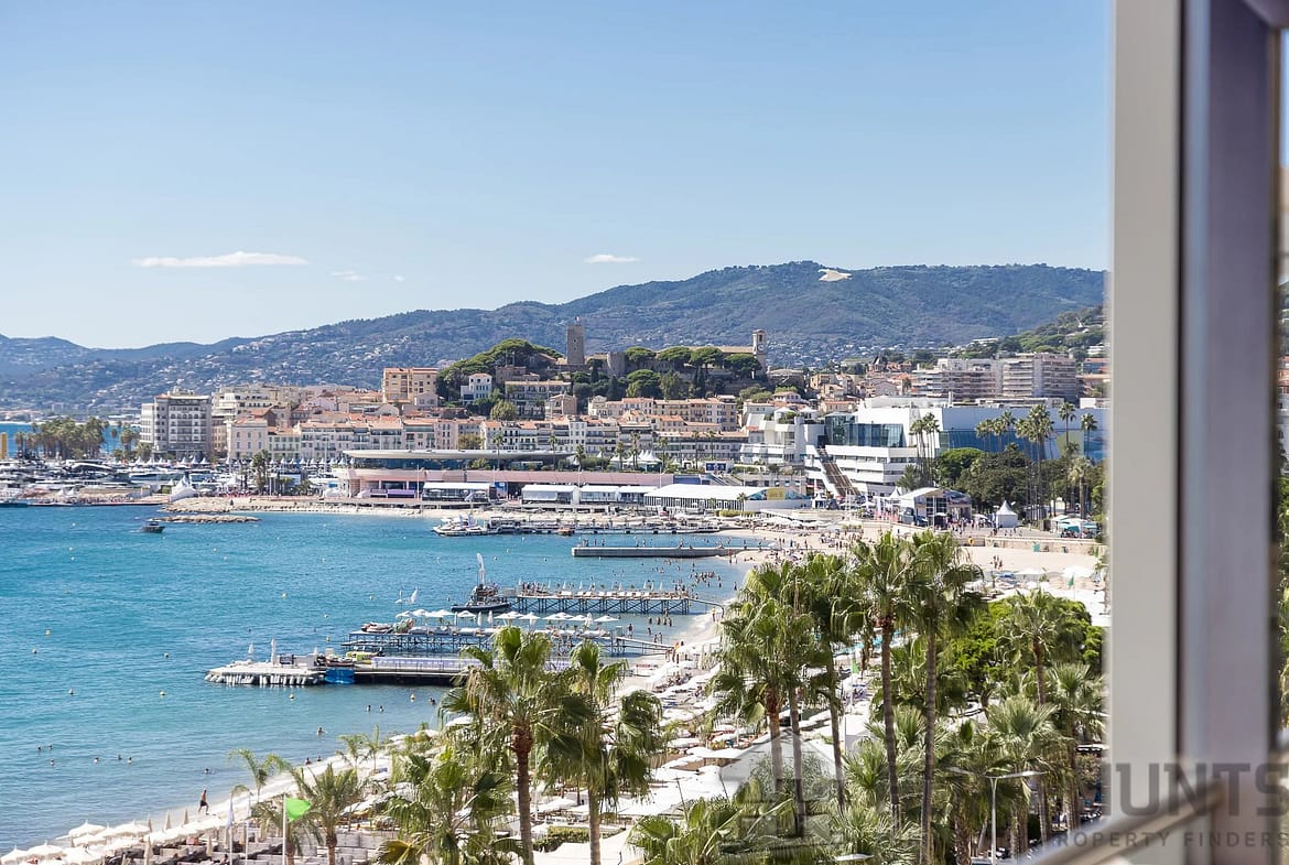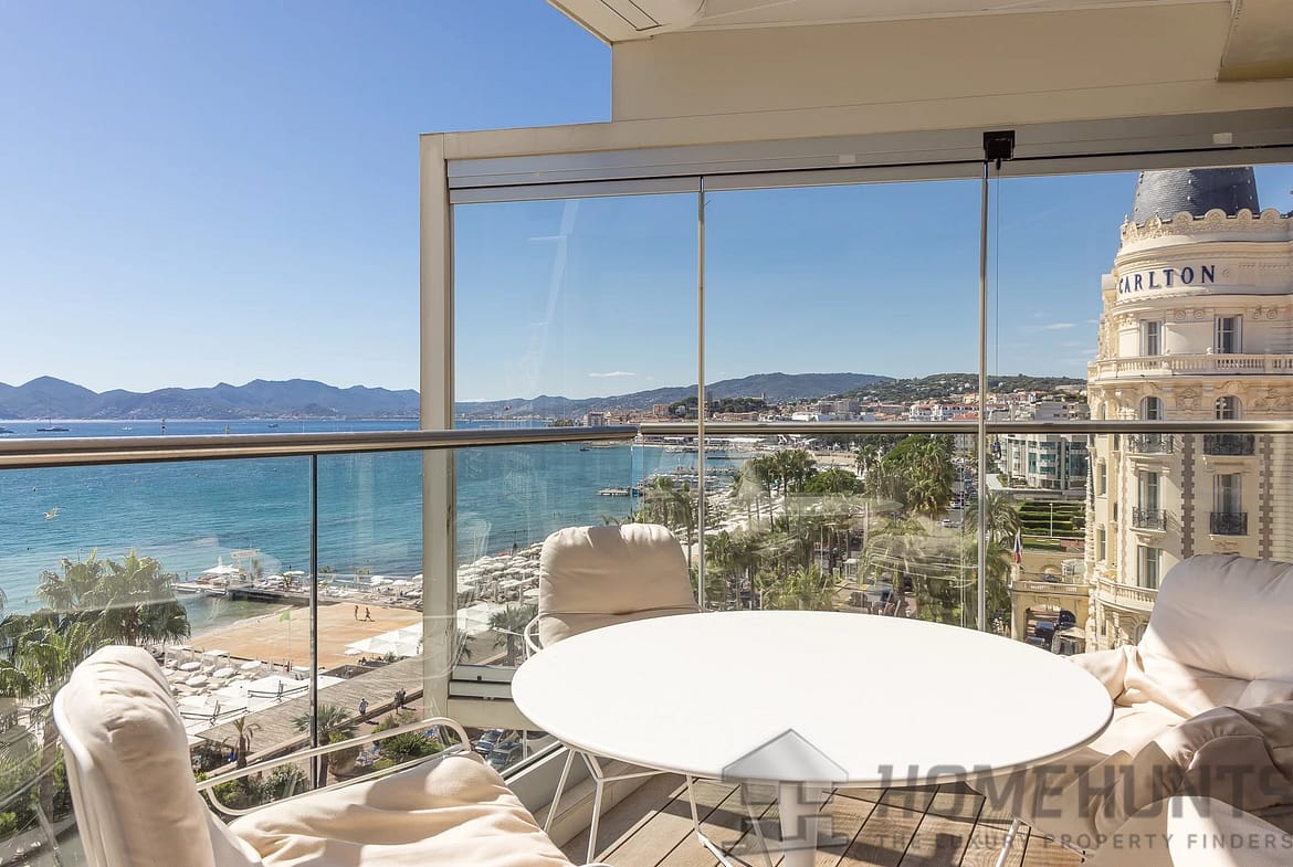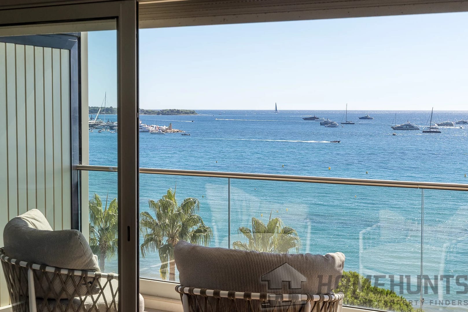 Located on the 8th floor of a prestigious residence on the iconic Croisette, this stunning apartment enjoys full southern exposure and offers an exceptional panoramic sea view over the Bay of Cannes.