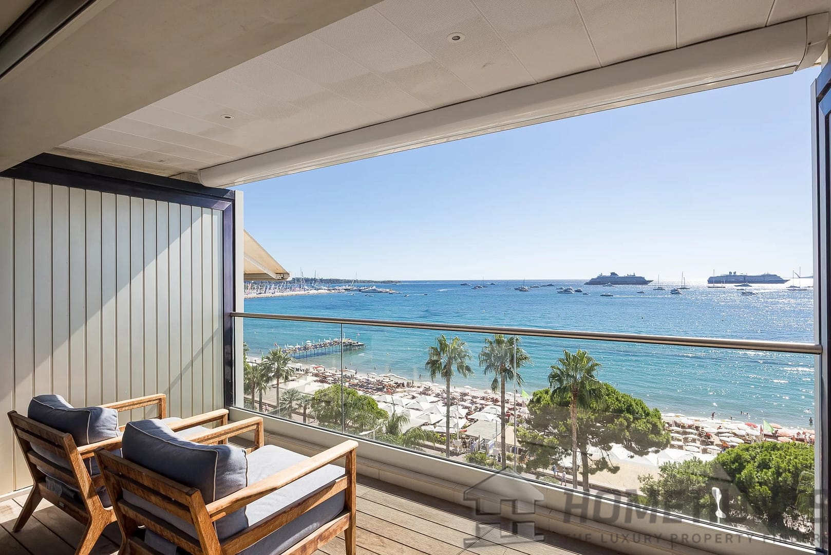 Located on the 8th floor of a prestigious residence in Cannes, this elegant 2-room apartment benefits from a full southern exposure and offers a breathtaking panoramic sea view over the Croisette – a true postcard of the Riviera.