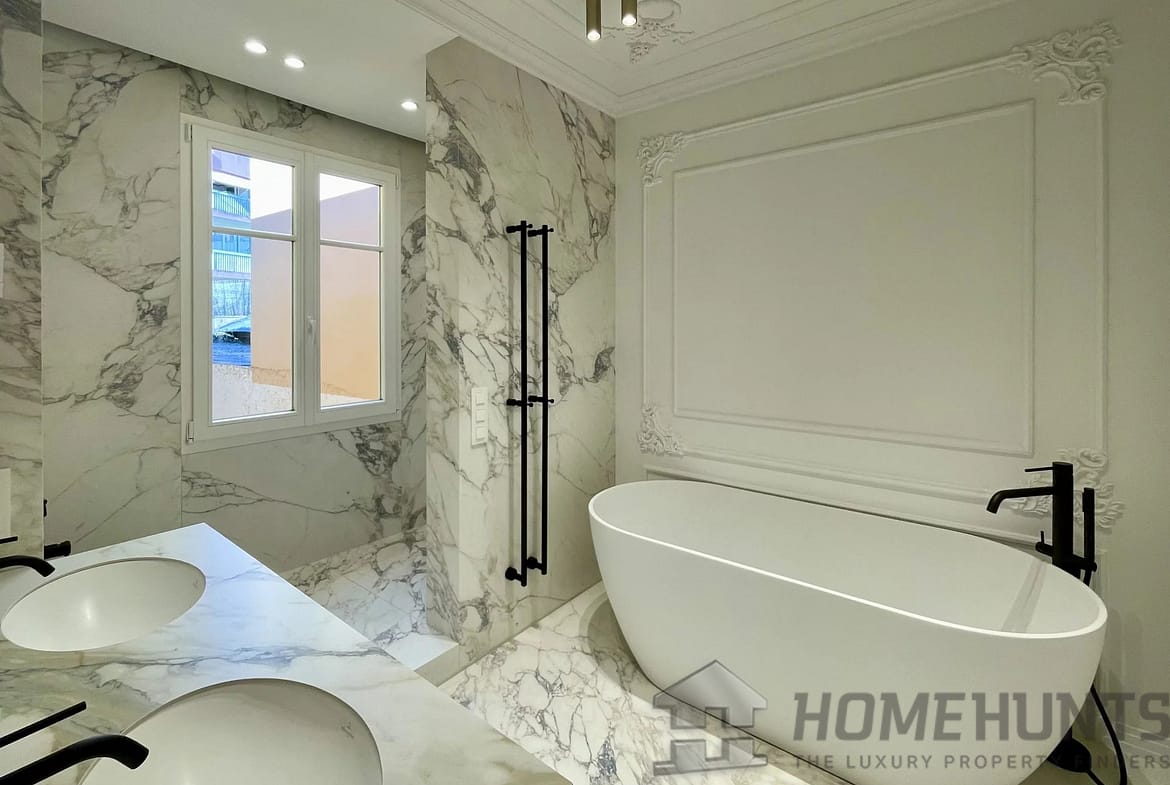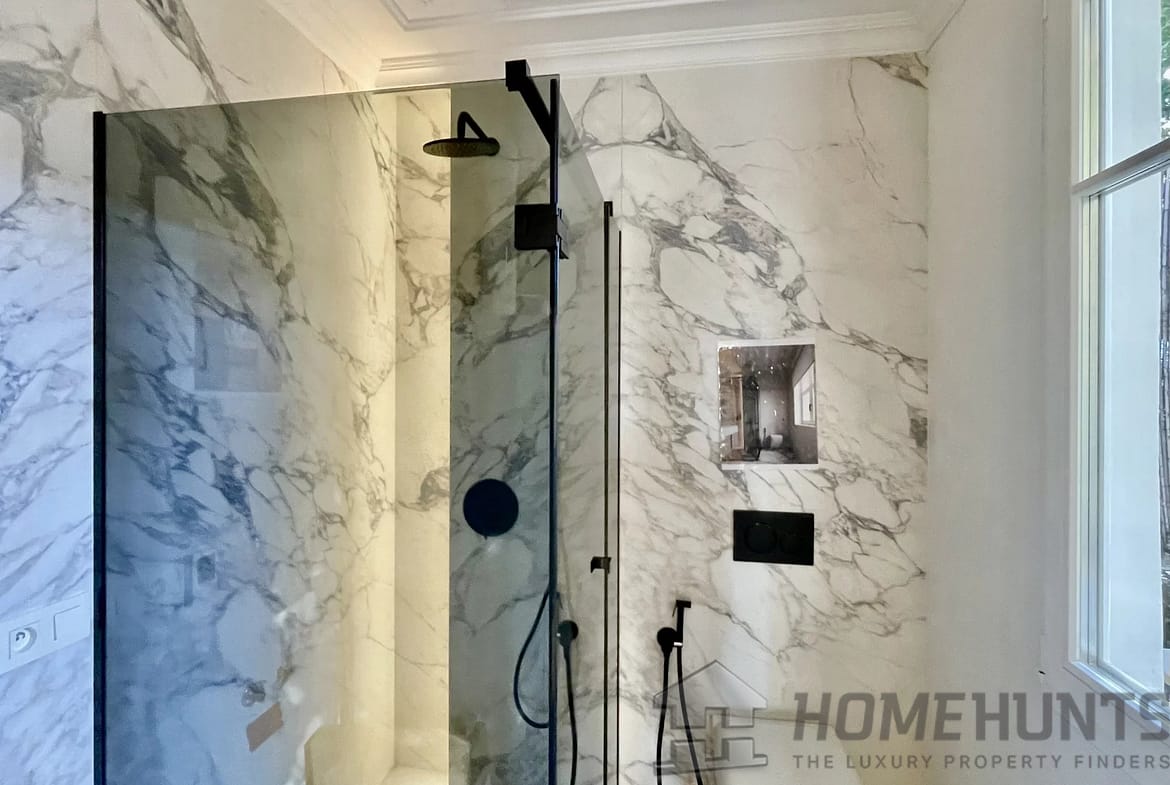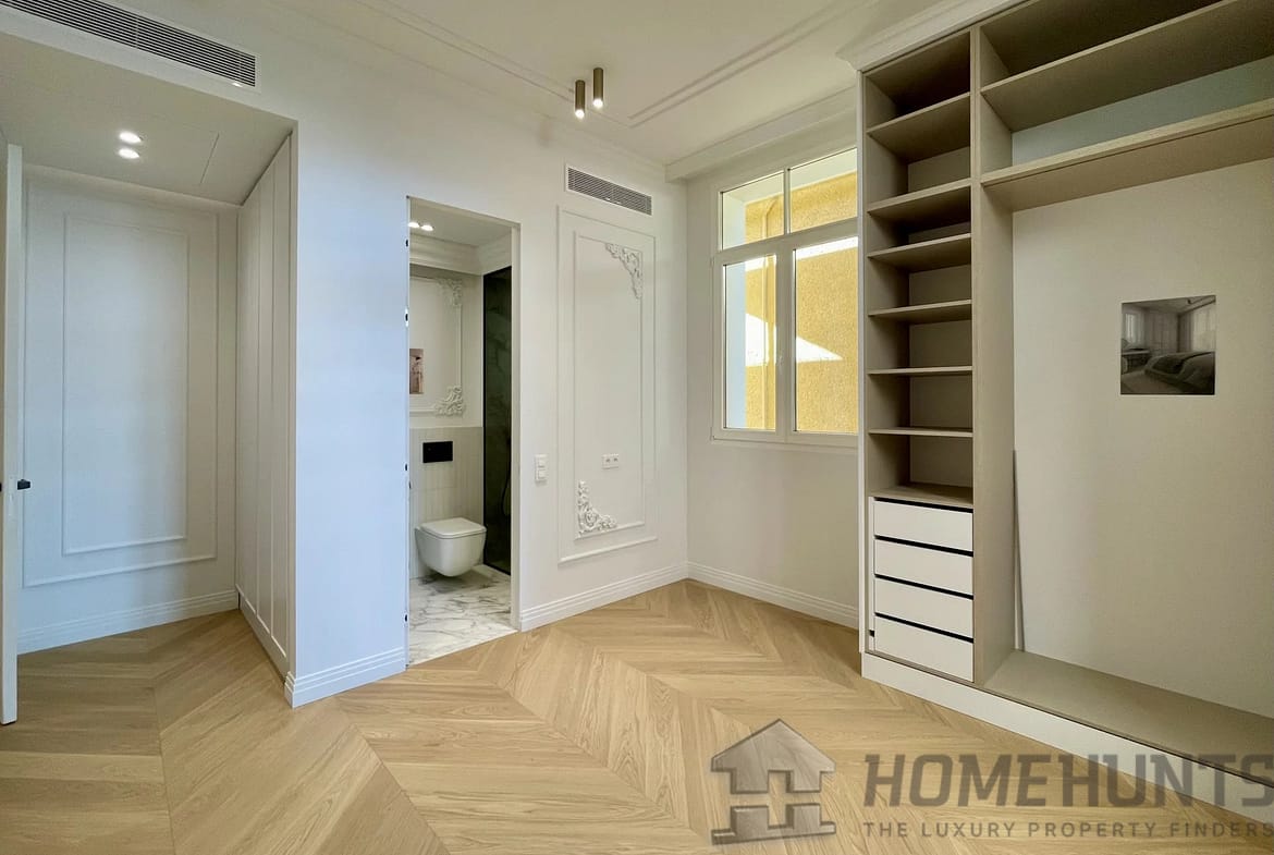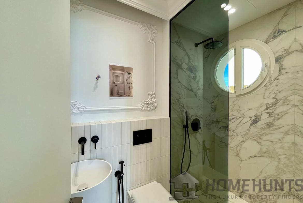 Spacious 50m2 living room with fireplace and open-plan kitchen opening onto a south-facing balcony with sea views. There are 3 superb bedrooms, each with marble an ensuite bathroom with heated floors, fitted wardrobes and dressing rooms. There is also a study and utility room.